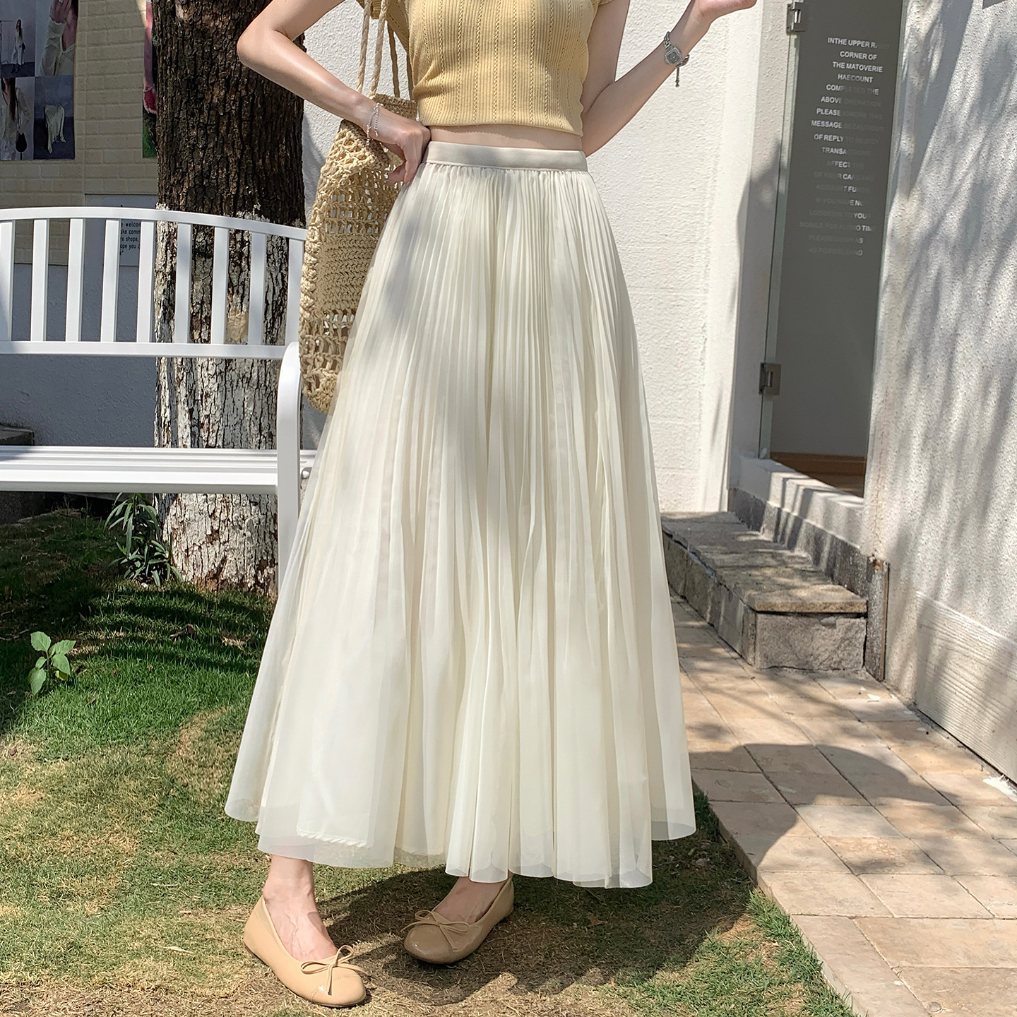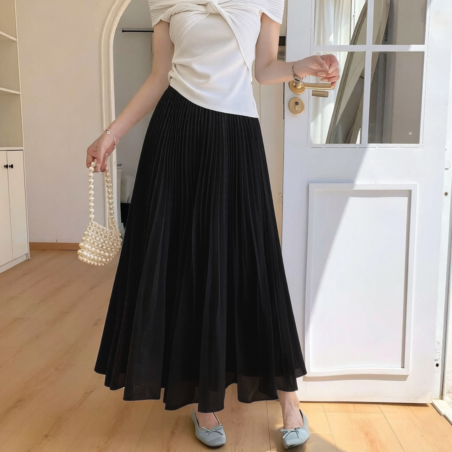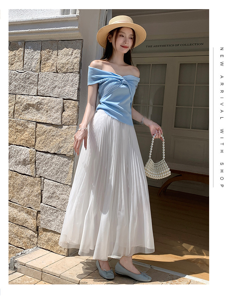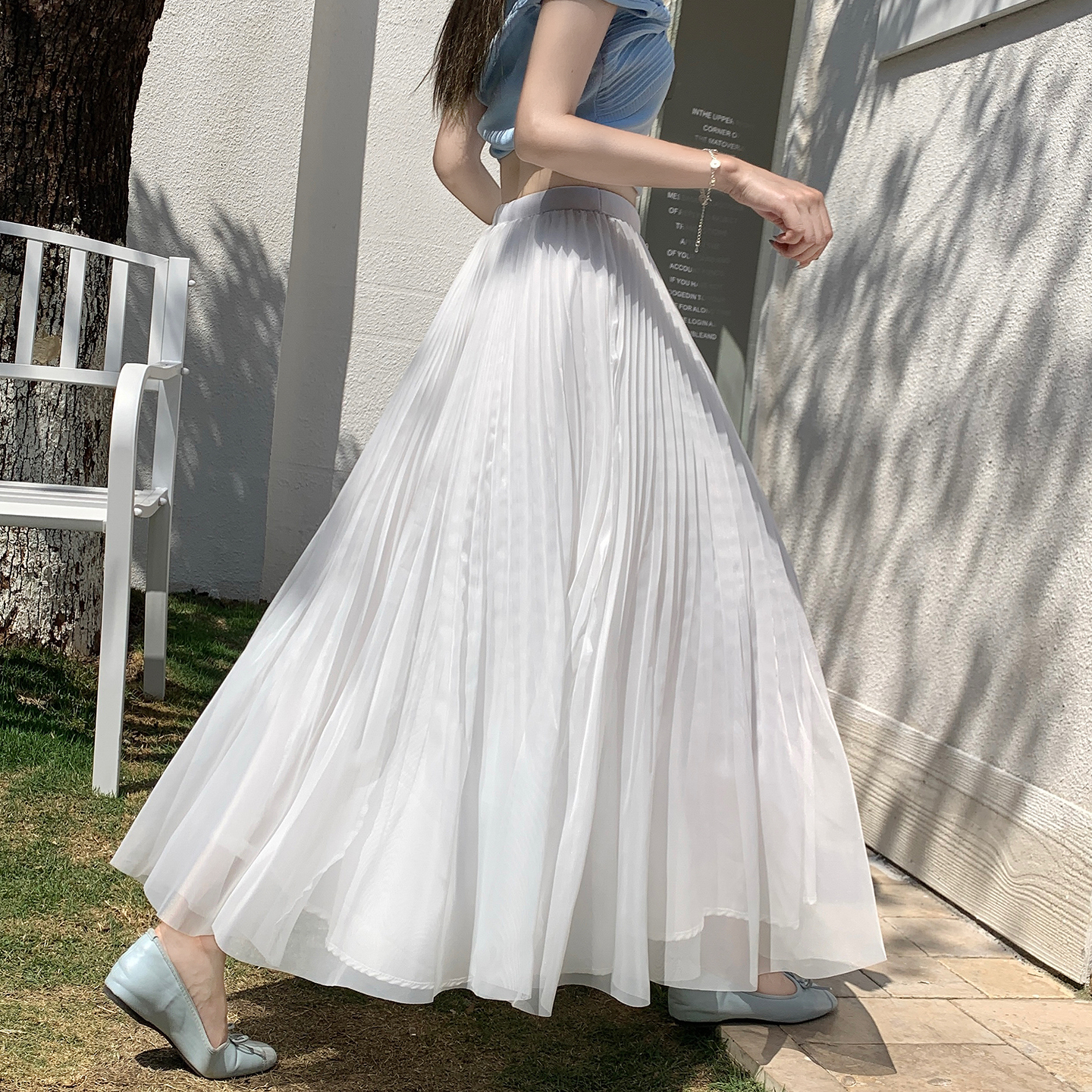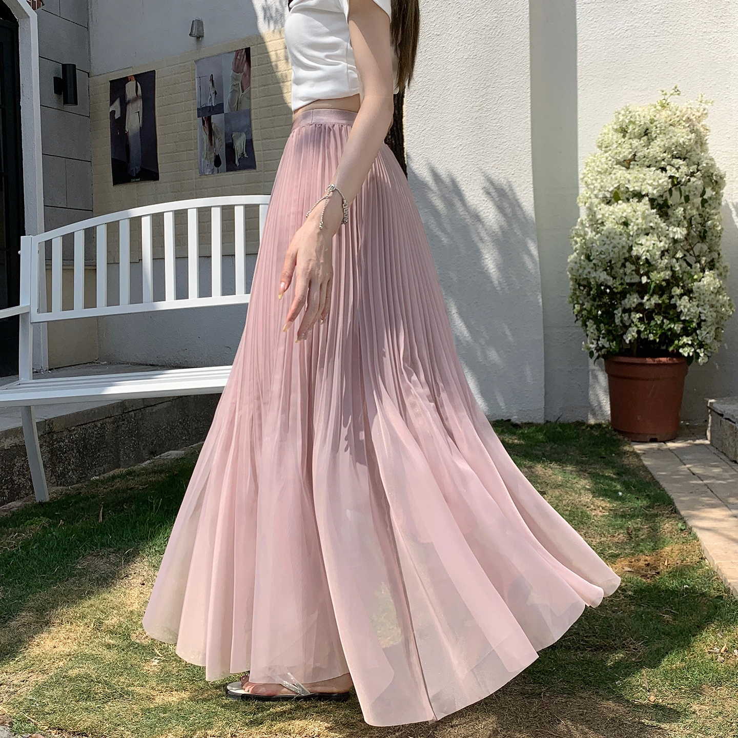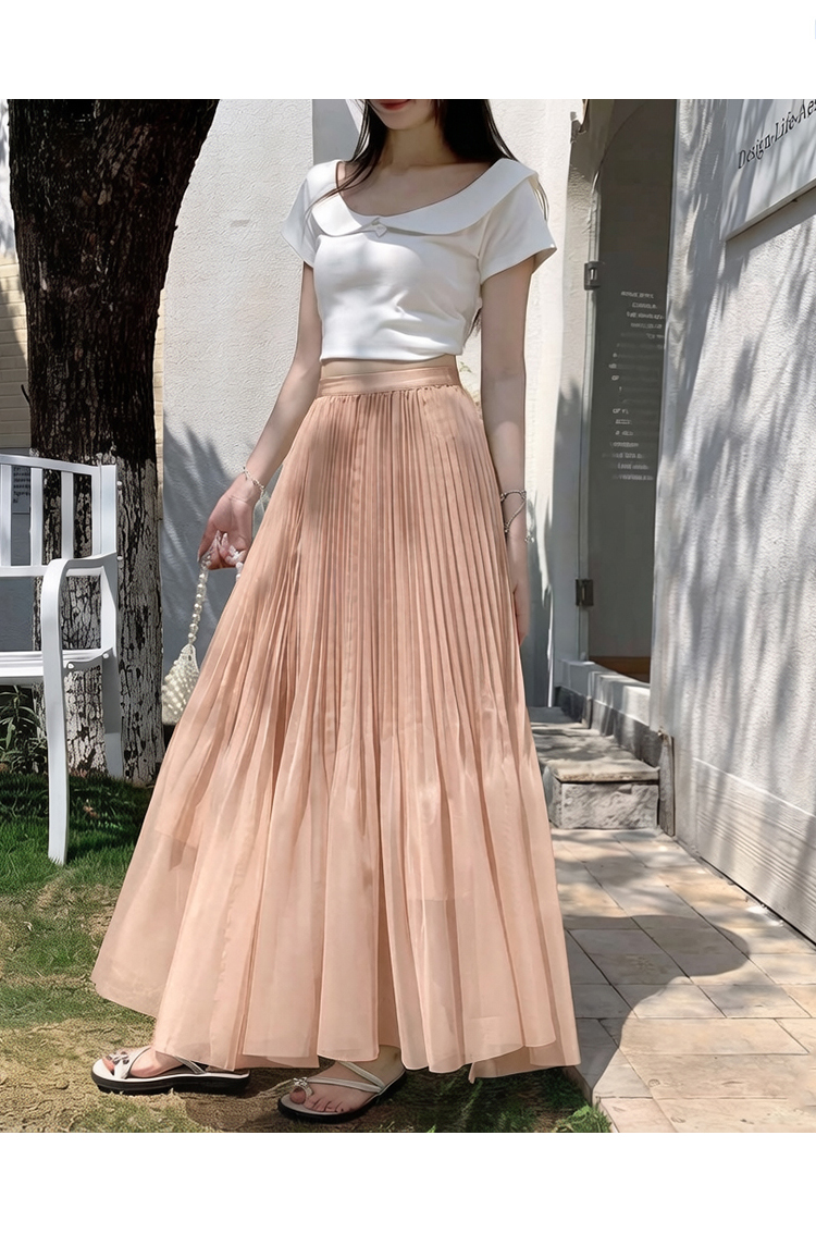빛 럭셔리 도루 가을 센스 플리츠 쉬폰 반신 스커트 여성 여름 큰 진자 하이웨이스트 슬림해 보이는 한 마디 표지 넓적 다리 플리츠 롱 스커트