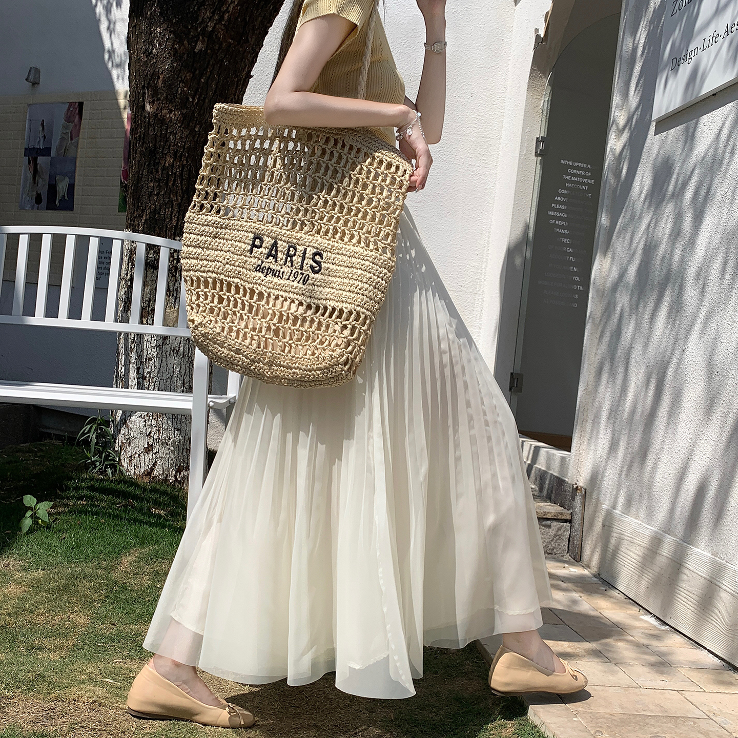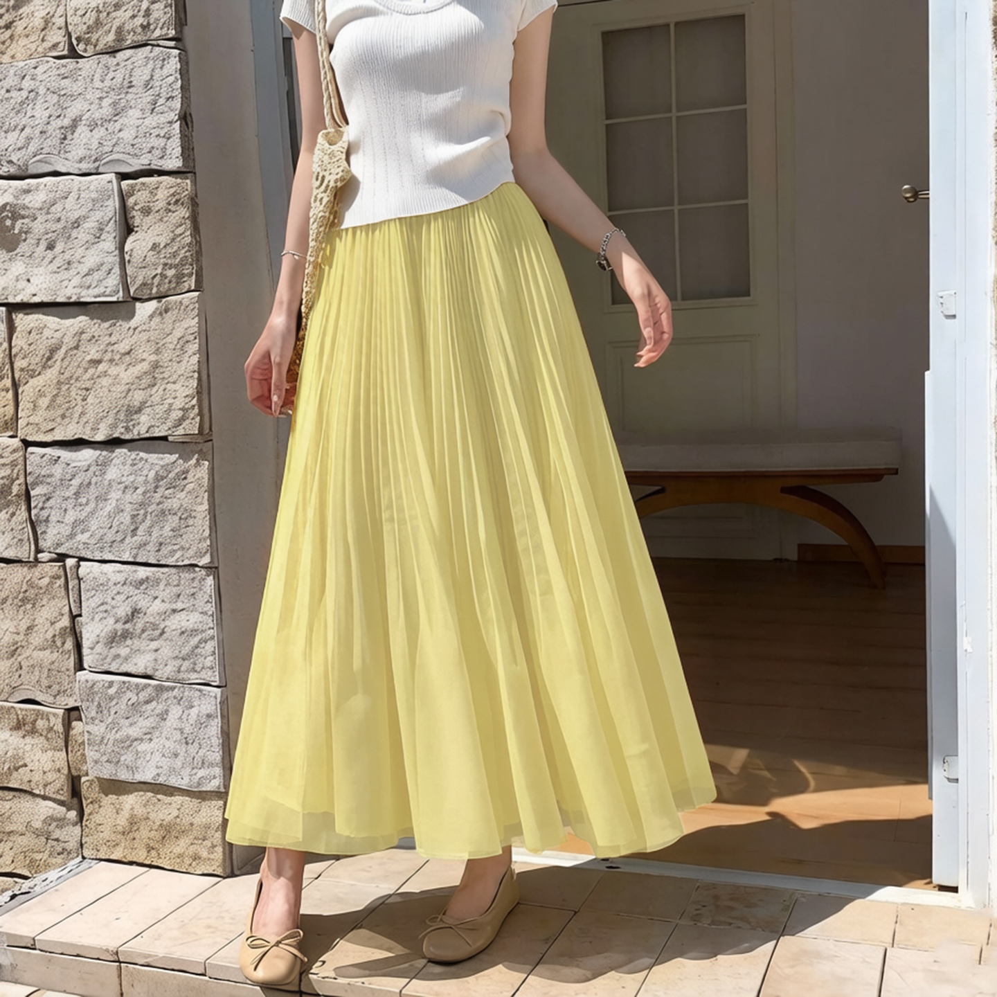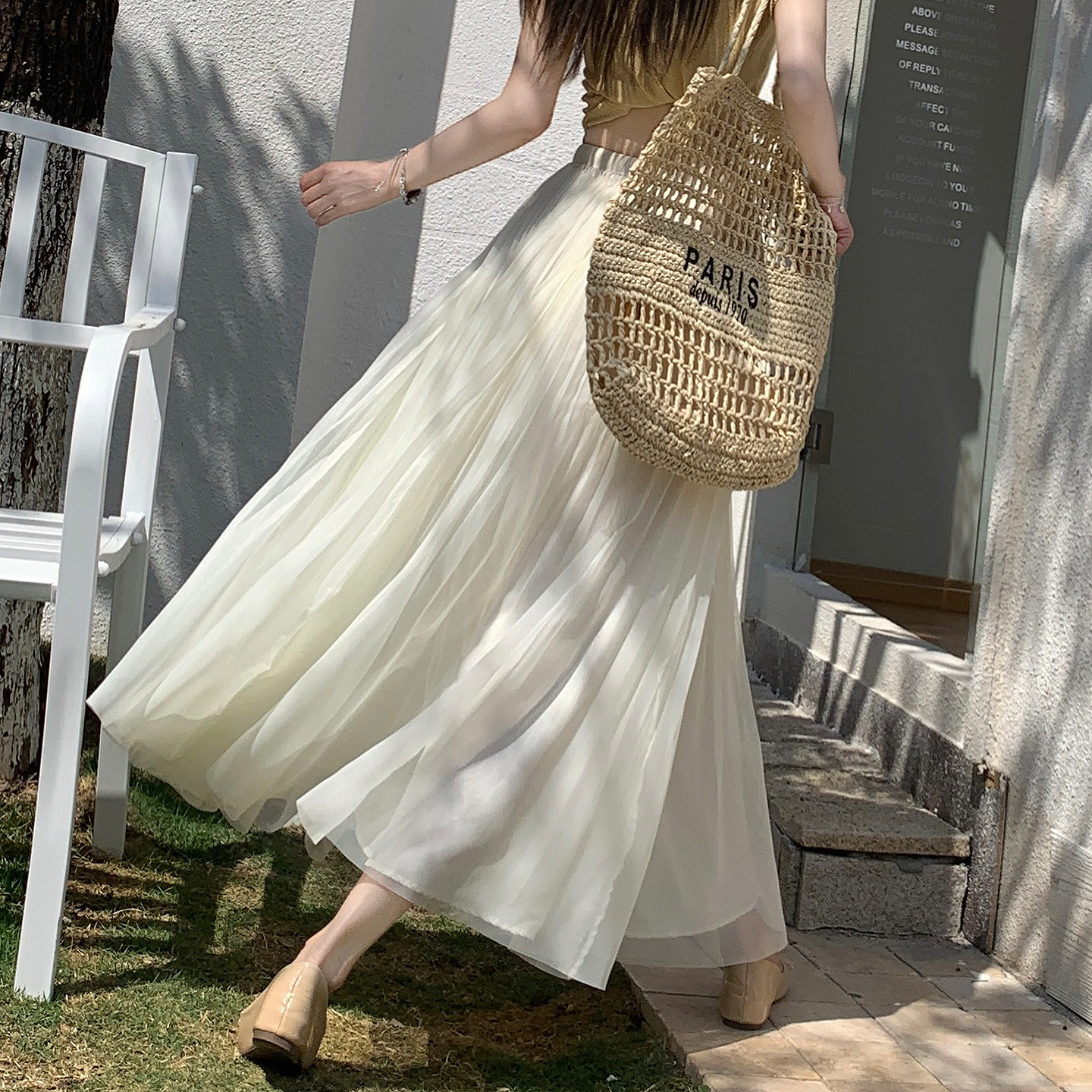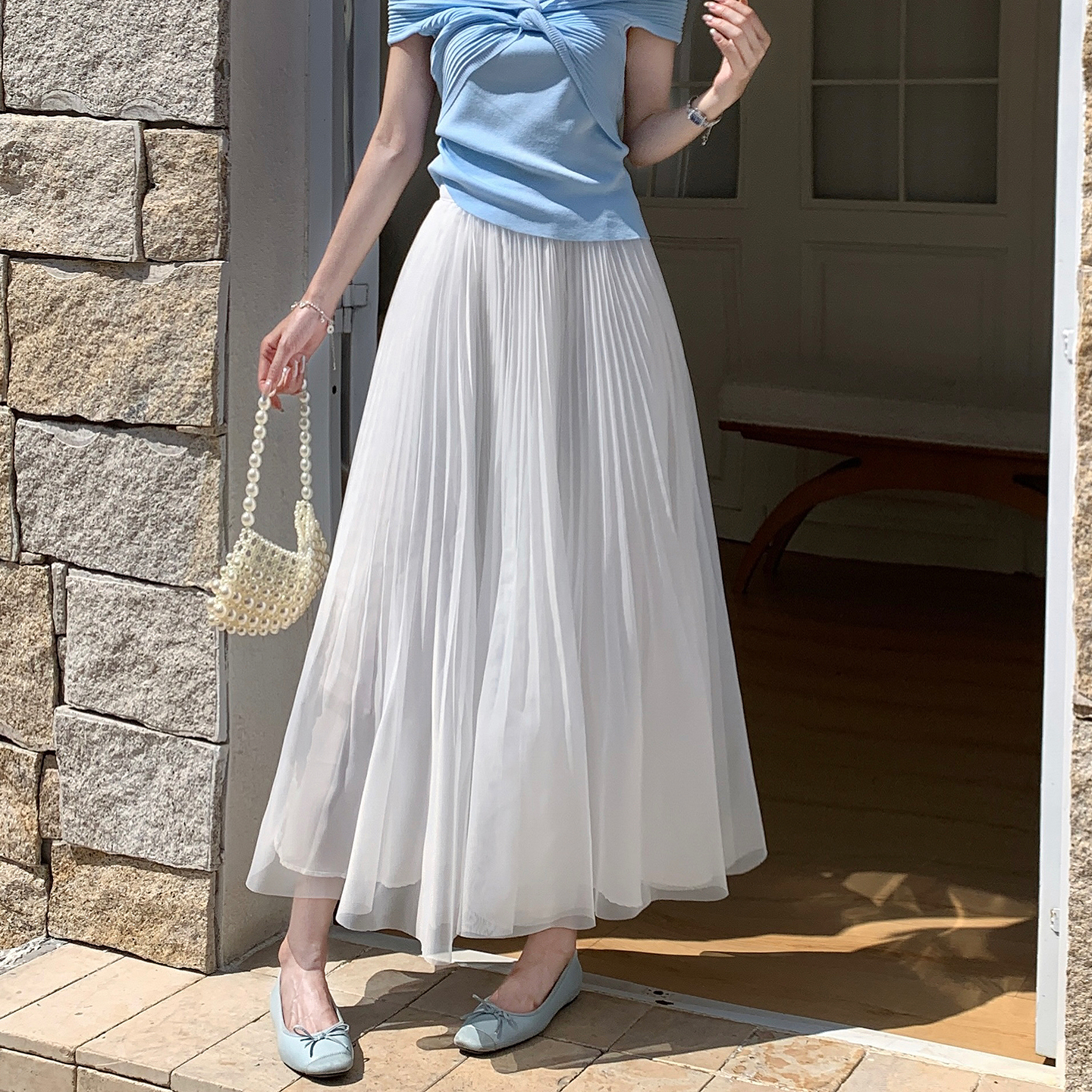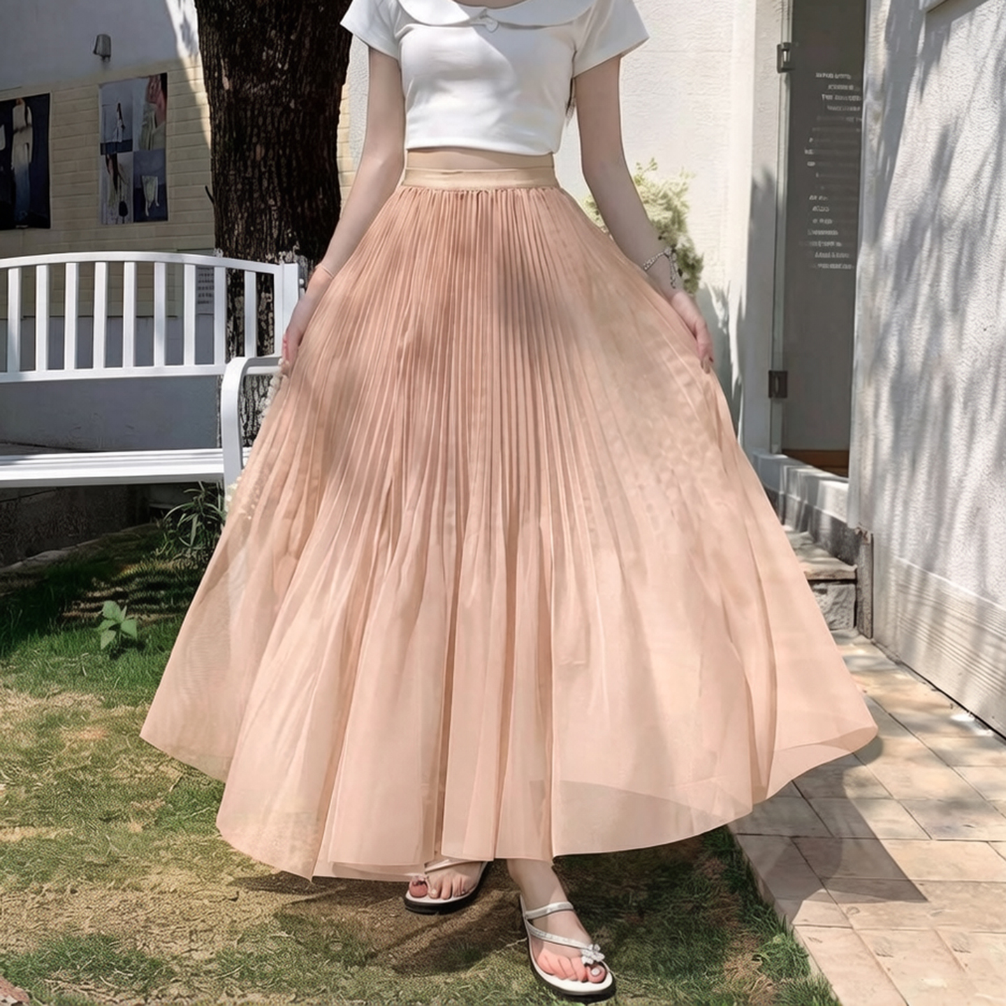 빛 럭셔리 도루 가을 센스 플리츠 쉬폰 반신 스커트 여성 여름 큰 진자 하이웨이스트 슬림해 보이는 한 마디 표지 넓적 다리 플리츠 롱 스커트