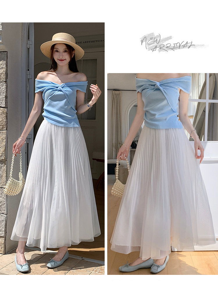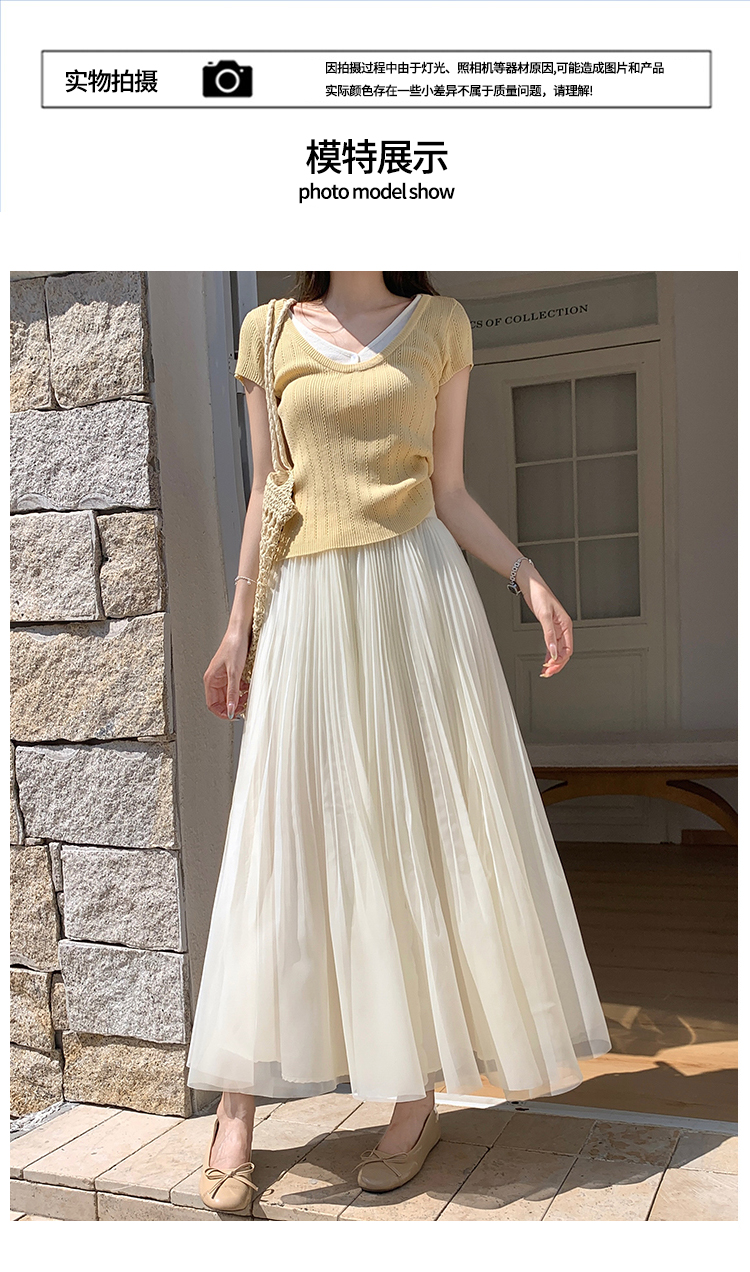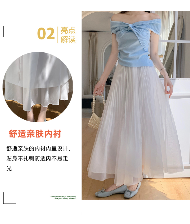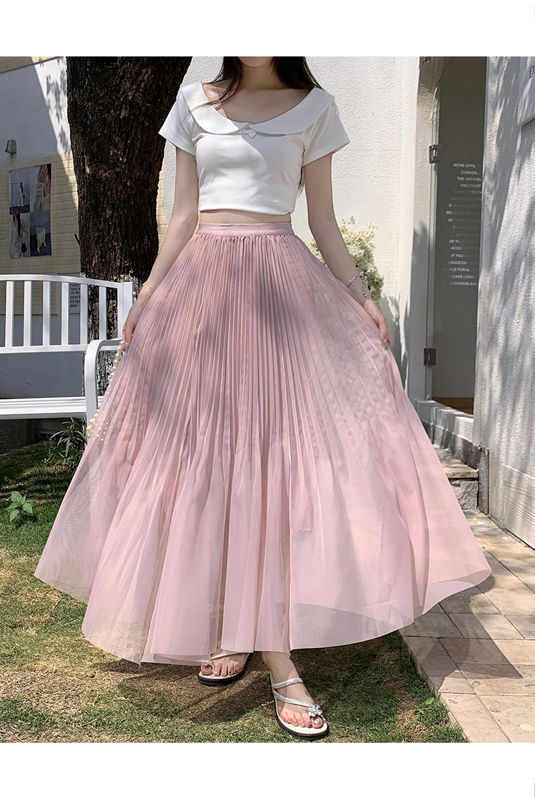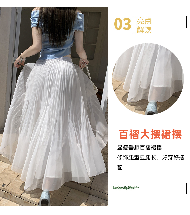 슈퍼 요정 망사 한 마디 플리츠 롱 스커트 여성 2026 봄 여름 새로운 휴가 바람 슬림해 보이는 표지 십자가 단색 반신 스커트