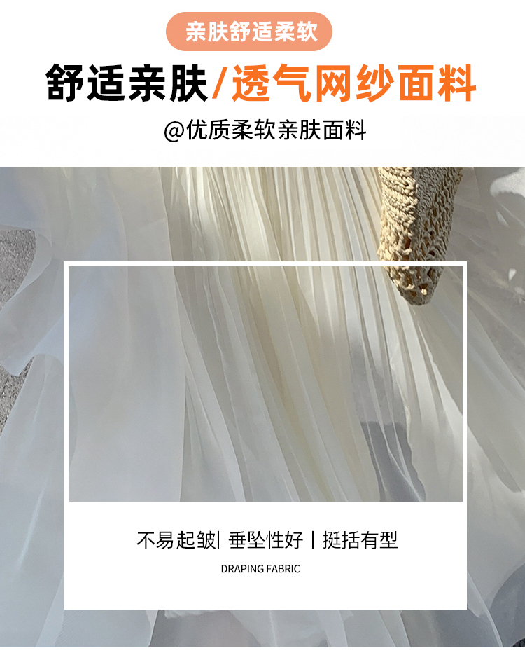 우아한 큰 진자 주름 질감 센스 망사 반신 스커트 여성 여름 얇은 스타일 패션 한 마디 프릴 케이크 드레스