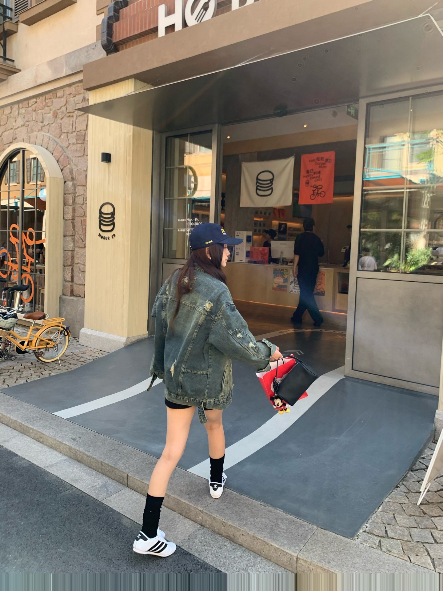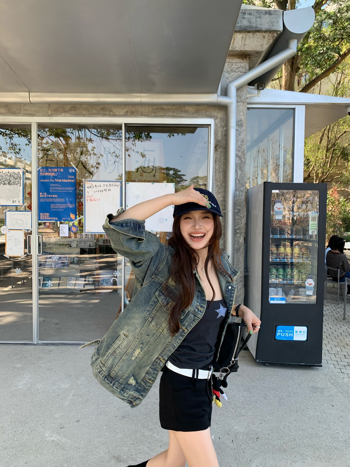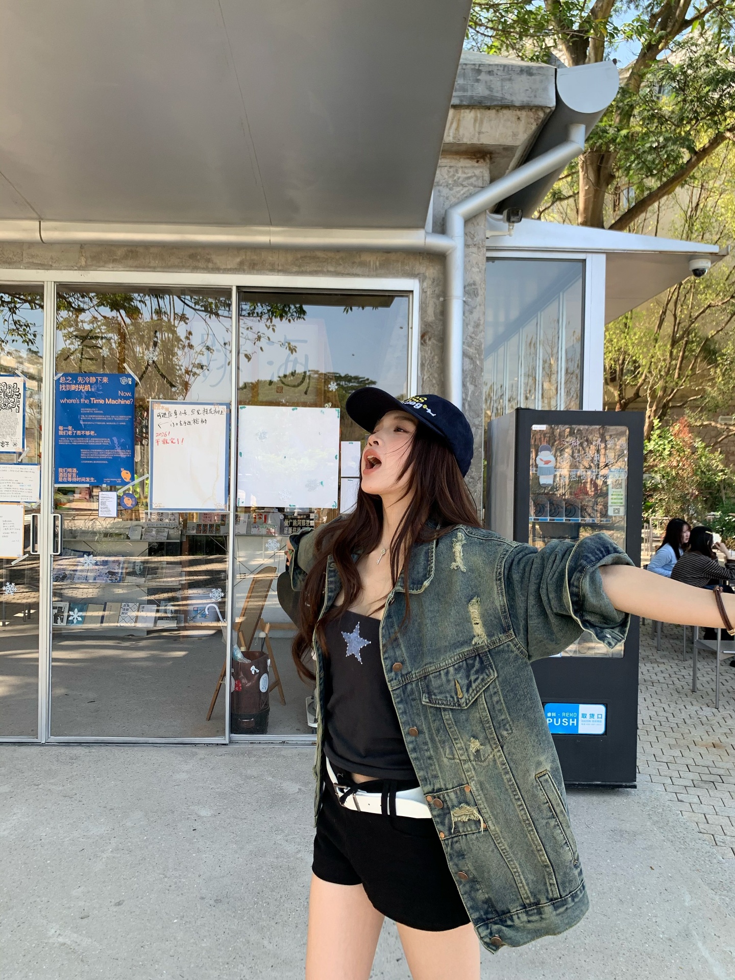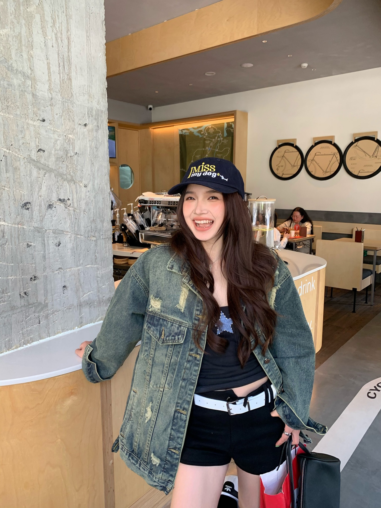 아메리칸 레트로 해체 질감 데님 재킷 루즈핏 프로필 모양 몸매 가꾸기 슬림해 보이는 워크웨어 재킷 여성