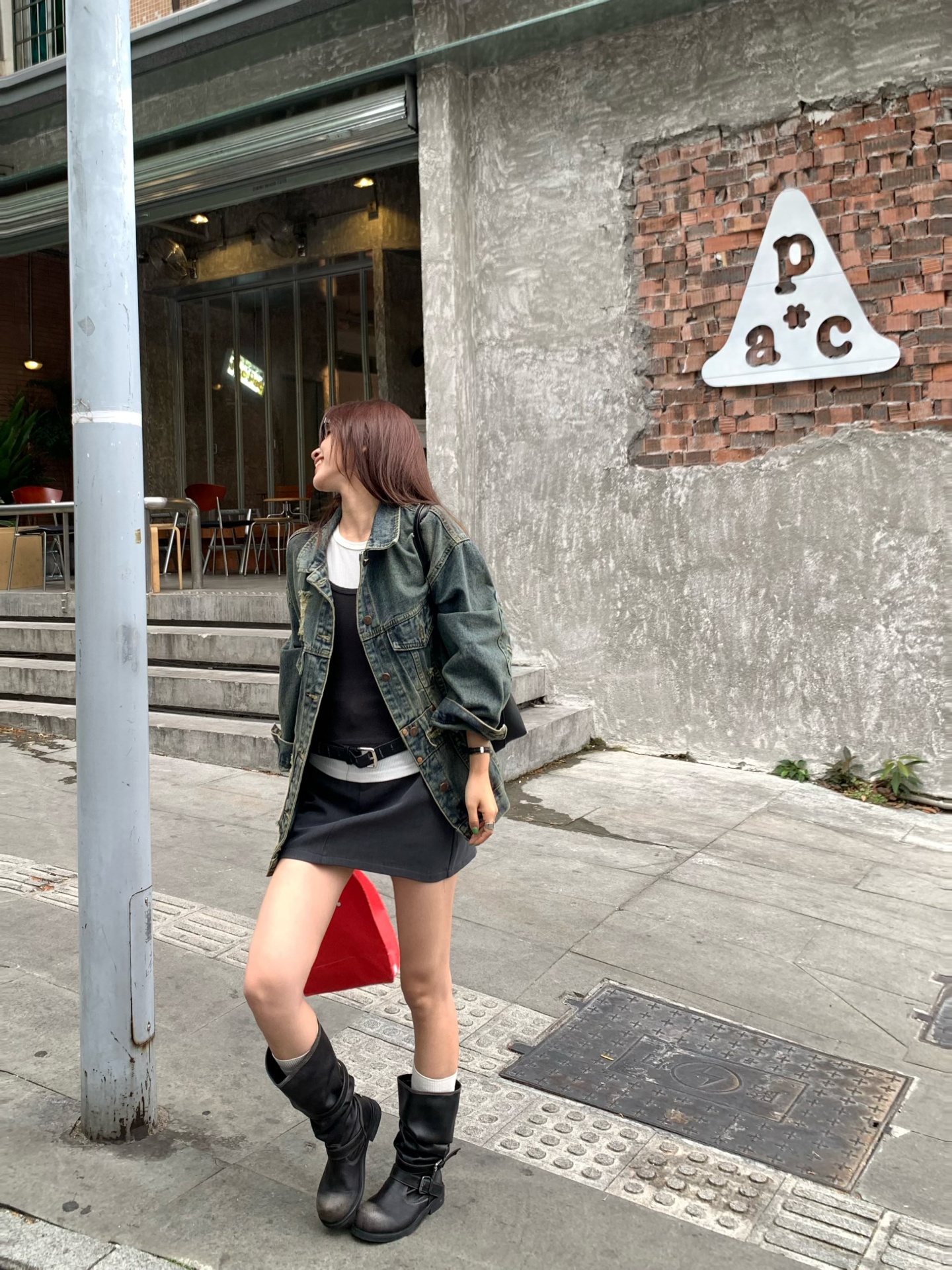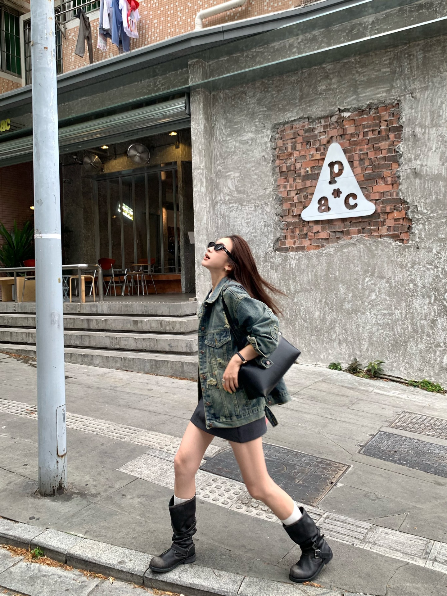 실사 한국 chic 봄 항구 바람 주머니 지퍼 워싱 데님 다용도 재킷