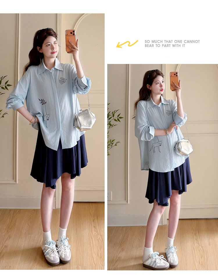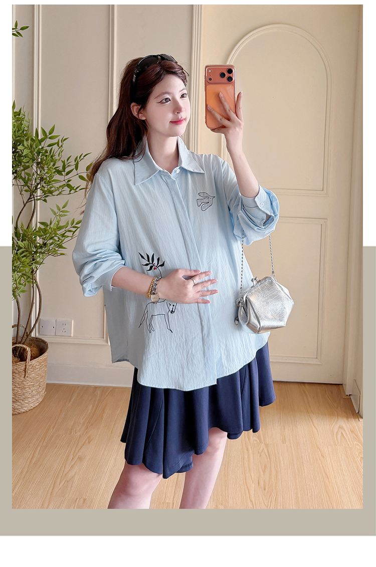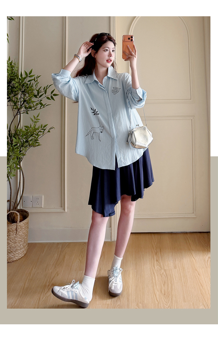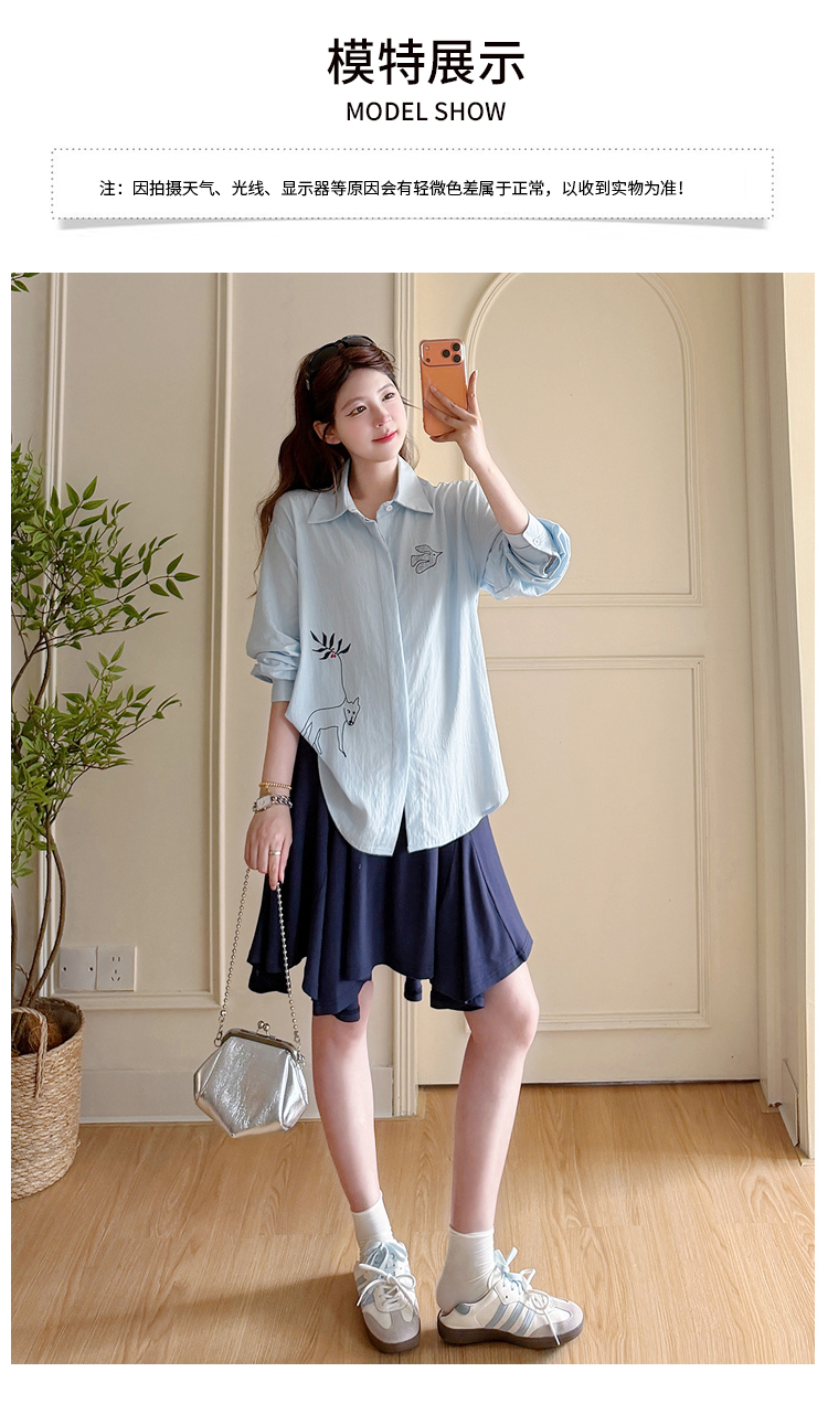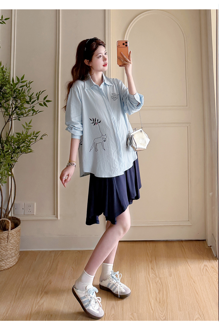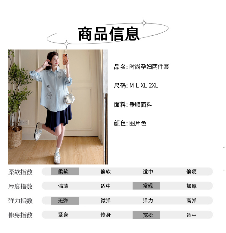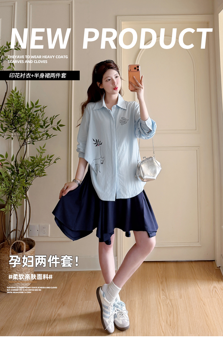 봄 아모이 긴팔 출산 착용 맨위 2026 한국 스타일 루즈핏 빅 사이즈 투피스 세트 임산부 반신 치마 세트