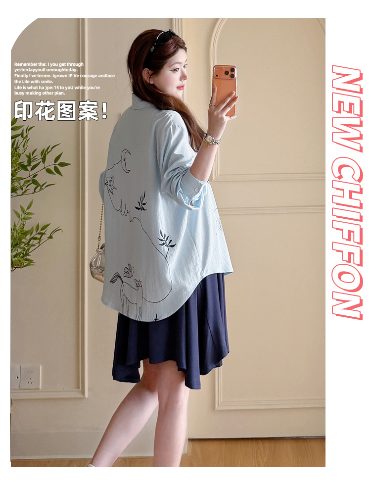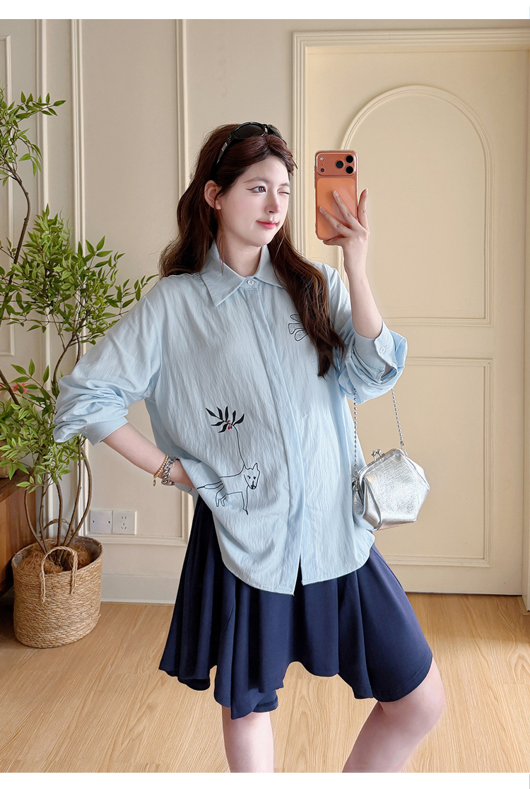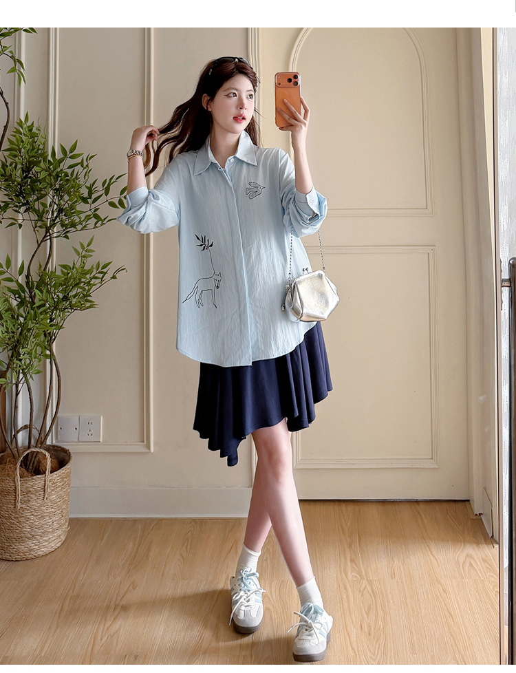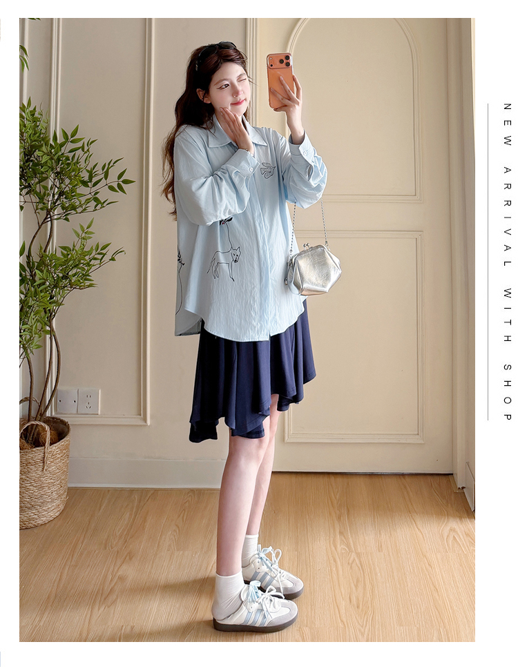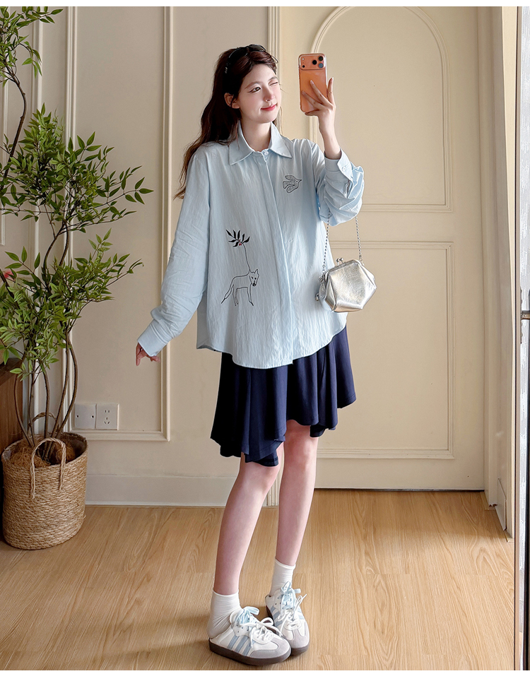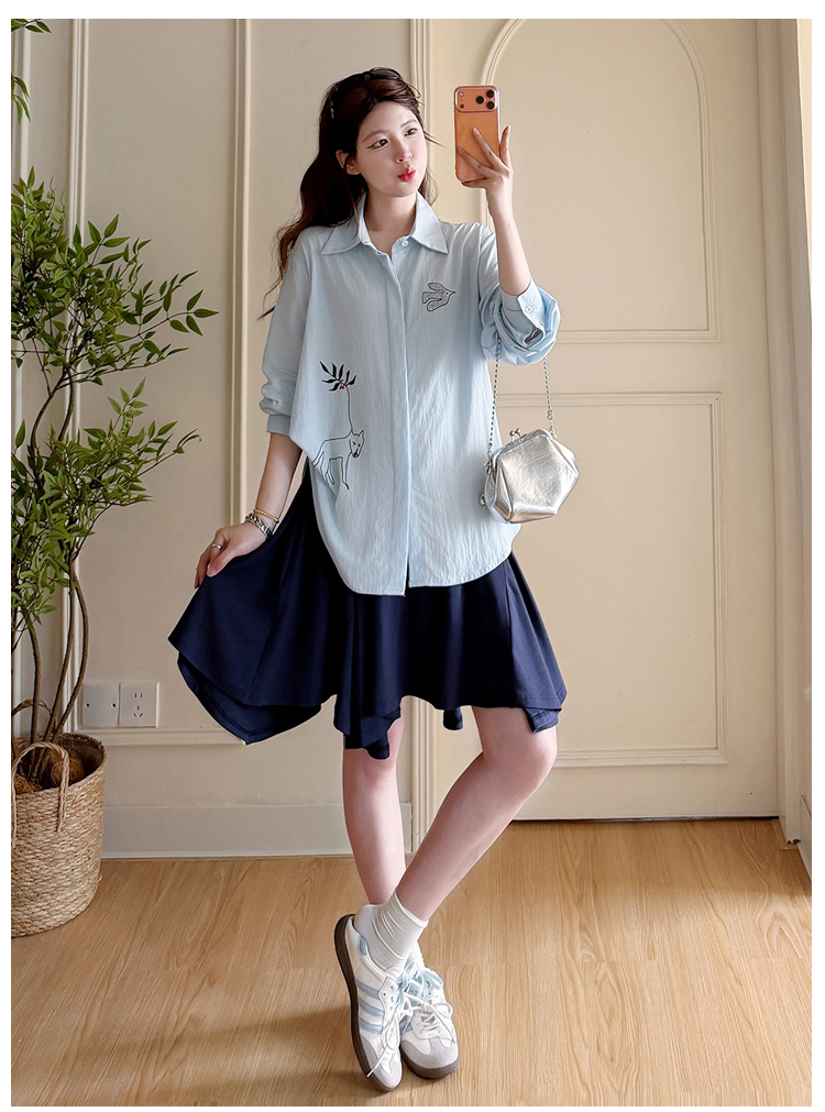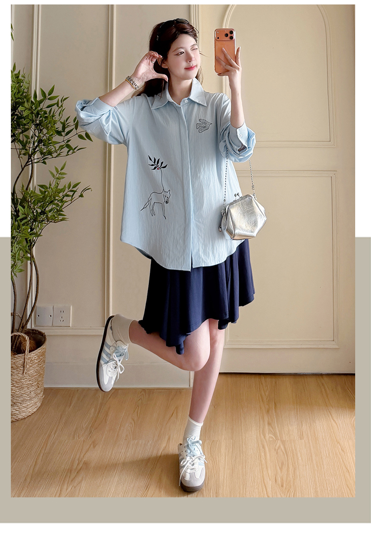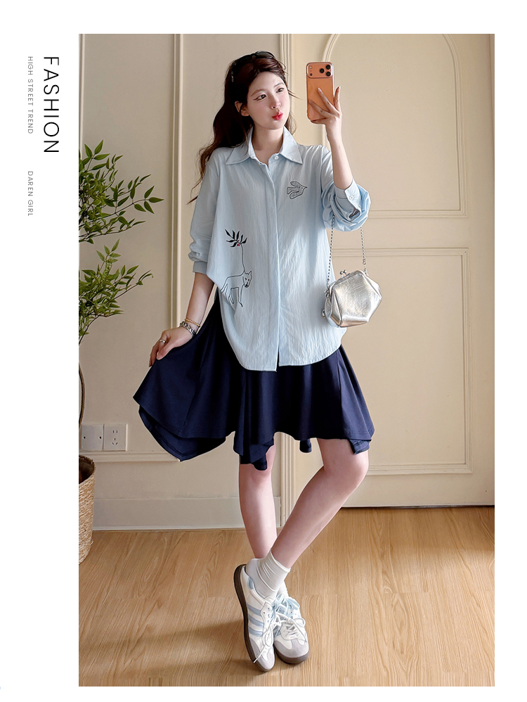봄 아모이 긴팔 출산 착용 맨위 2026 한국 스타일 루즈핏 빅 사이즈 투피스 세트 임산부 반신 치마 세트