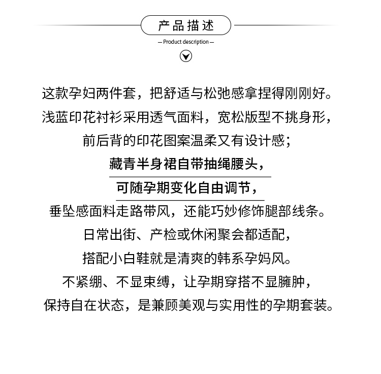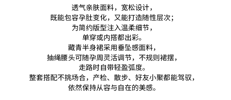 2026 여름 새로운 V넥 슬림해 보이는 임산부 맨위 루즈핏 빅 사이즈 3종 세트 임신 기간 착용 가져 가라. 반신 치마 세트