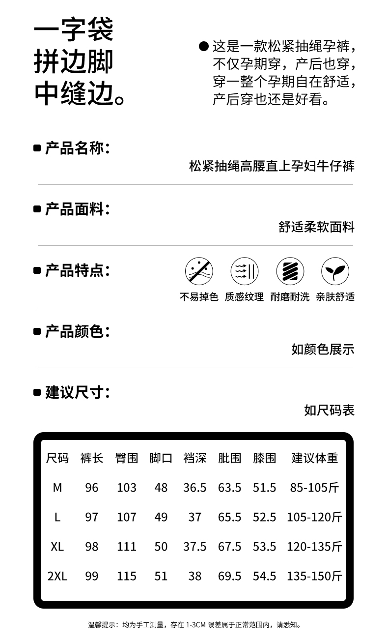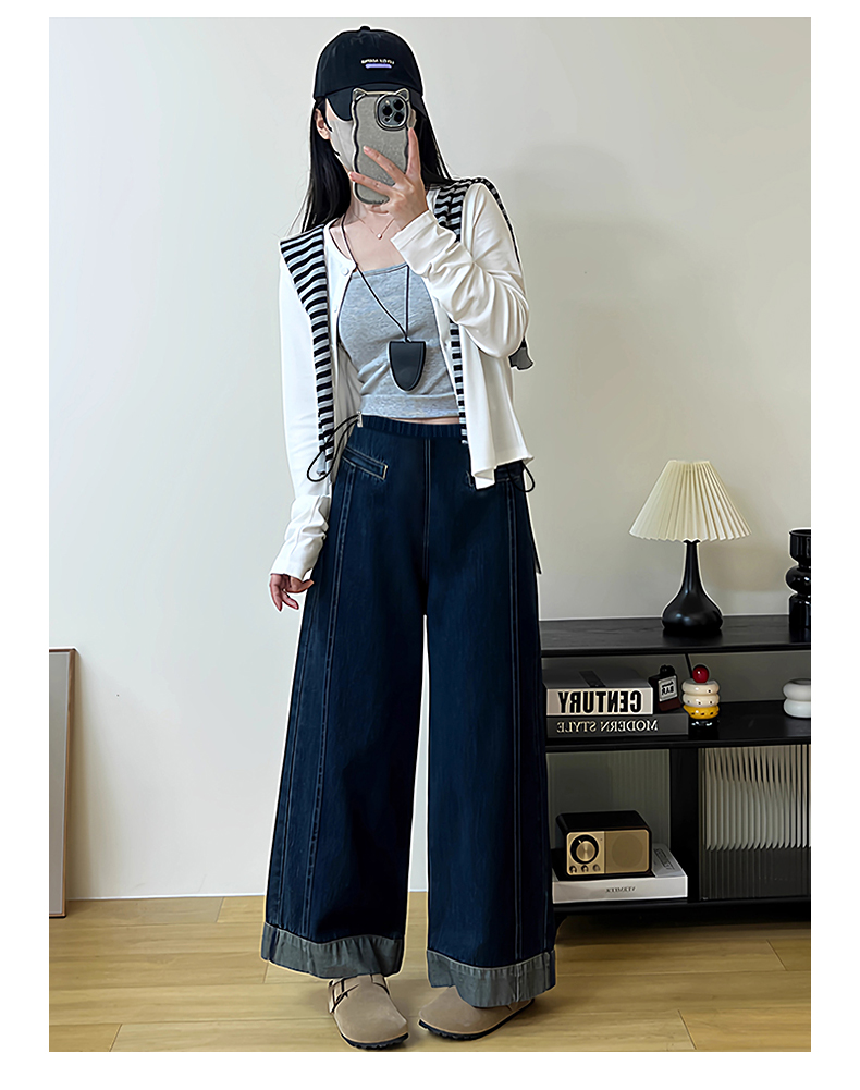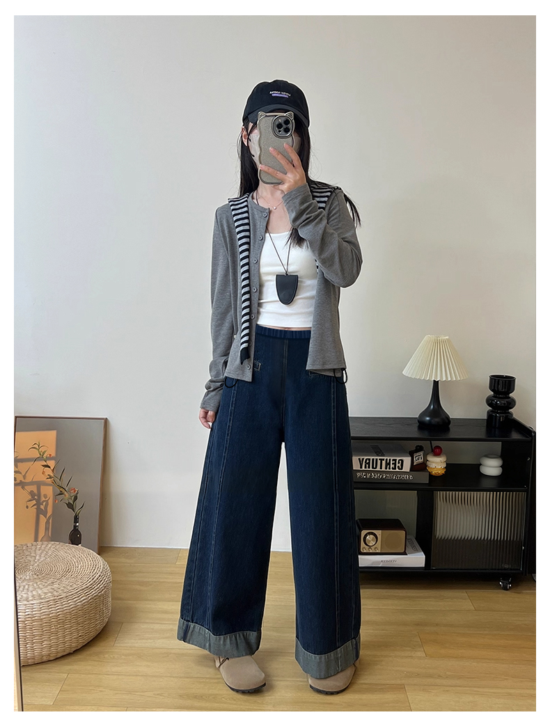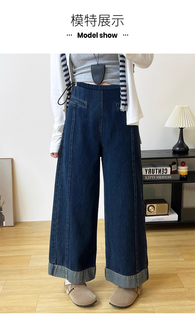 임산부 펌프 로프 데님 긴 바지 단 닝 블루 떨어지지 않음 색상 봄 가을 외출용 와이드 레그 팬츠 스트레이트 팬츠