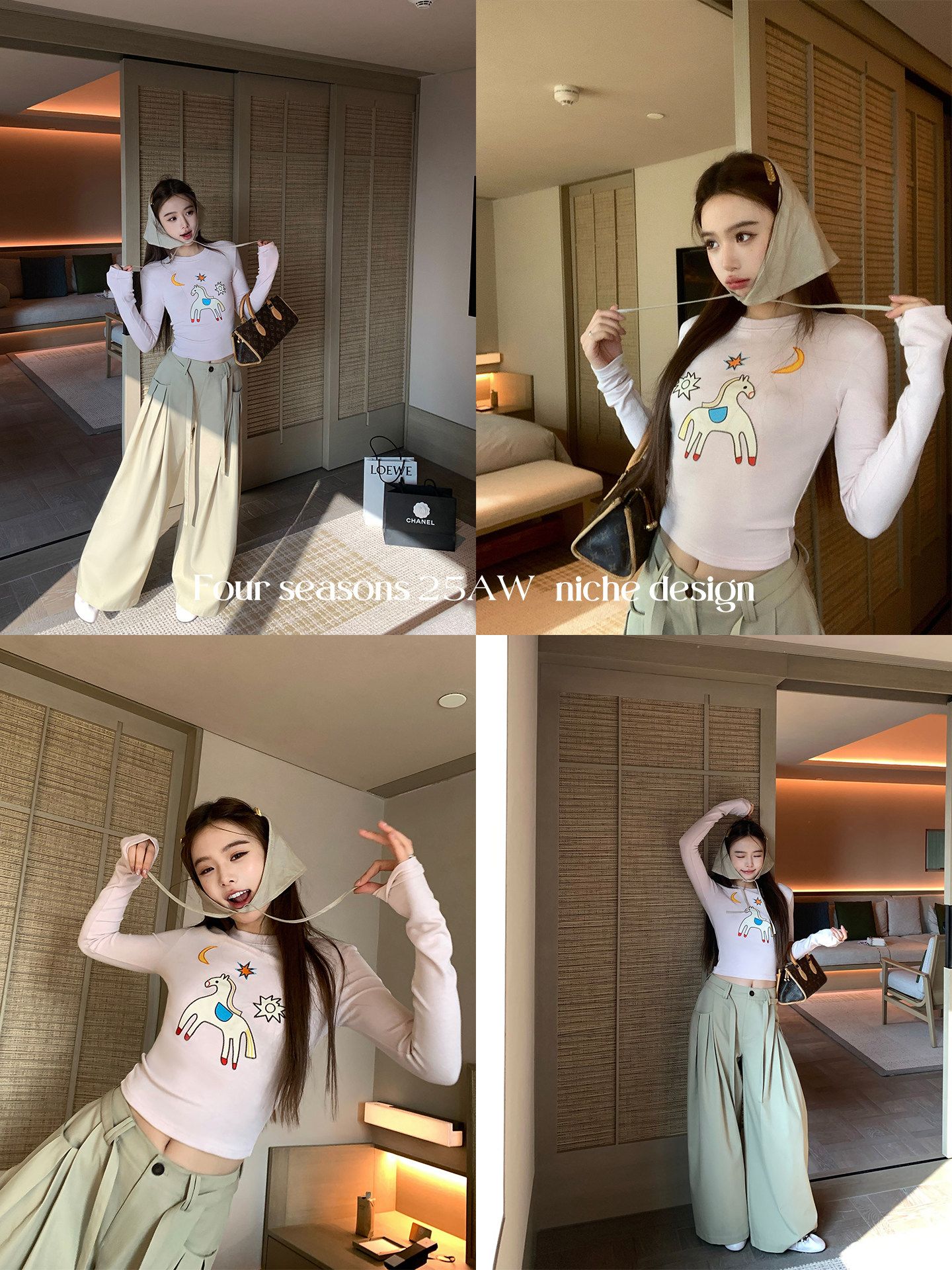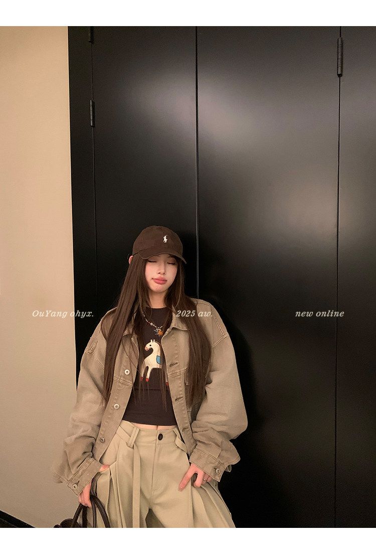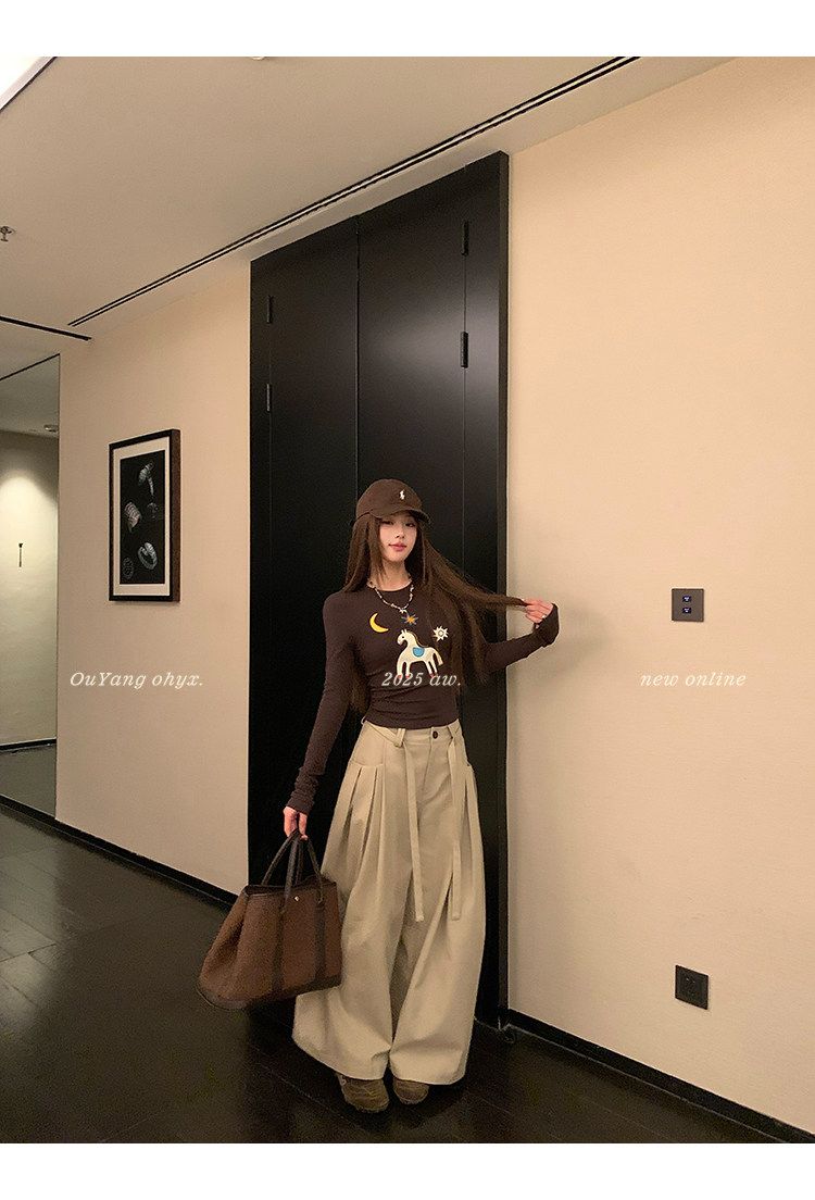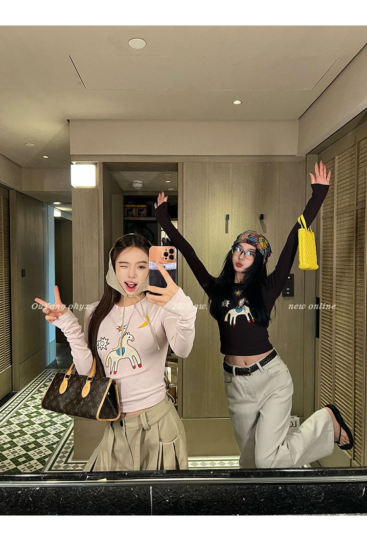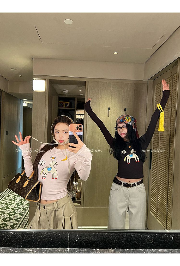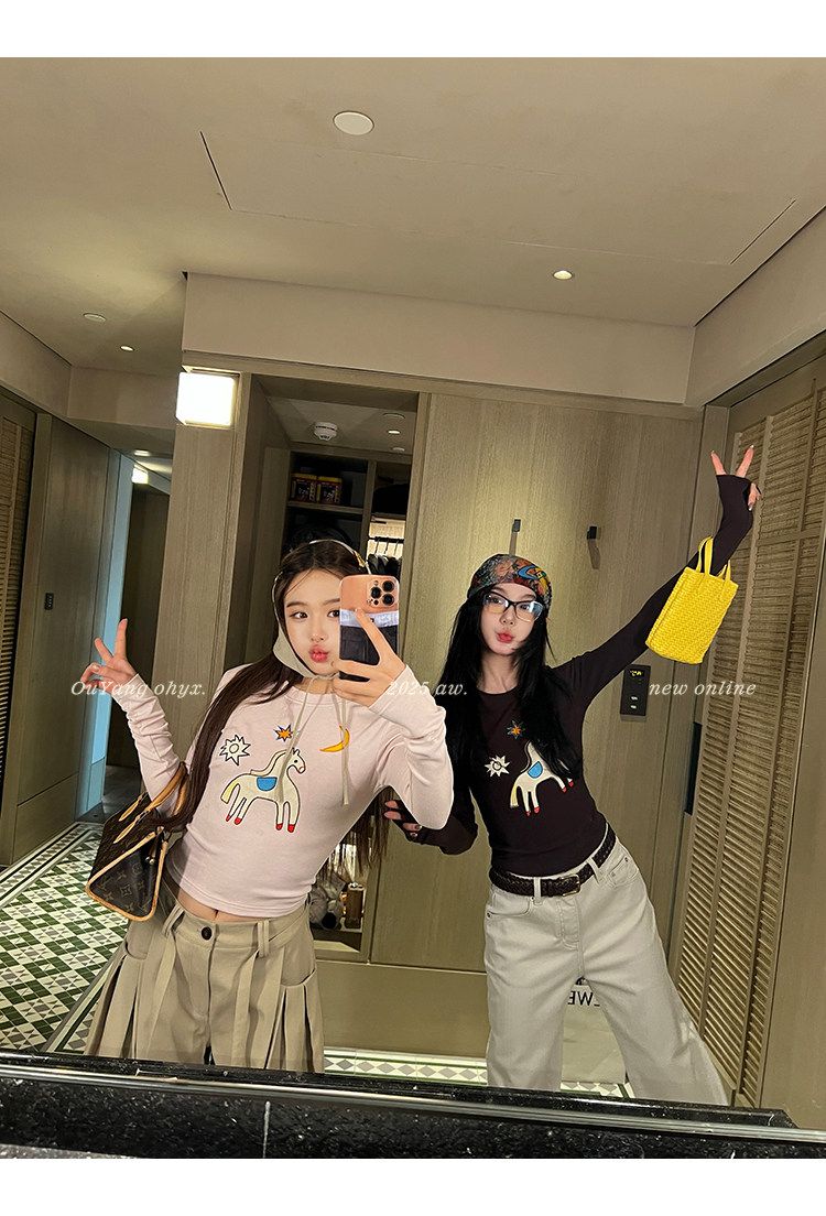 2026 봄 슈퍼 잘 생긴 인사이드 가져 가라. 긴팔 다용도 기본 셔츠 맨위 사람들 면 배색 삽입 어깨 소매 티셔츠 여성
