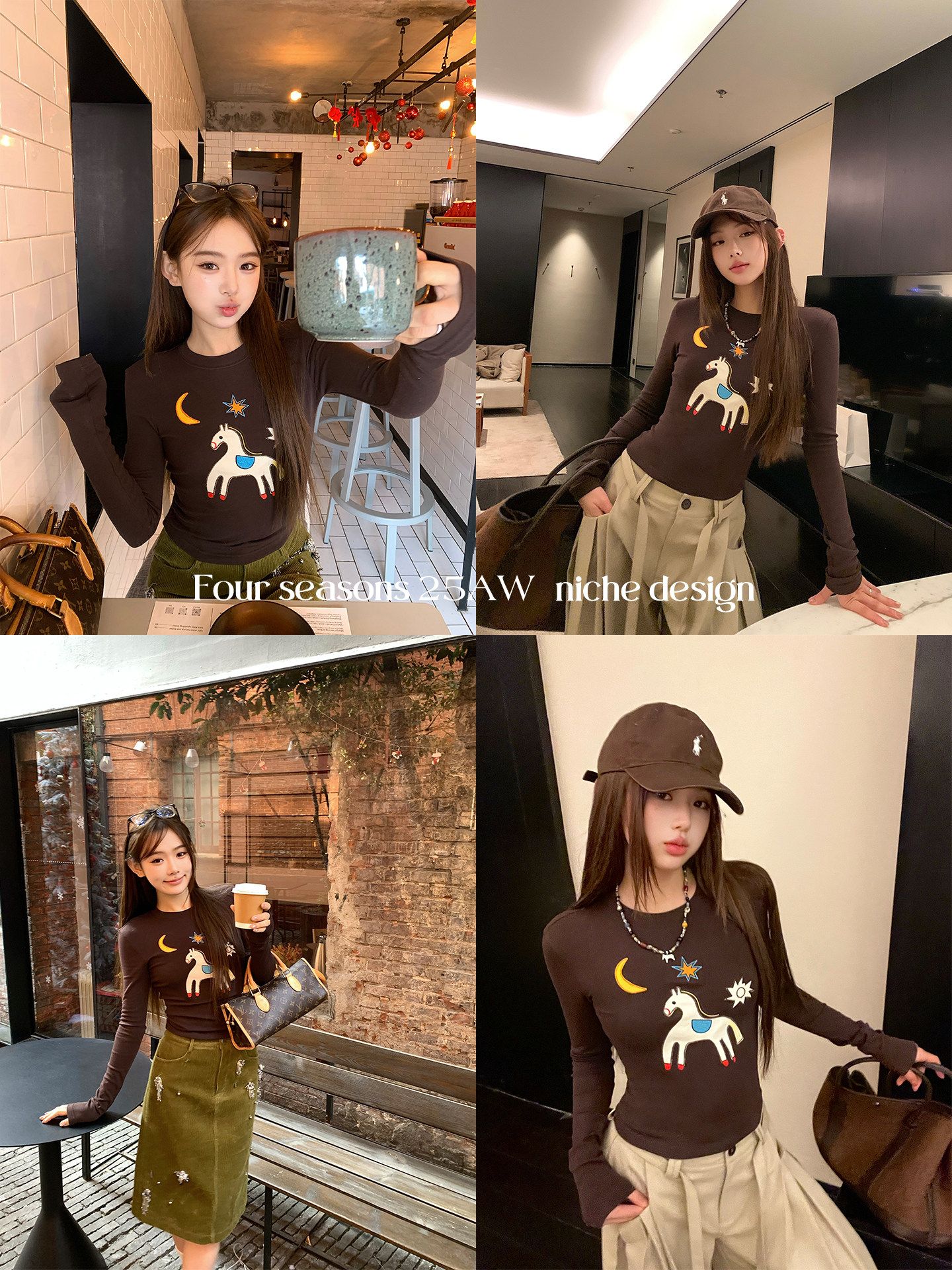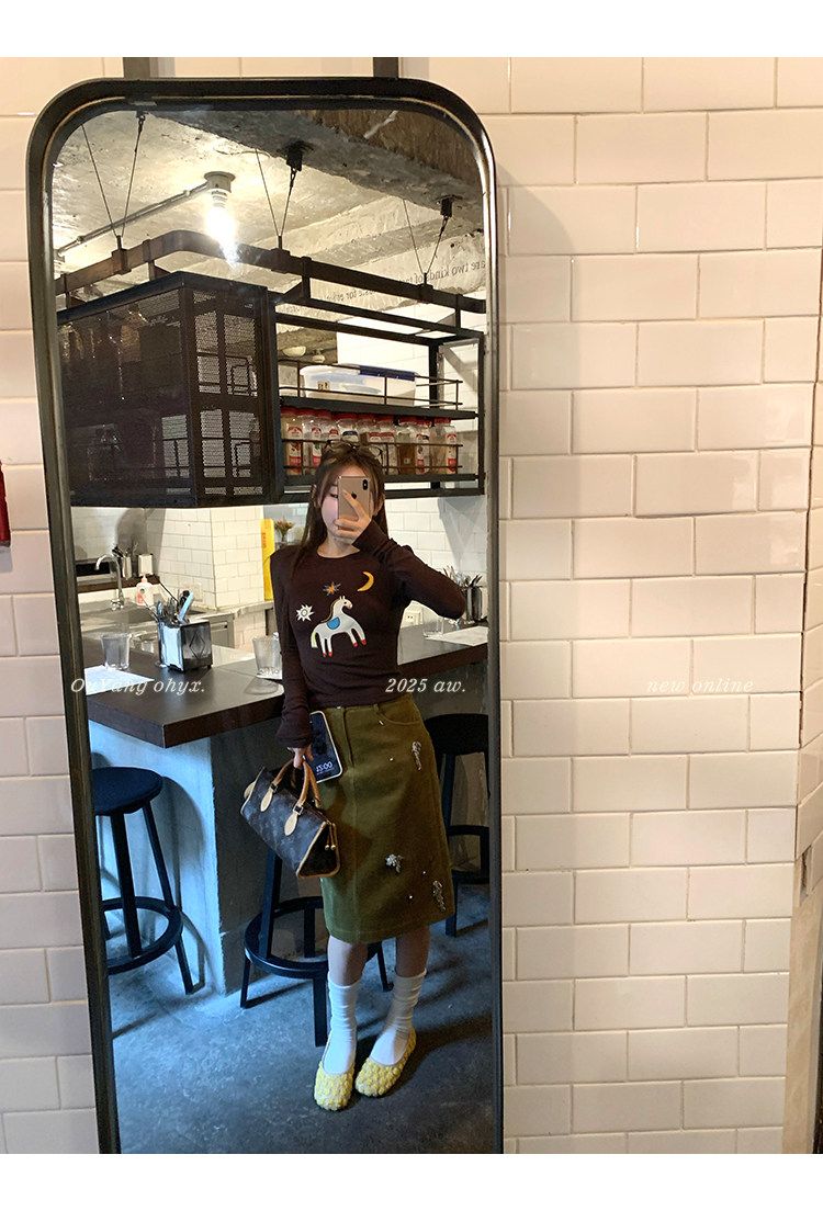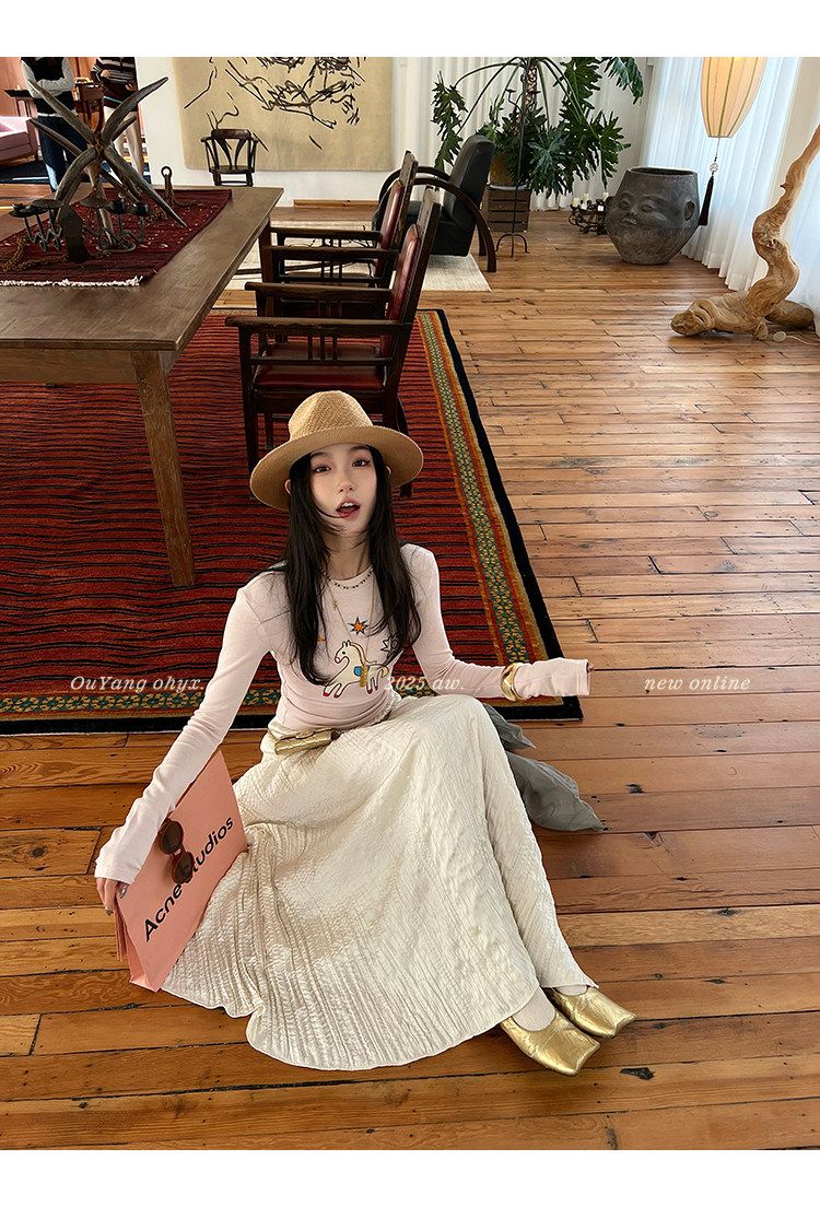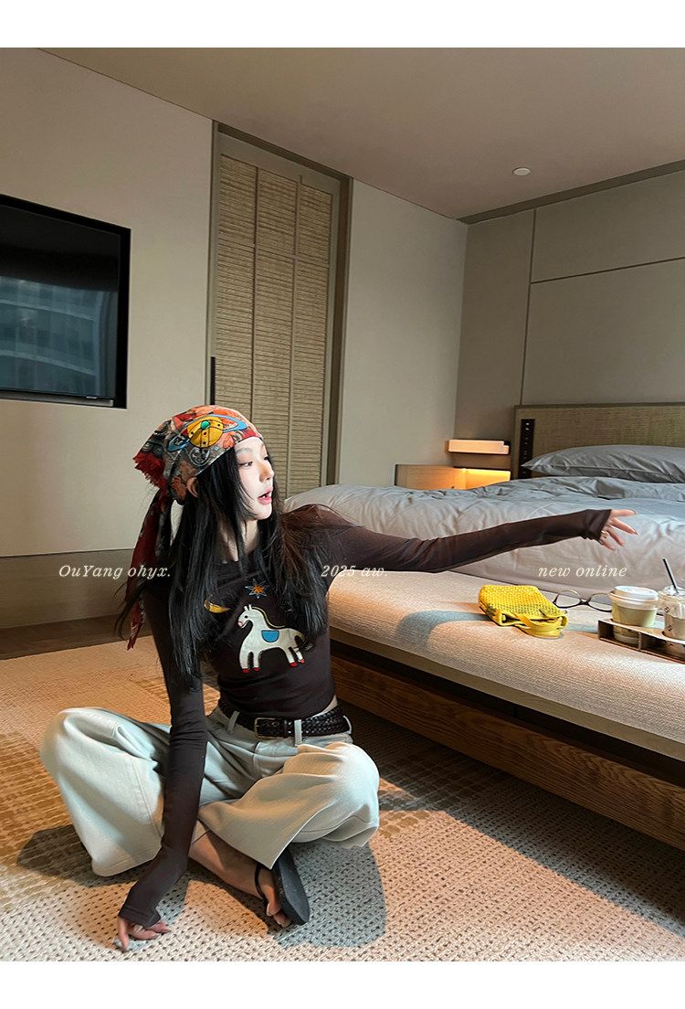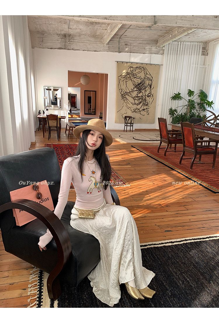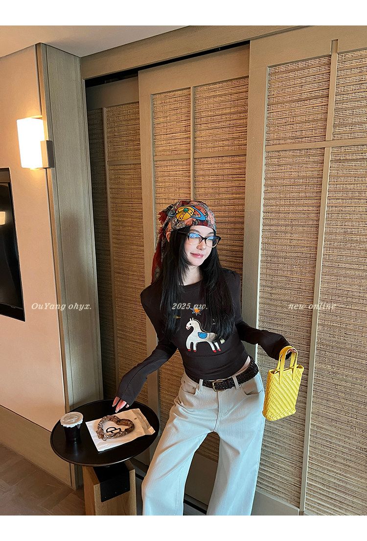 봄 여름 새로운 사람들 면 한 부서 자수 긴팔 기본 셔츠 티셔츠 여성 새로운 몸매 가꾸기 슬림해 보이는 고급 센스 맨위