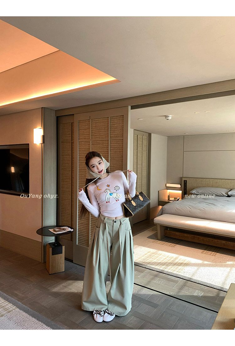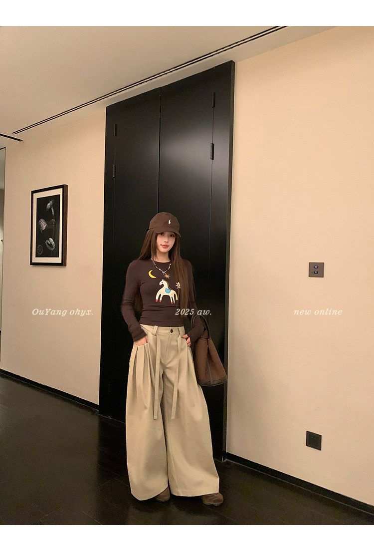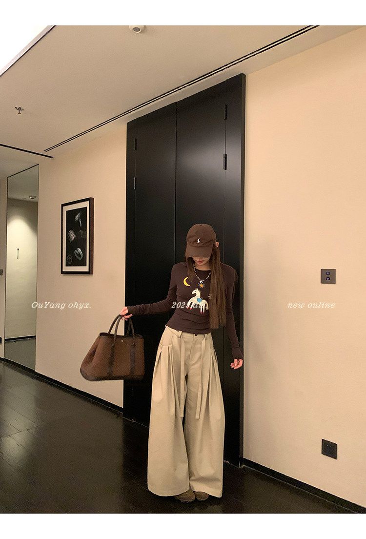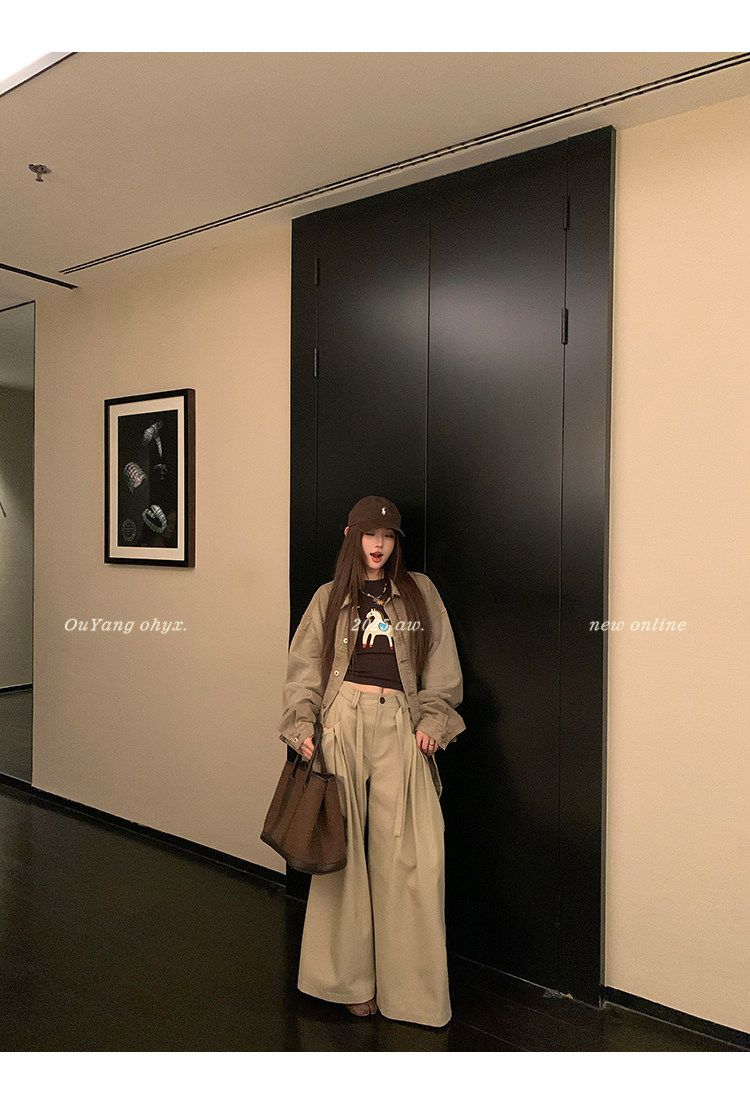 아메리칸 레트로 패치워크 체크무늬 와이드 레깅스 바지 하이웨이스트 루즈핏 캐주얼 바지 스트레이트 도루 센스 바닥 청소 롱 바지
