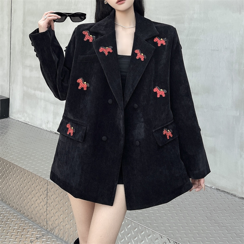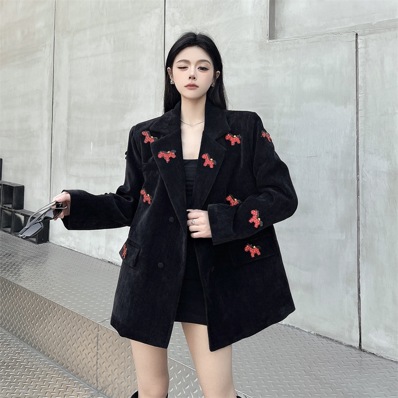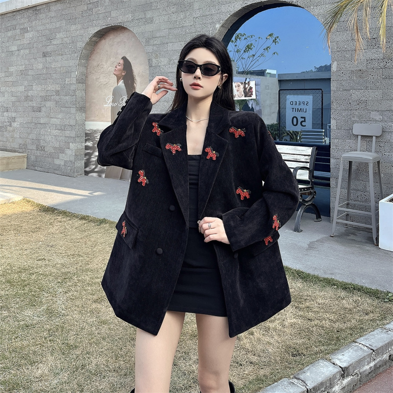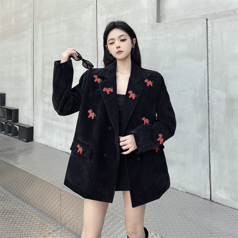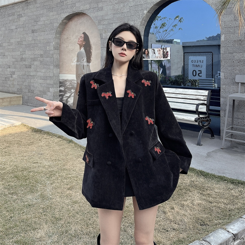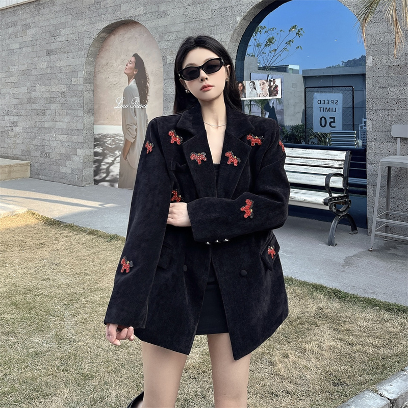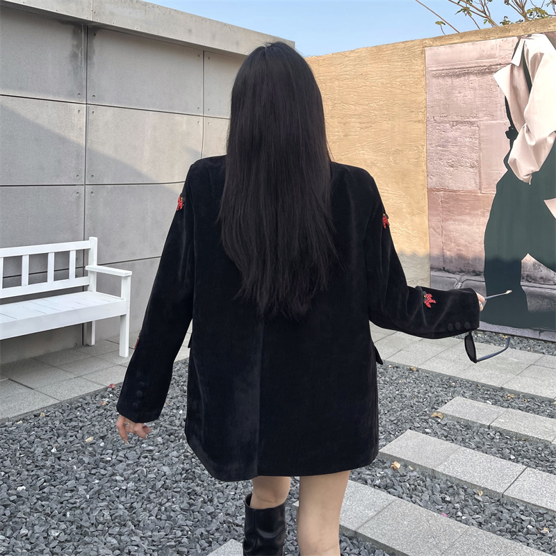실사 디자인 센스 3 차원 장미 꽃 패치워크 루즈핏 정장 작은 대중 슬림해 보이는 고급 센스 재킷