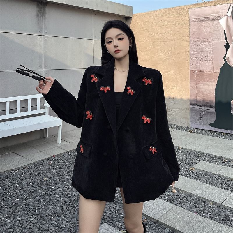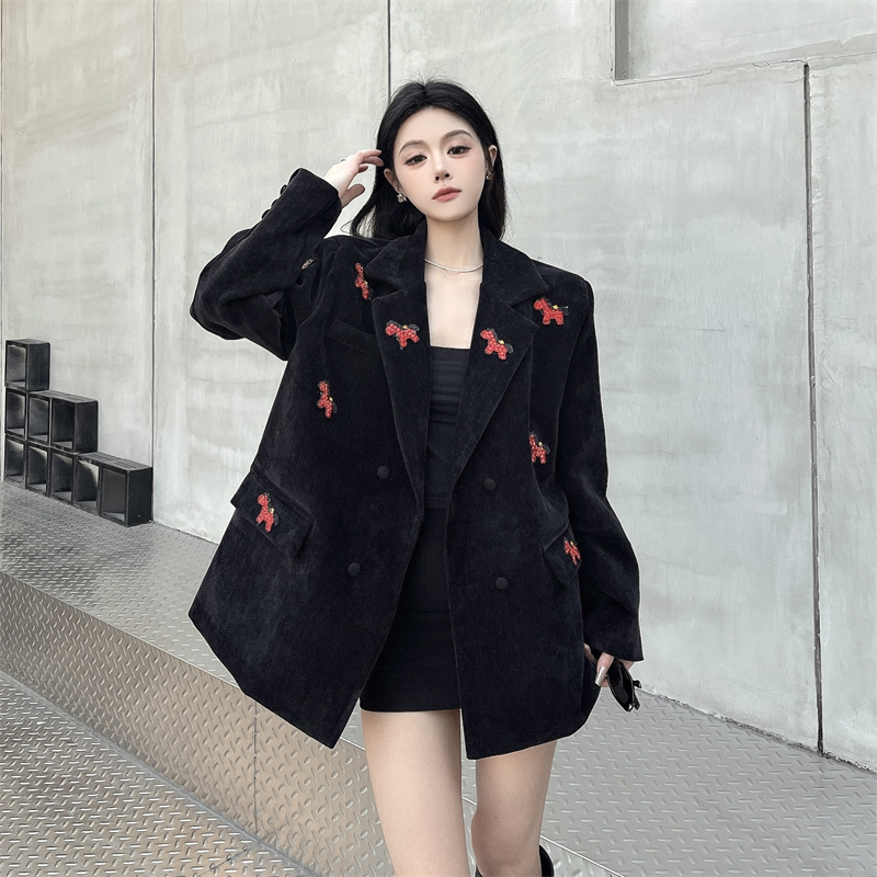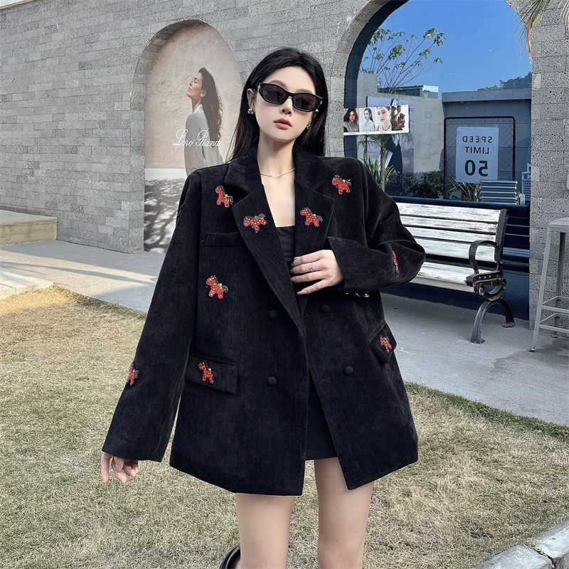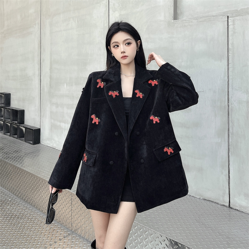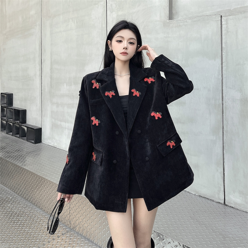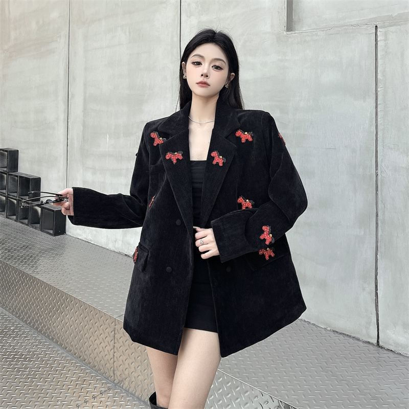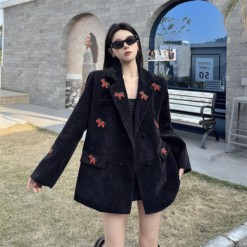 실사 디자인 센스 3 차원 장미 꽃 패치워크 루즈핏 정장 작은 대중 슬림해 보이는 고급 센스 재킷