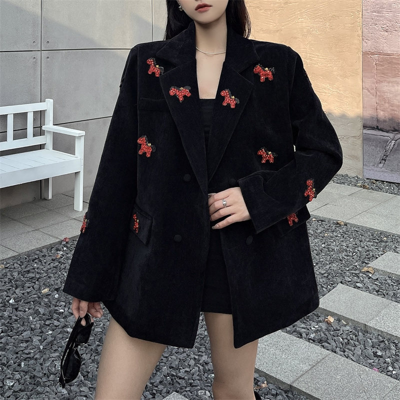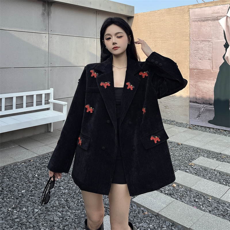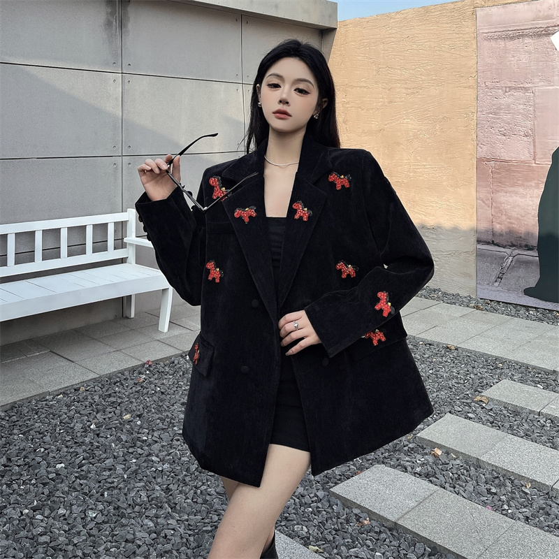 실사 작은 대중 스팽글 3 차원 자수 정장 여성 코트 고급 센스 빛 럭셔리 높음 Dingxi 서비스 맨위
