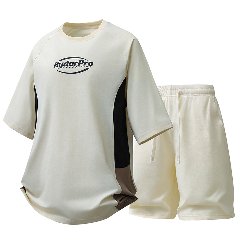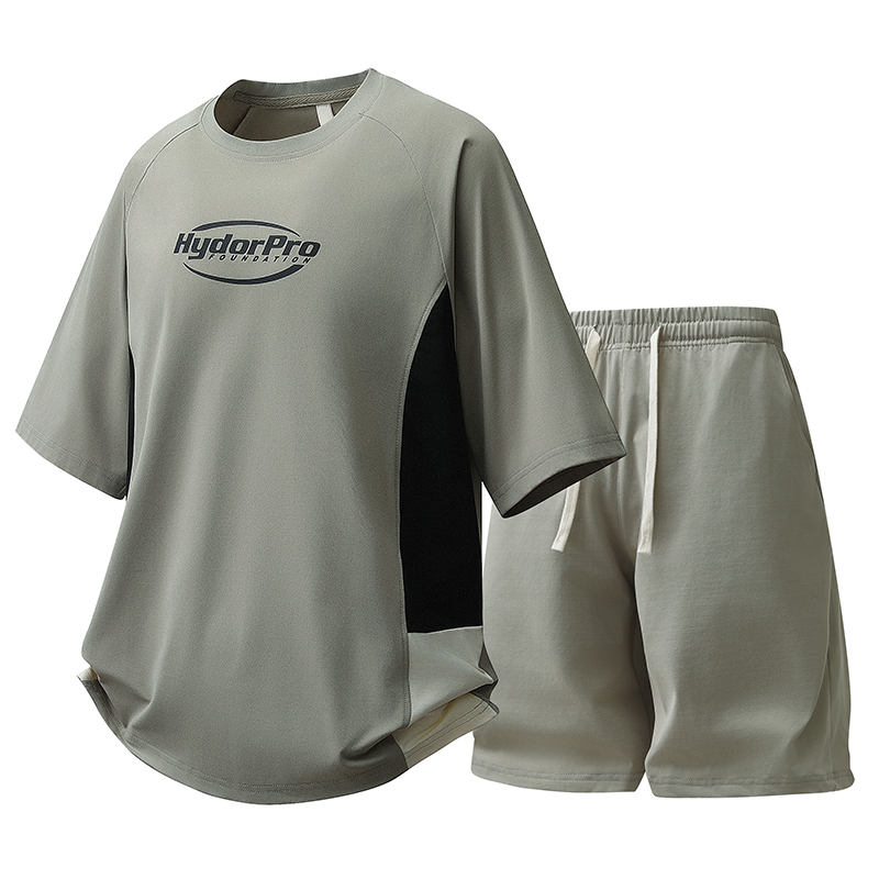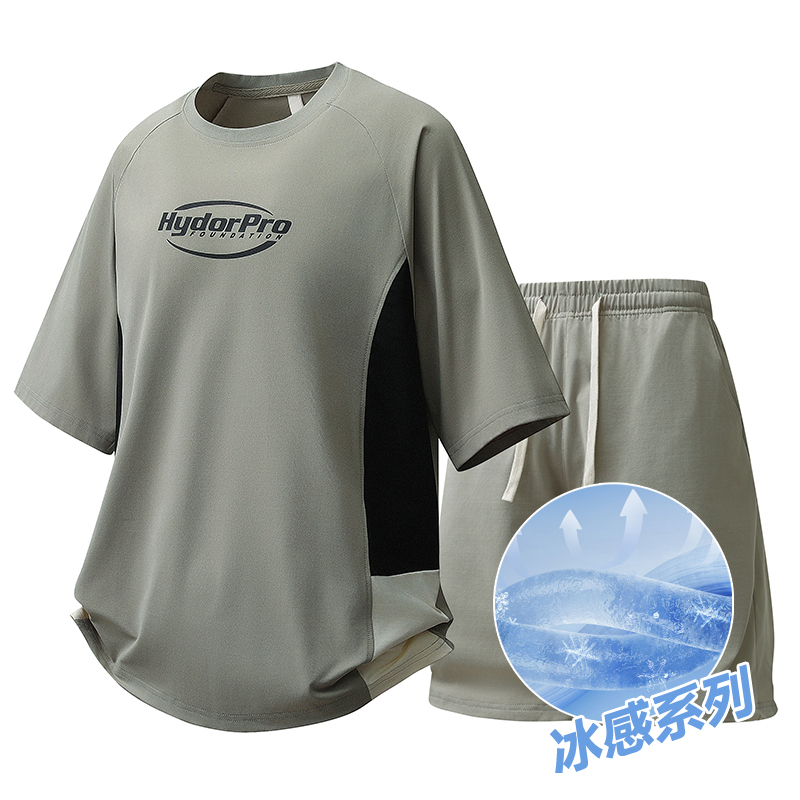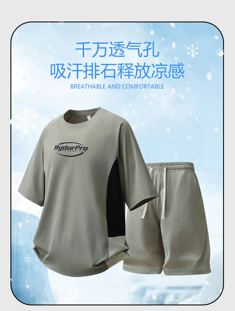 고급 얼음 실크 캐주얼 스포츠 슈트 남성 여름 2026 새로운 반팔 티셔츠 반바지 착용 가져 가라. 세트 남성
