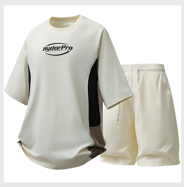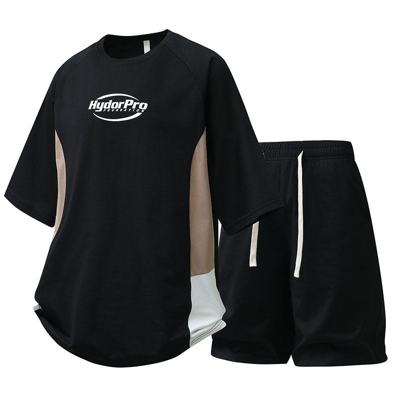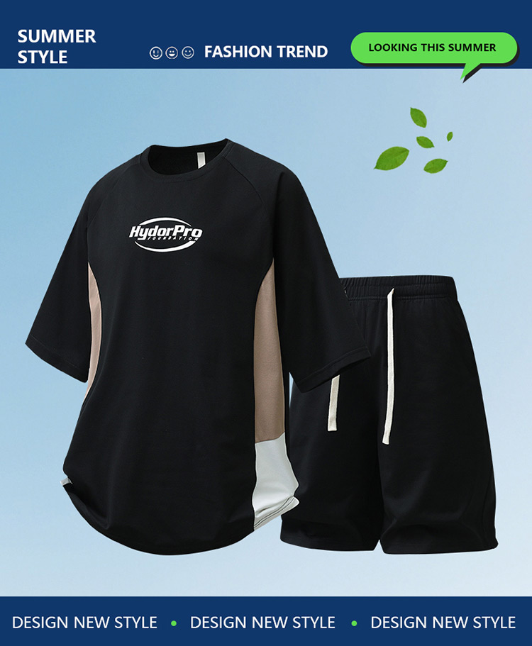 새로운 여름 패치워크 색상 캐주얼 스포츠 슈트 남자 청소년 조수 브랜드 악당 잘 생긴 반팔 반바지 세트