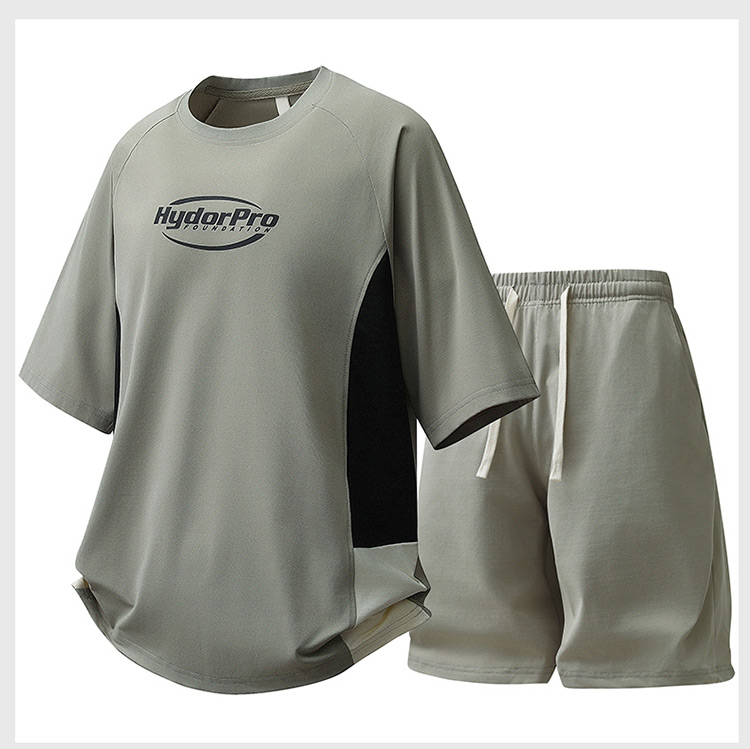 새로운 캐주얼 스포츠 슈트 남성 여름 조수 브랜드 청소년 얼음 실크 속도 건조한 티셔츠 반바지 투피스 세트