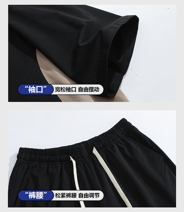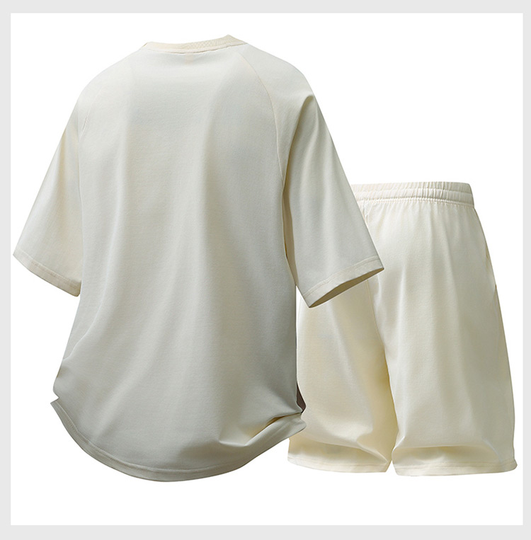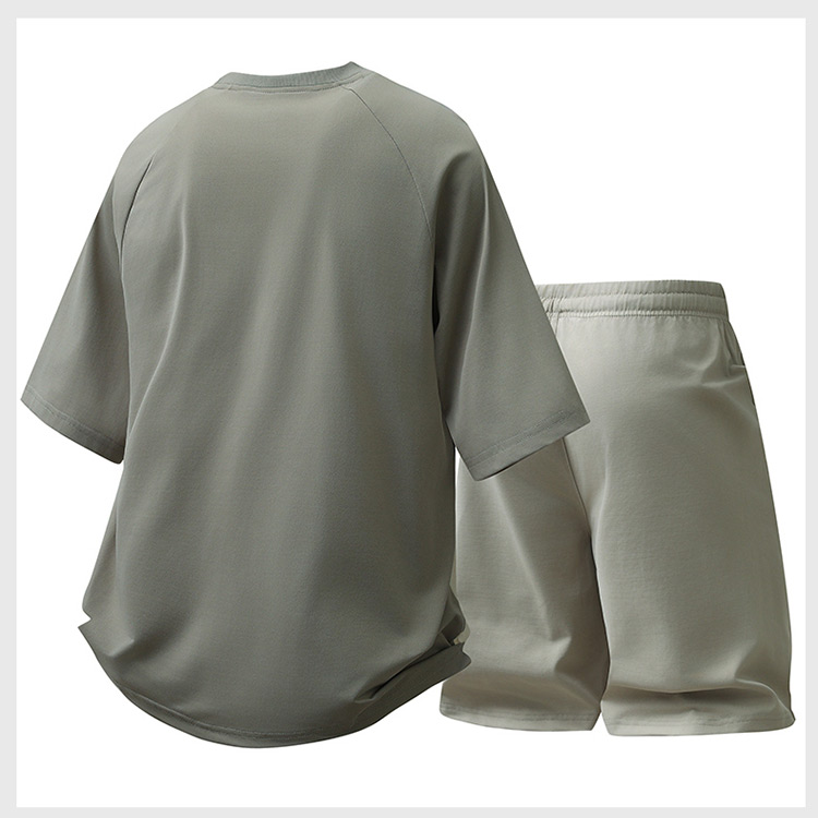 여름 티셔츠 세트 남자 새로운 얼음 실크 운동 캐주얼 투피스 세트 루즈핏 트렌드 운동복 패션 반바지 남자