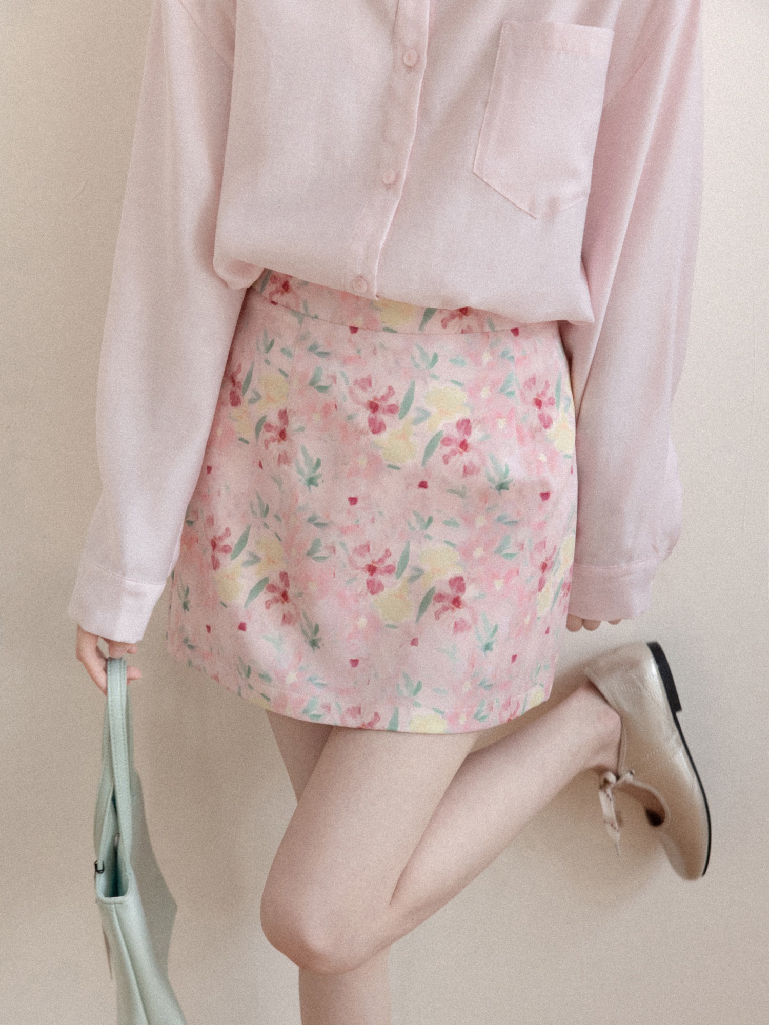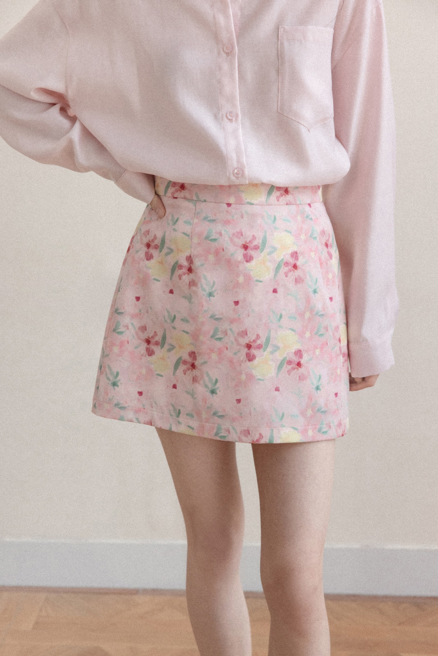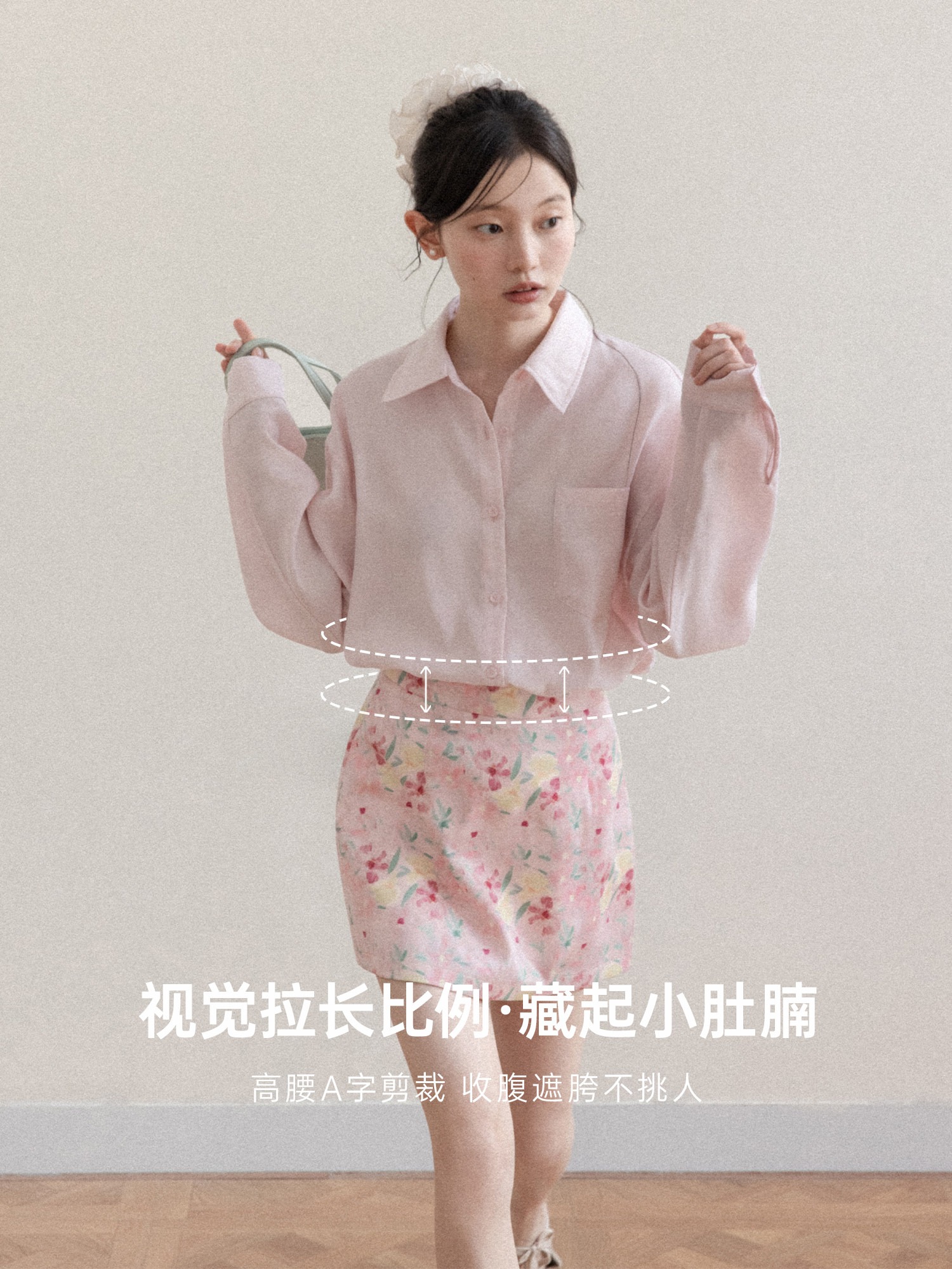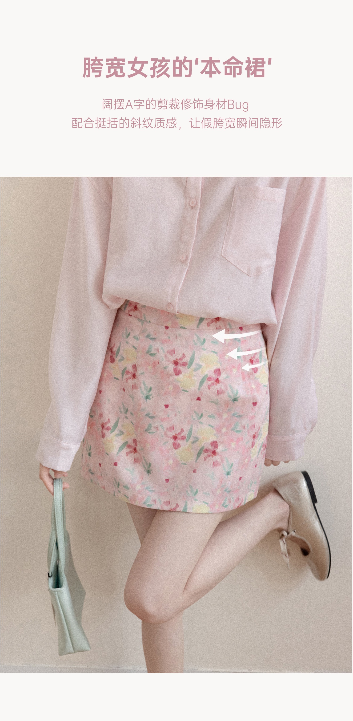프랑스식 달콤함 핑크색 꽃무늬 한 마디 반신 스커트 여성 봄 작은 대중 하이웨이스트 슬림해 보이는 타이트 스커트 미니 스커트