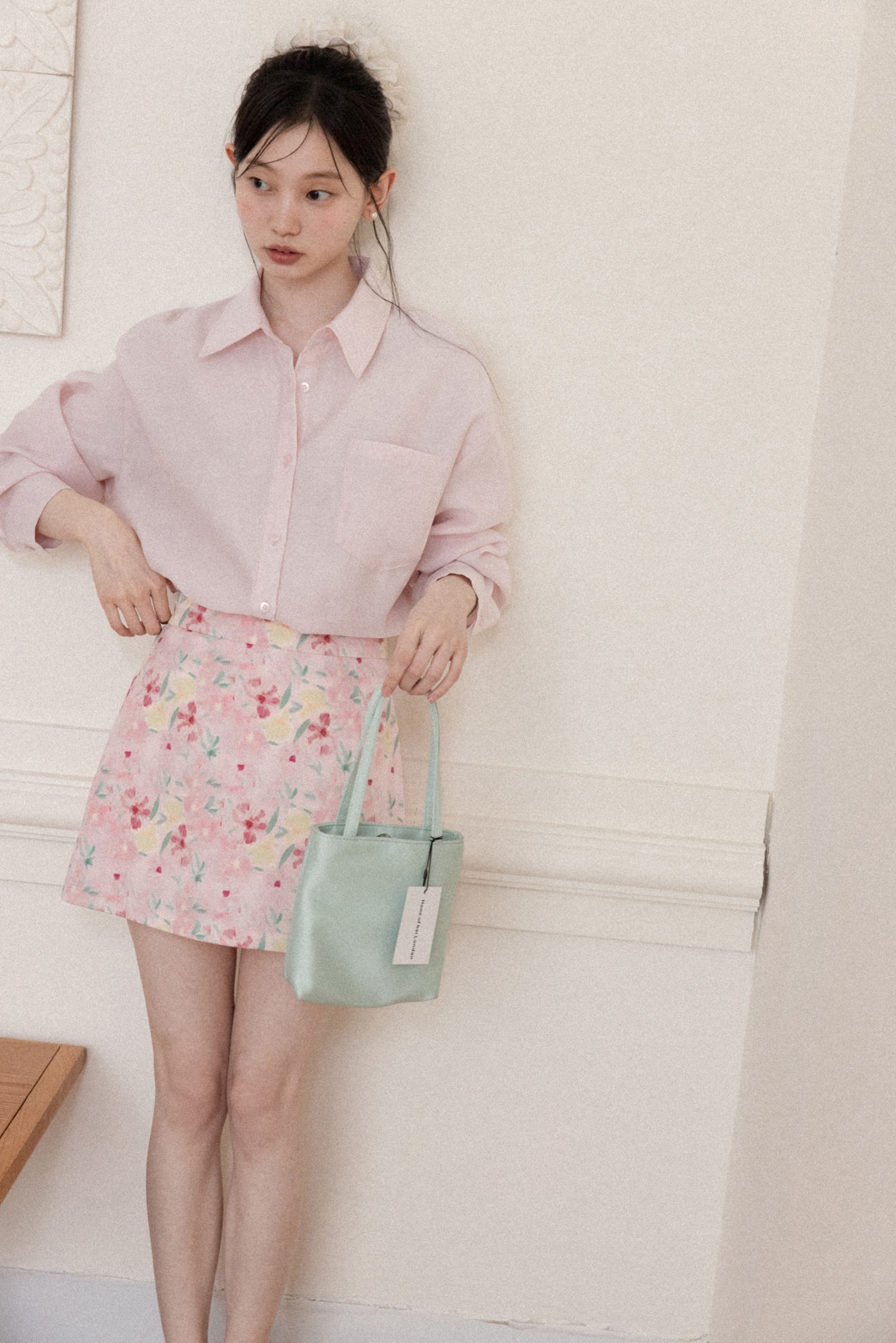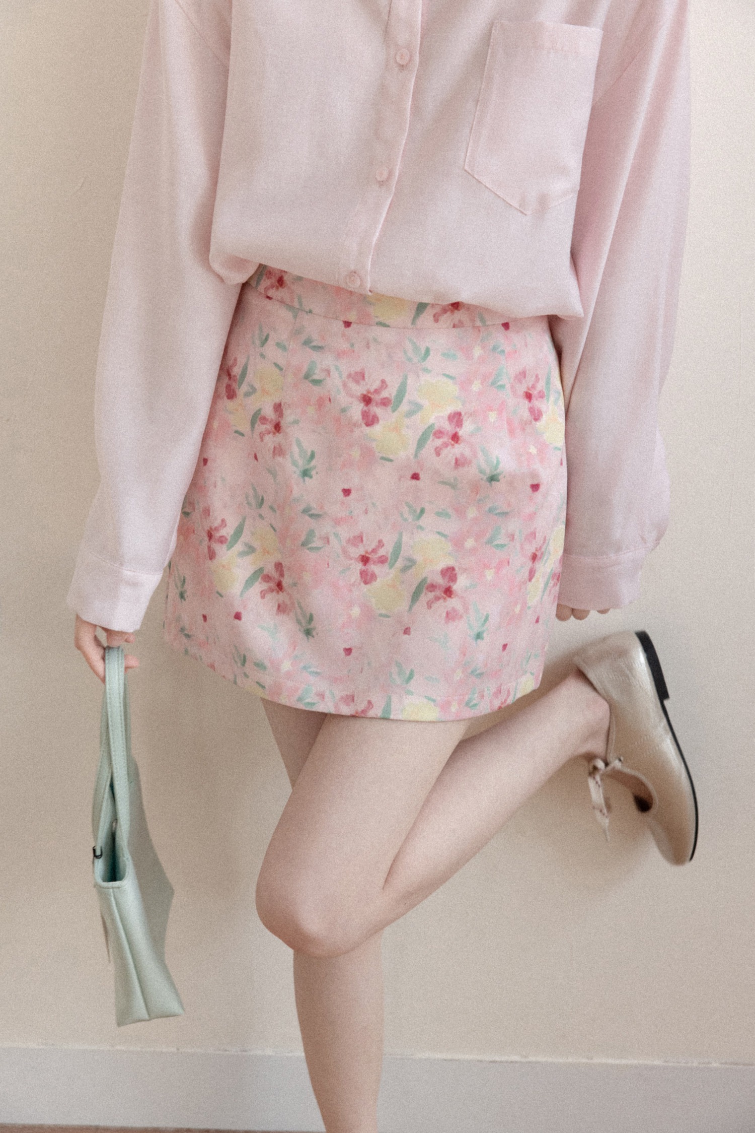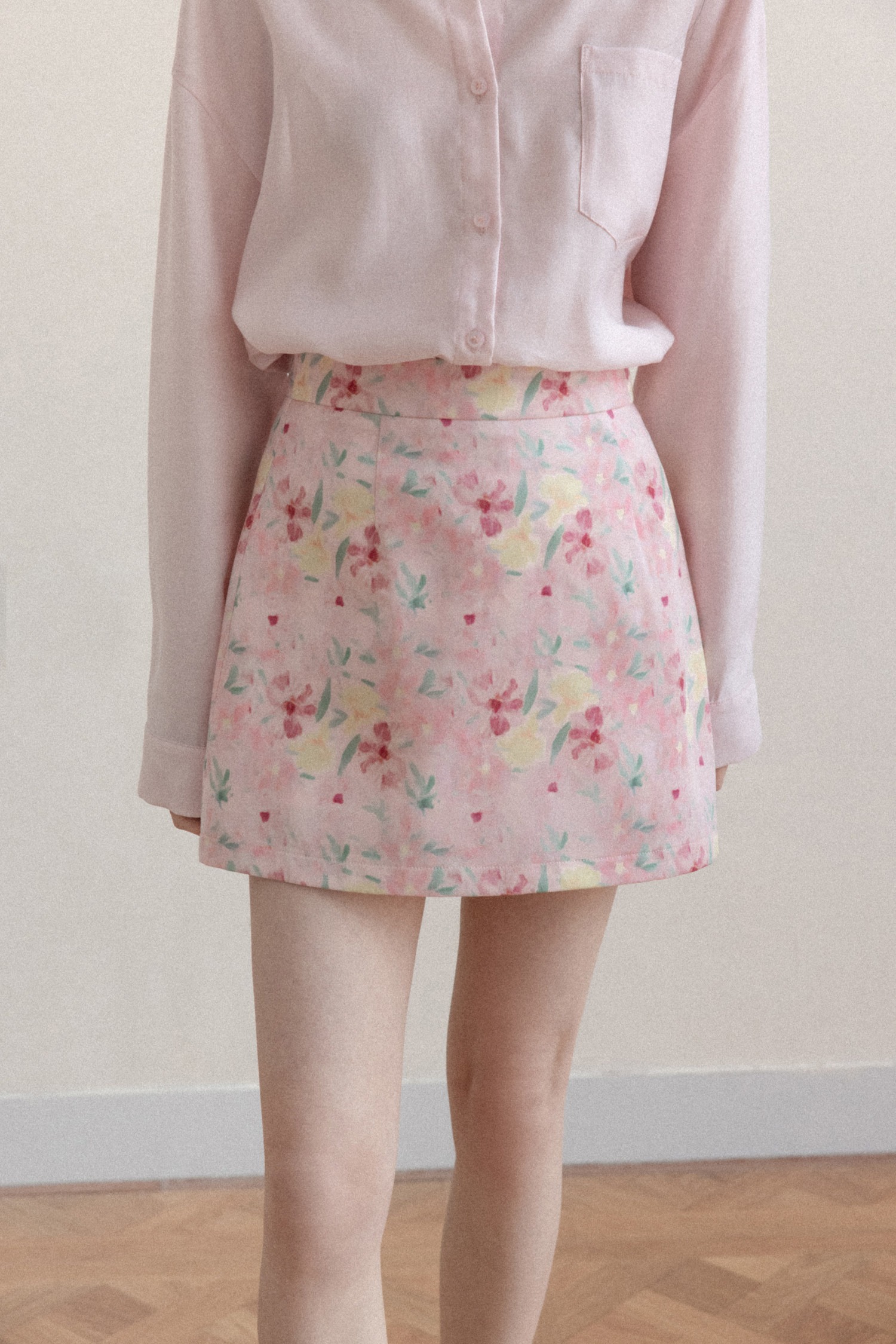 프랑스식 달콤함 핑크색 꽃무늬 한 마디 반신 스커트 여성 봄 작은 대중 하이웨이스트 슬림해 보이는 타이트 스커트 미니 스커트