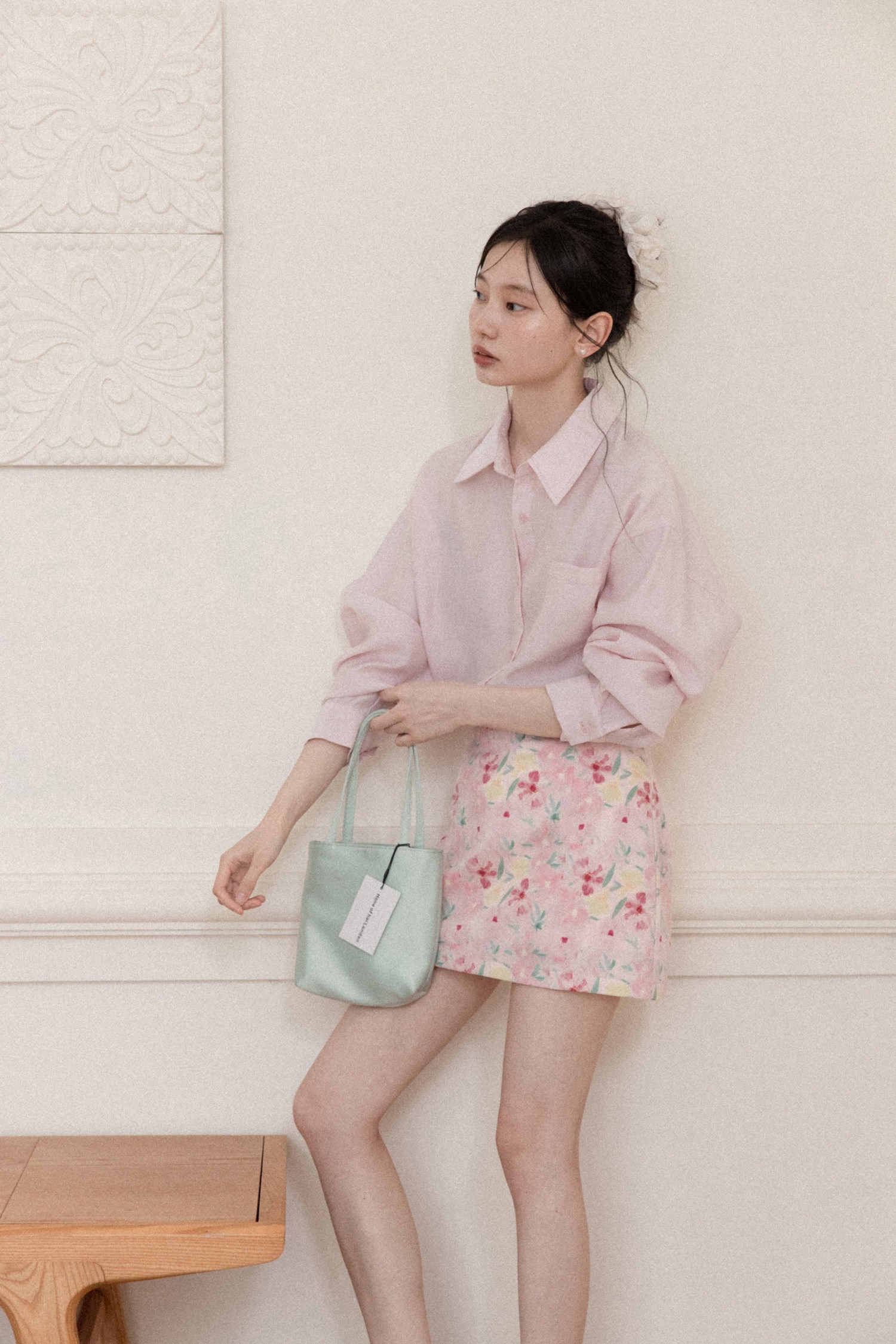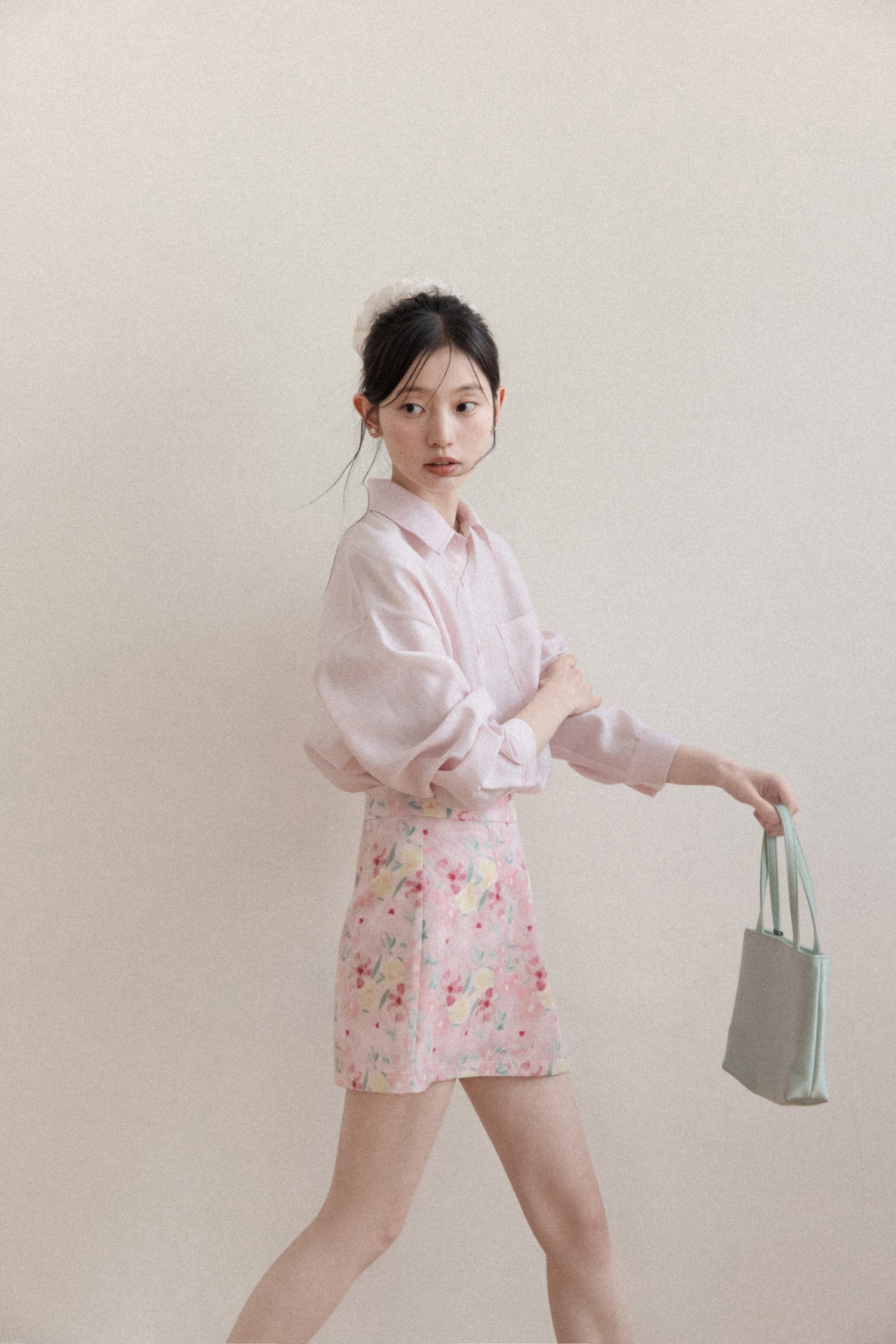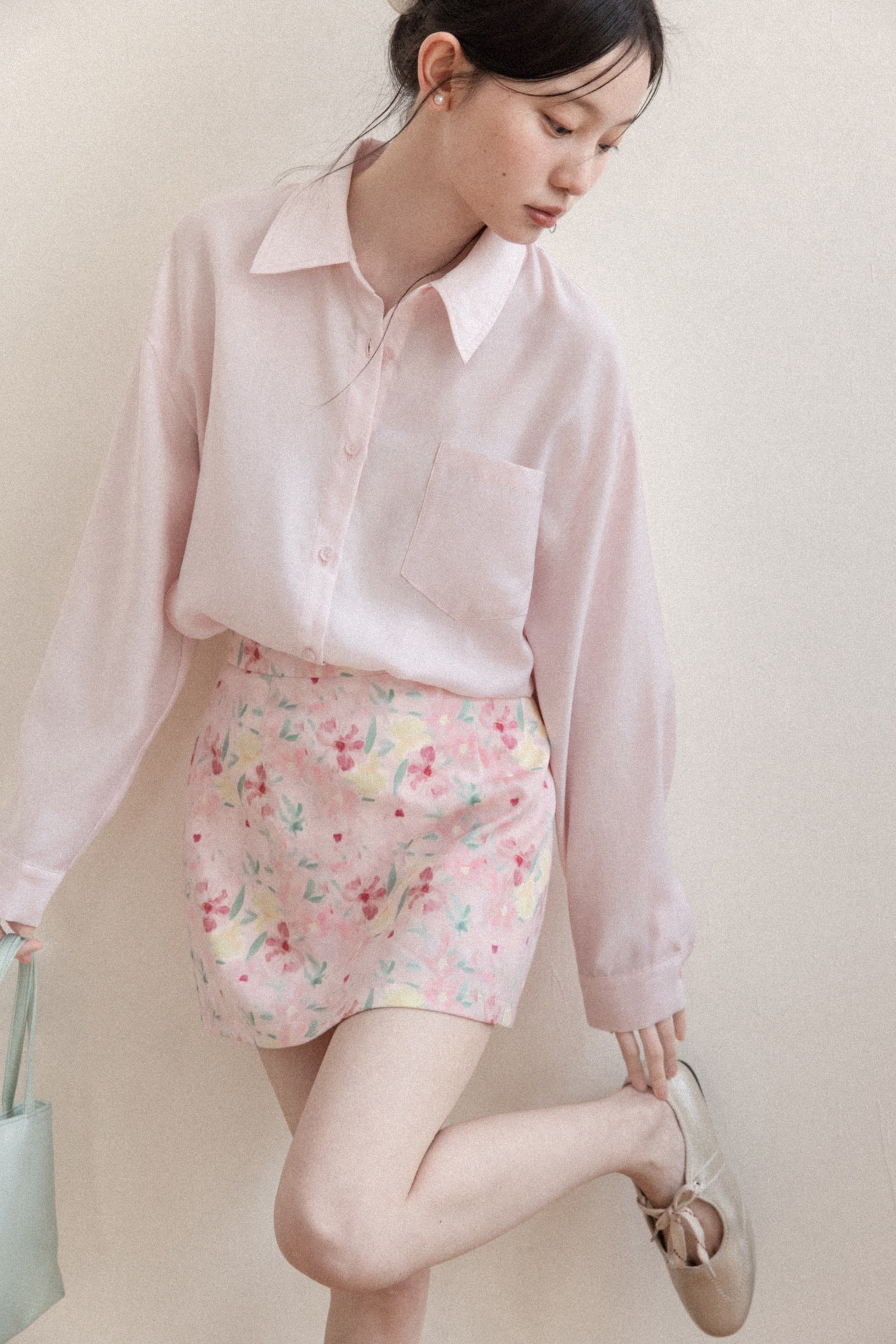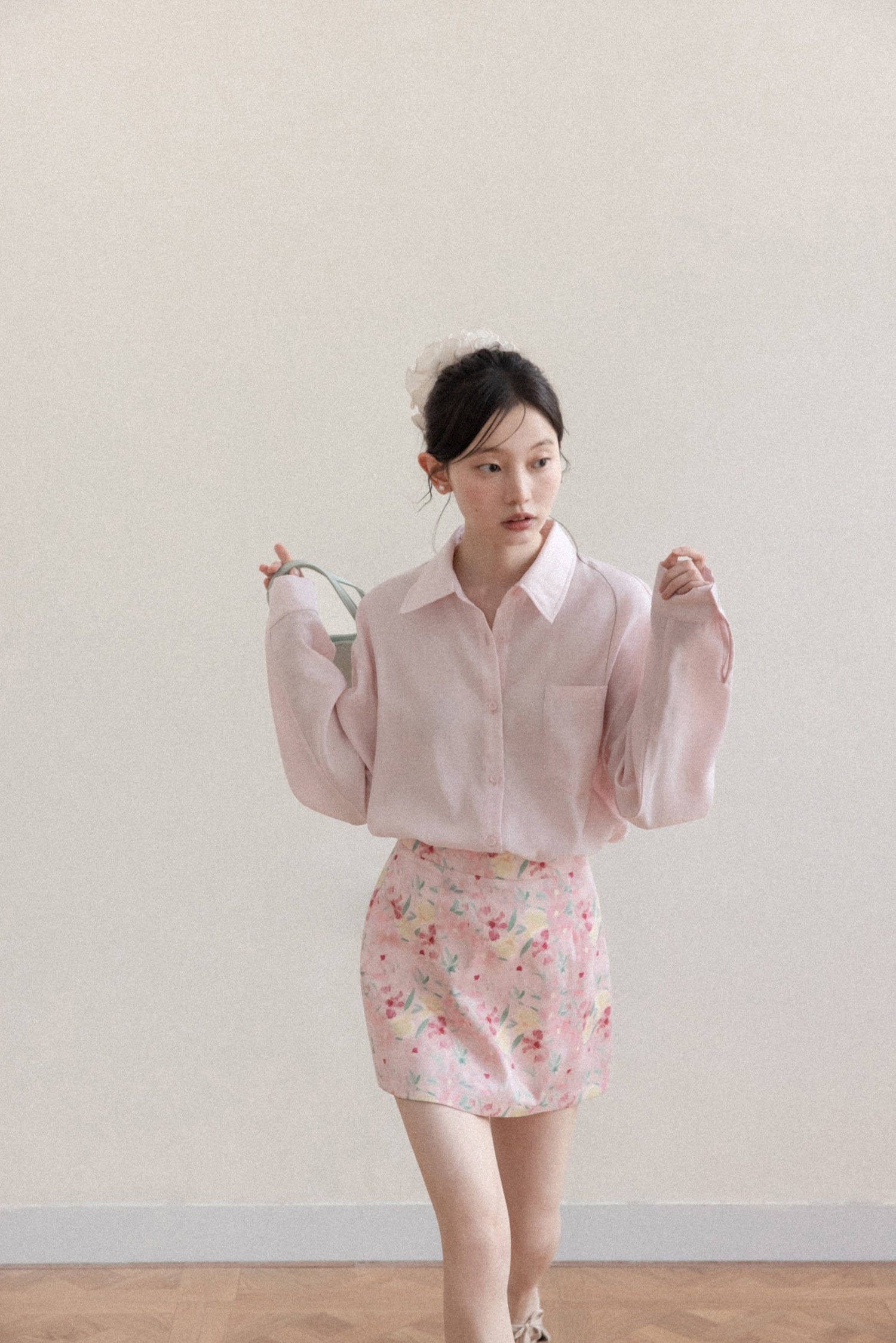 프랑스식 달콤함 핑크색 꽃무늬 한 마디 반신 스커트 여성 봄 작은 대중 하이웨이스트 슬림해 보이는 타이트 스커트 미니 스커트