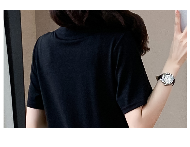 실사 패치워크 여성 드레스 여름 네클라인 구슬 장식 루즈핏 슬림해 보이는 중간 길이 빅 사이즈 티셔츠 치마