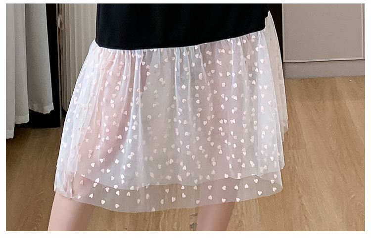 실사 망사 패치워크 드레스 라운드 넥 반팔 배색 수공 못 나비 패션 표지 고기 슬림해 보이는 중간 길이 치마