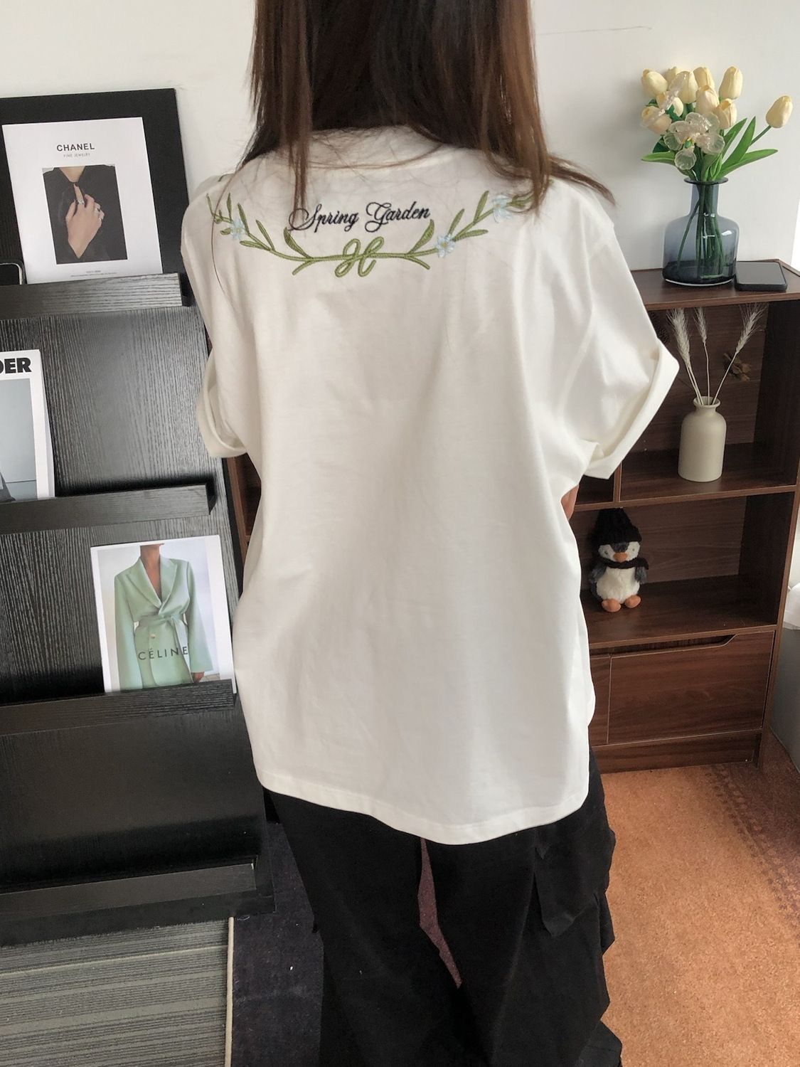 정가 자수 순면 220 그램 빗질하다 닫기 반팔 티셔츠 여성