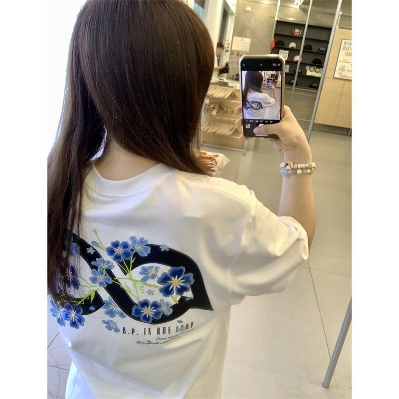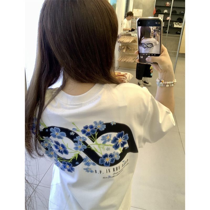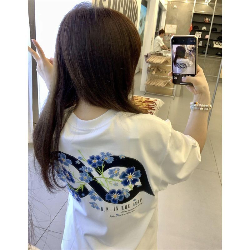 정가 전후 자수 순면 220 그램 빗질하다 닫기 반팔 티셔츠 여성