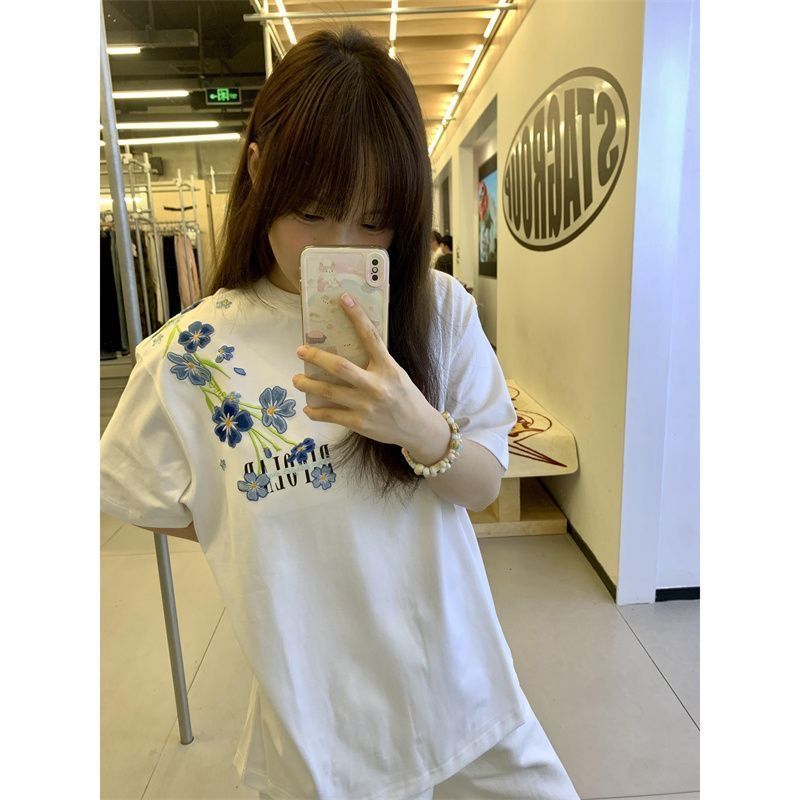 정가 자수 순면 220 그램 빗질하다 닫기 반팔 티셔츠 여성