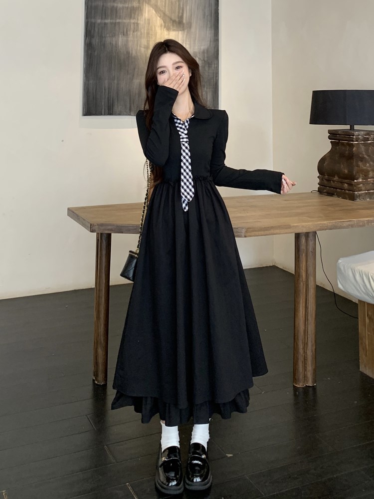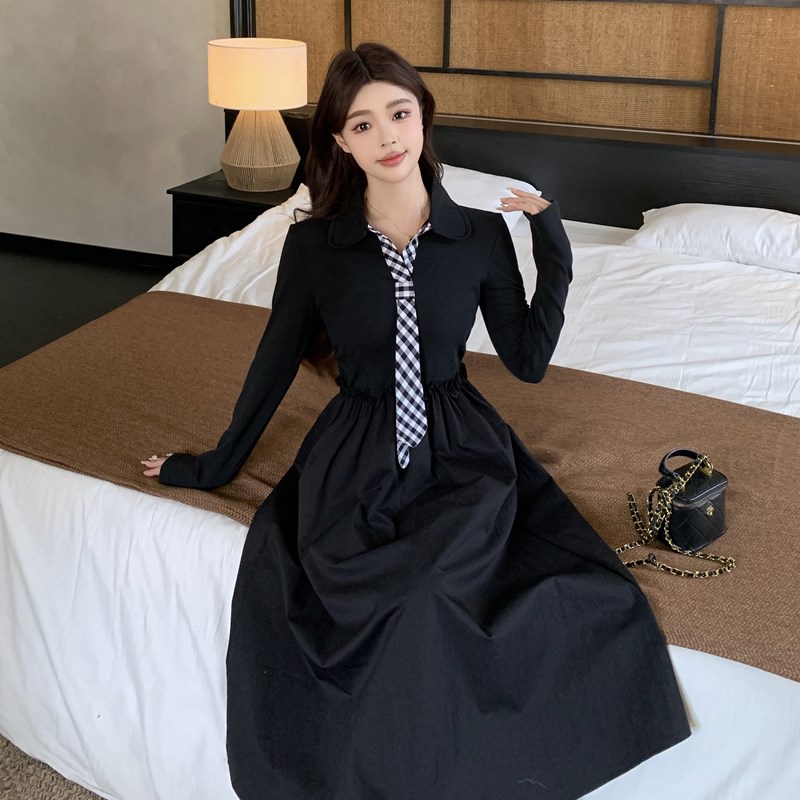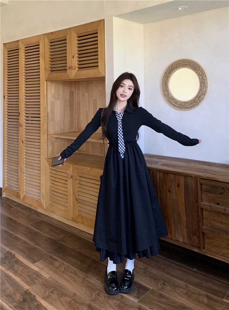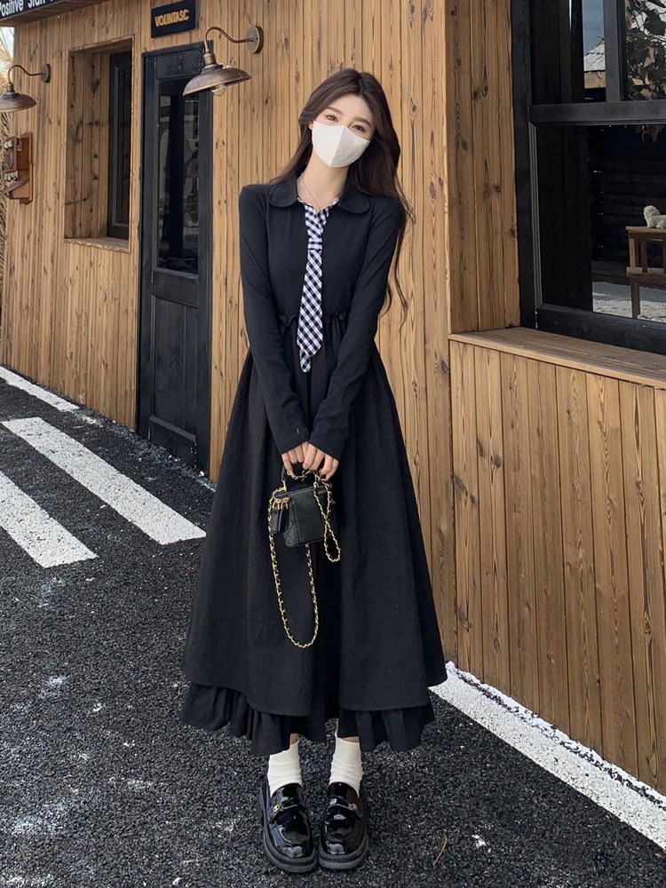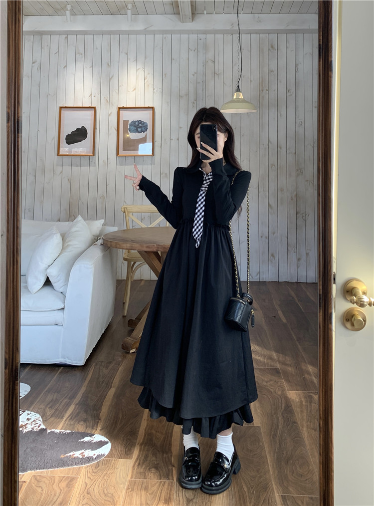 지방 mm 부드러운 바람 흔들다 칼라 페이크 레이어드 패치워크 드레스 2026 여름 새로운 표지 고기 품격 아름다운 길다 치마