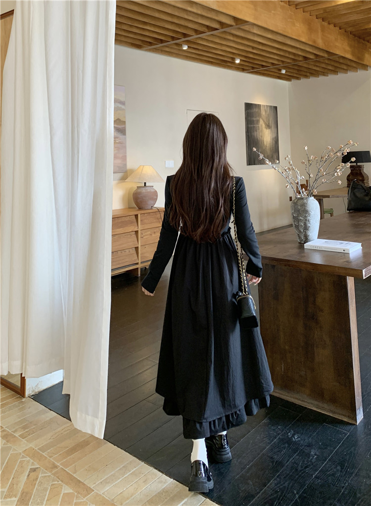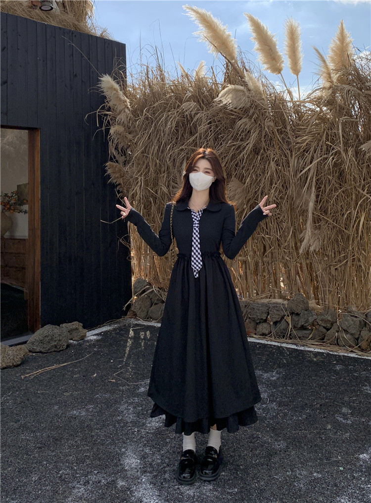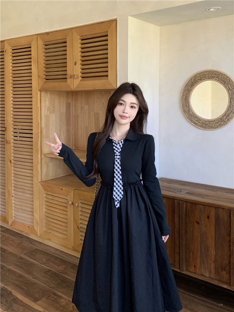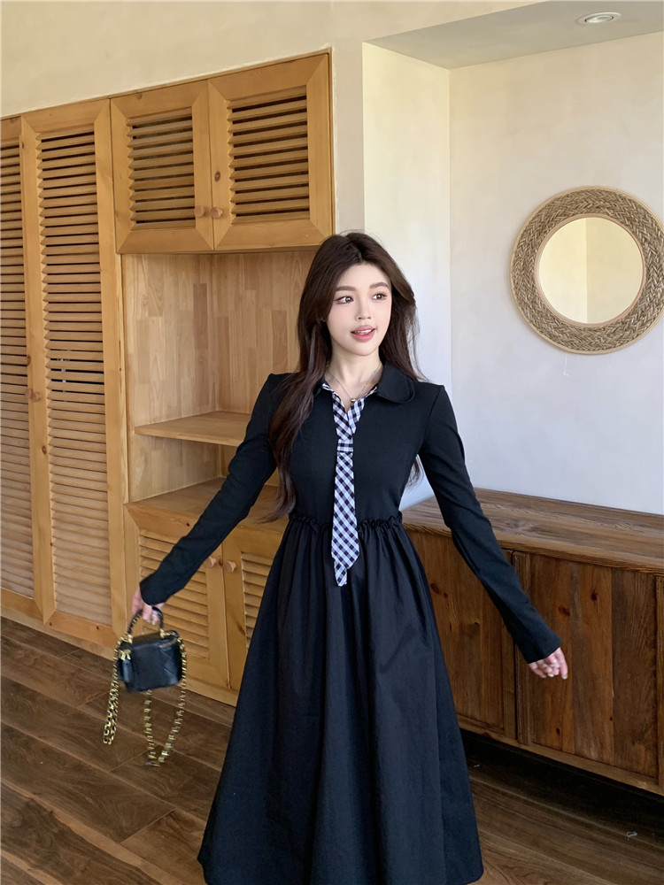 지방 mm 부드러운 바람 흔들다 칼라 페이크 레이어드 패치워크 드레스 2026 여름 새로운 표지 고기 품격 아름다운 길다 치마
