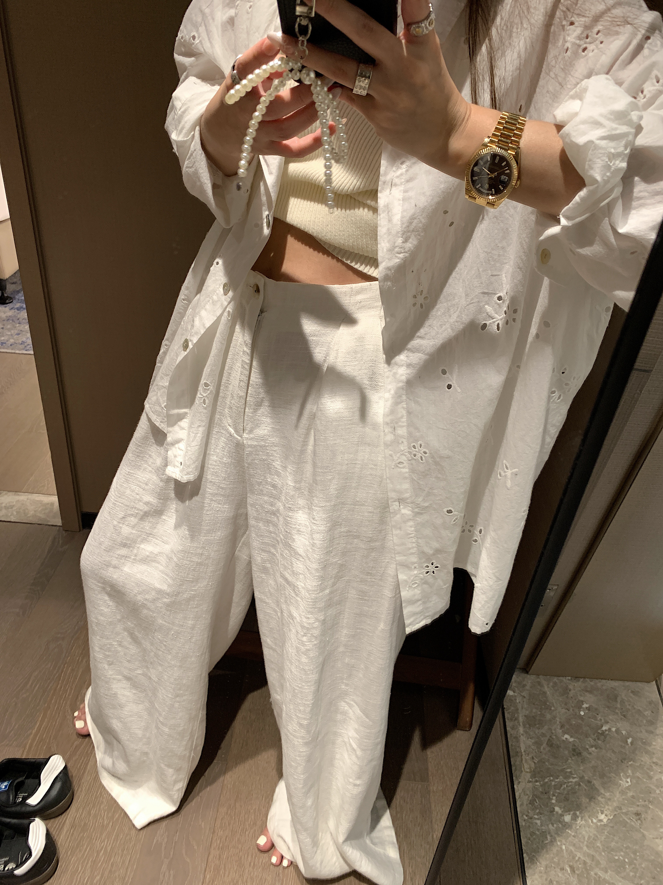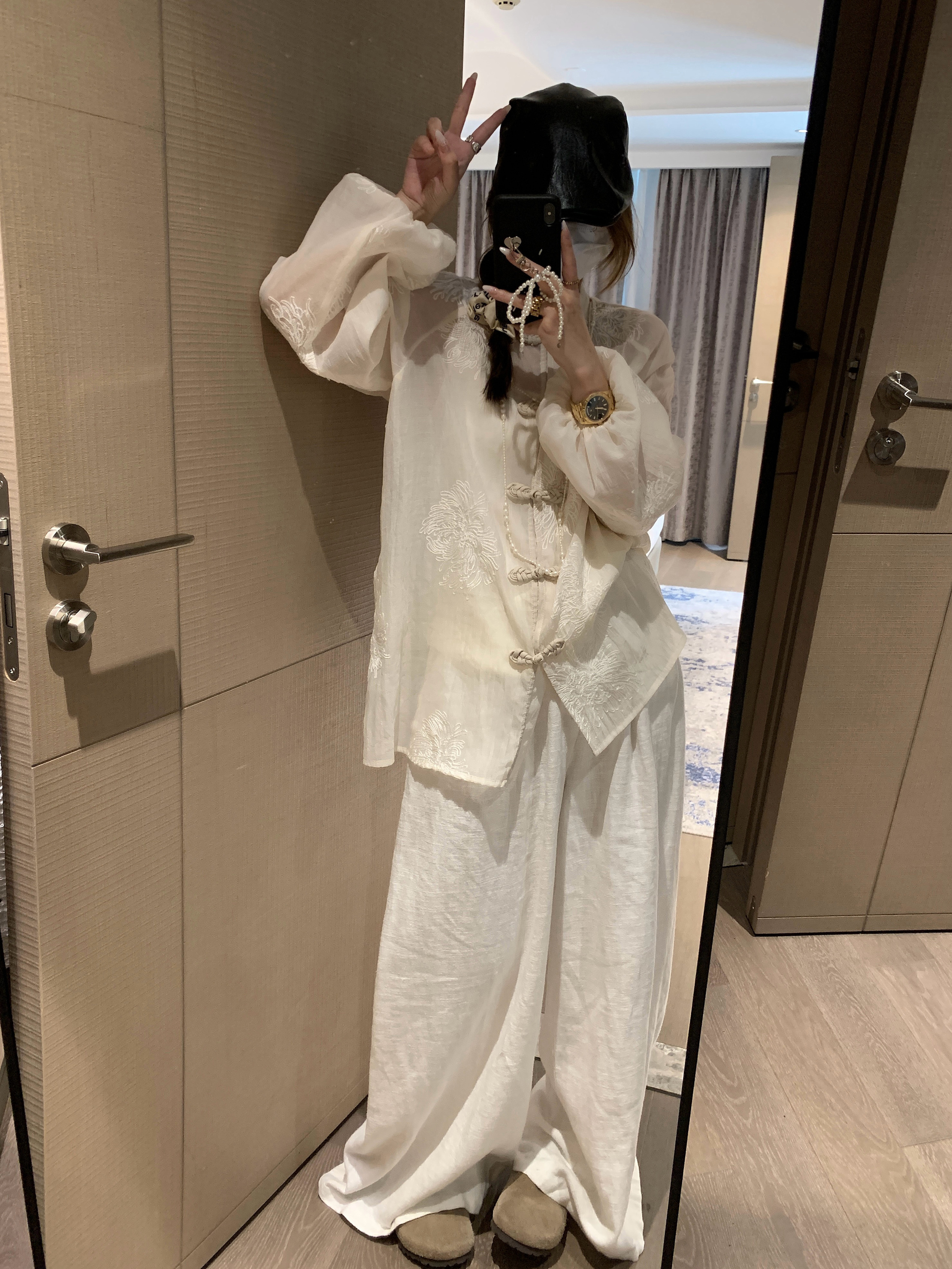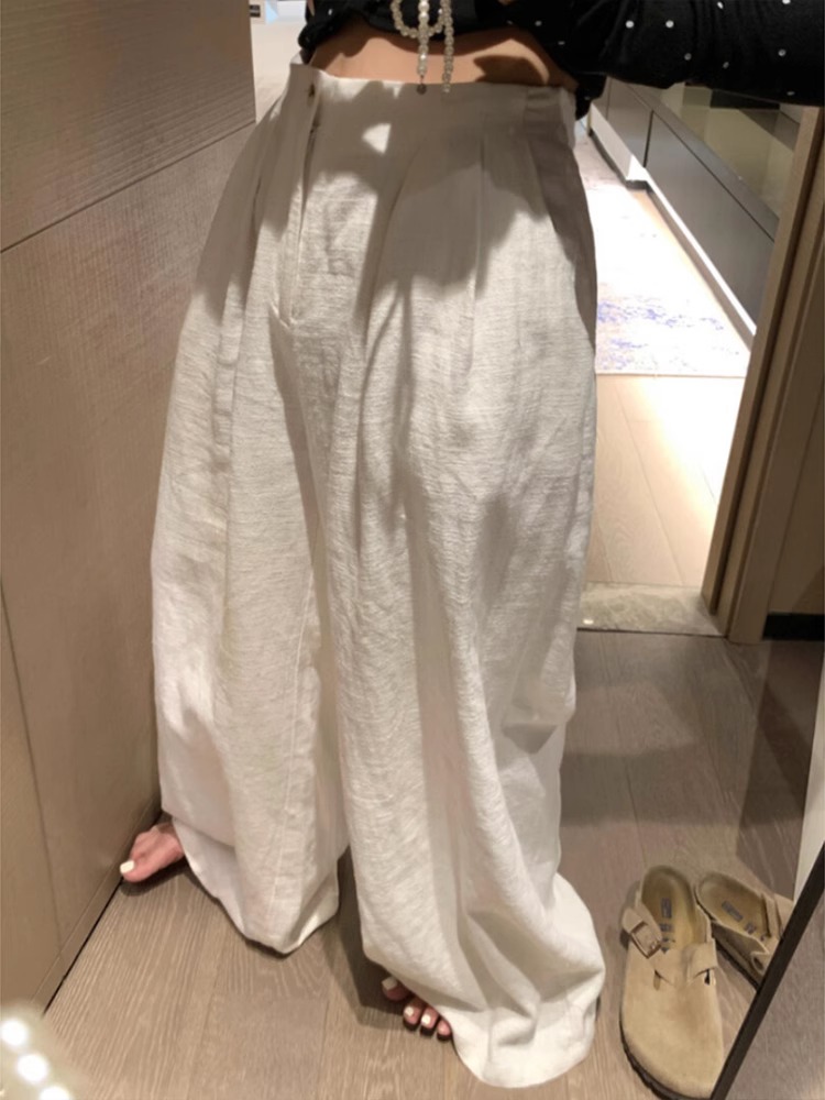 화이트 하이웨이스트 면 린넨 2026 느슨함 와이드 레깅스 바지 2025 여름 한 부서 익스트림 제인 느긋한 바람 바지