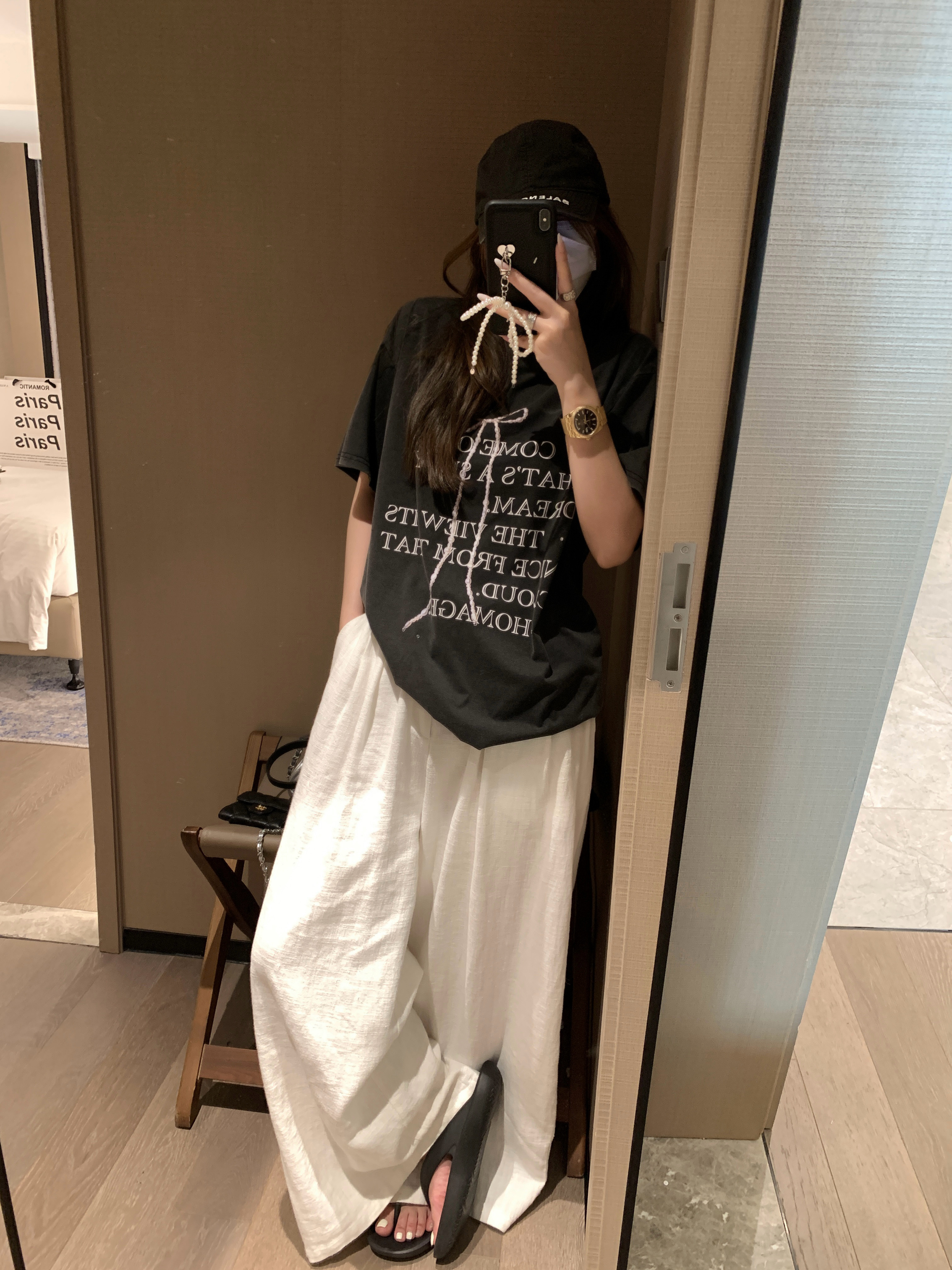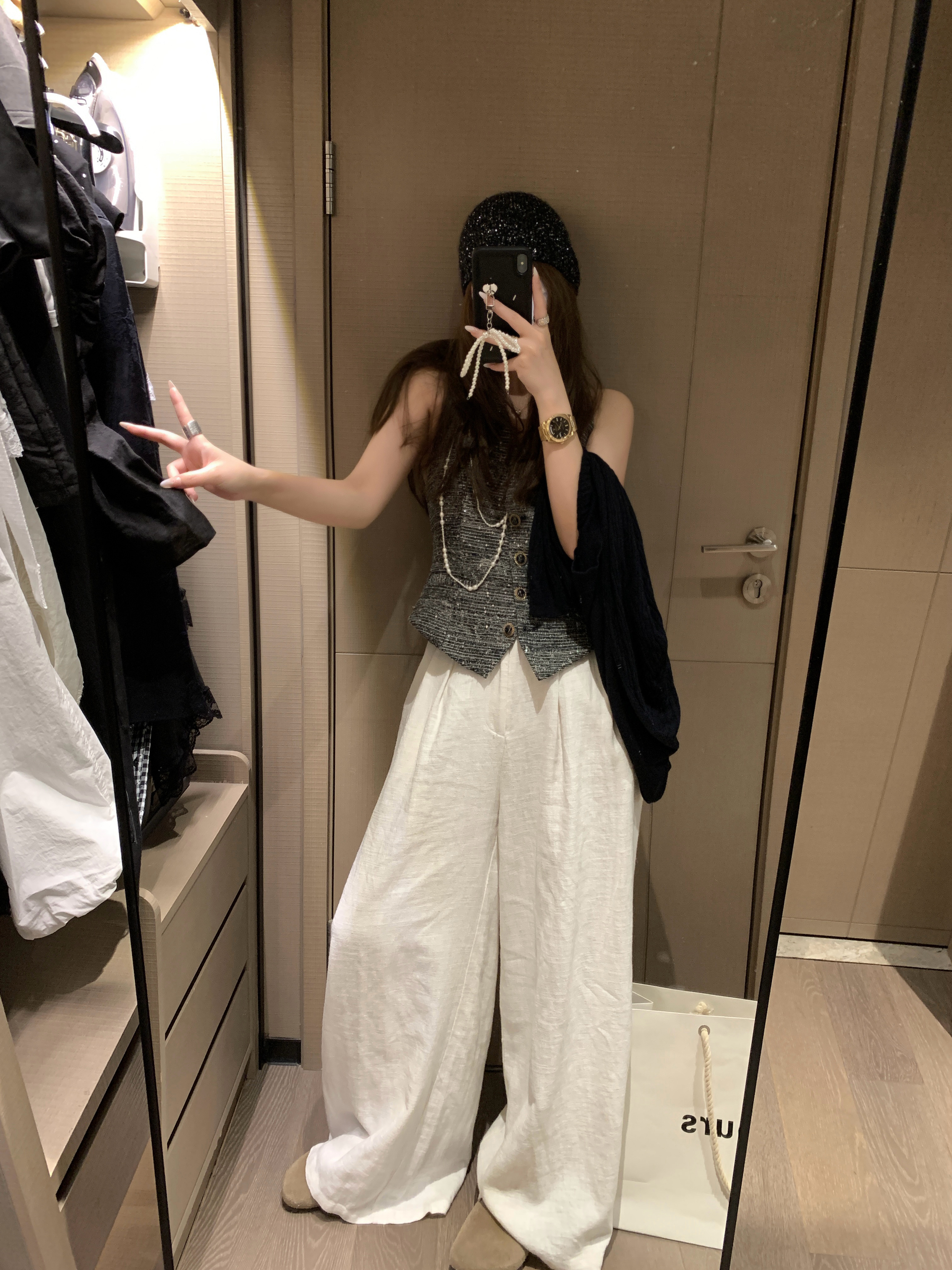 실사 정가 칙칙한 흰색 아메리칸 레트로 모통이 칼 청바지 여성 여름 새로운 하이웨이스트 루즈핏 와이드 레그 팬츠 어린이