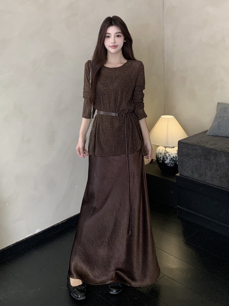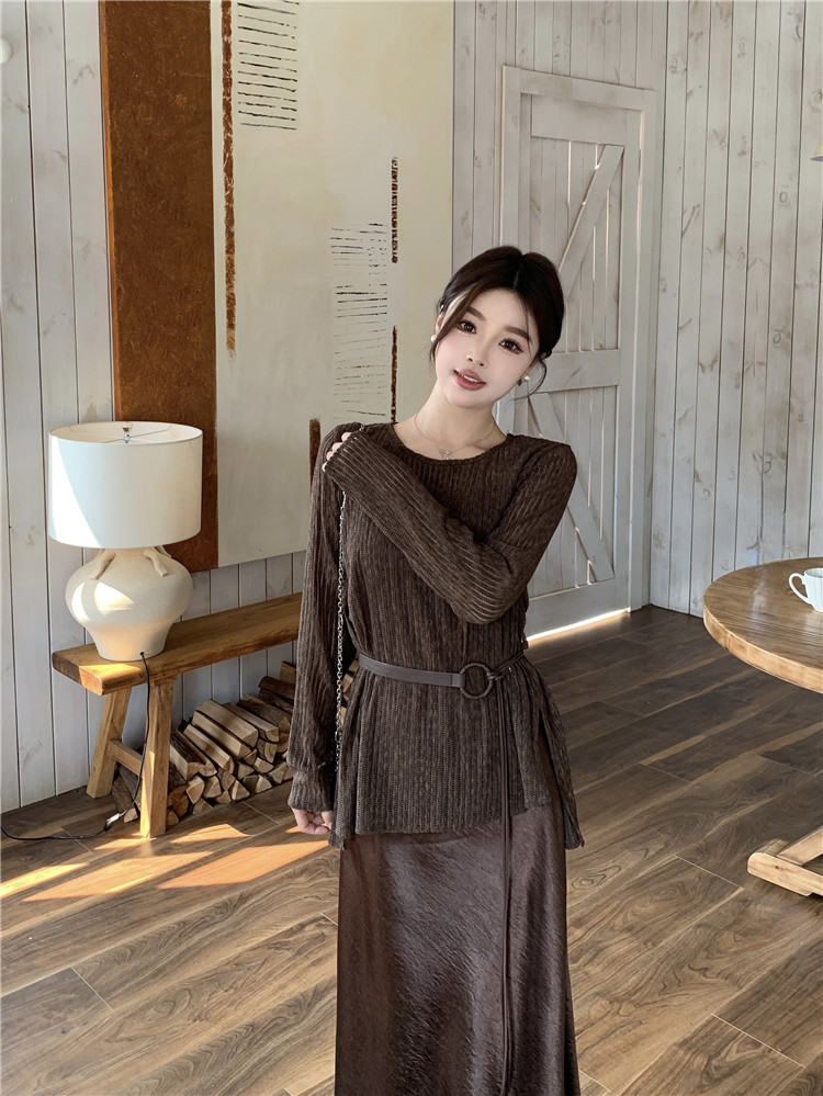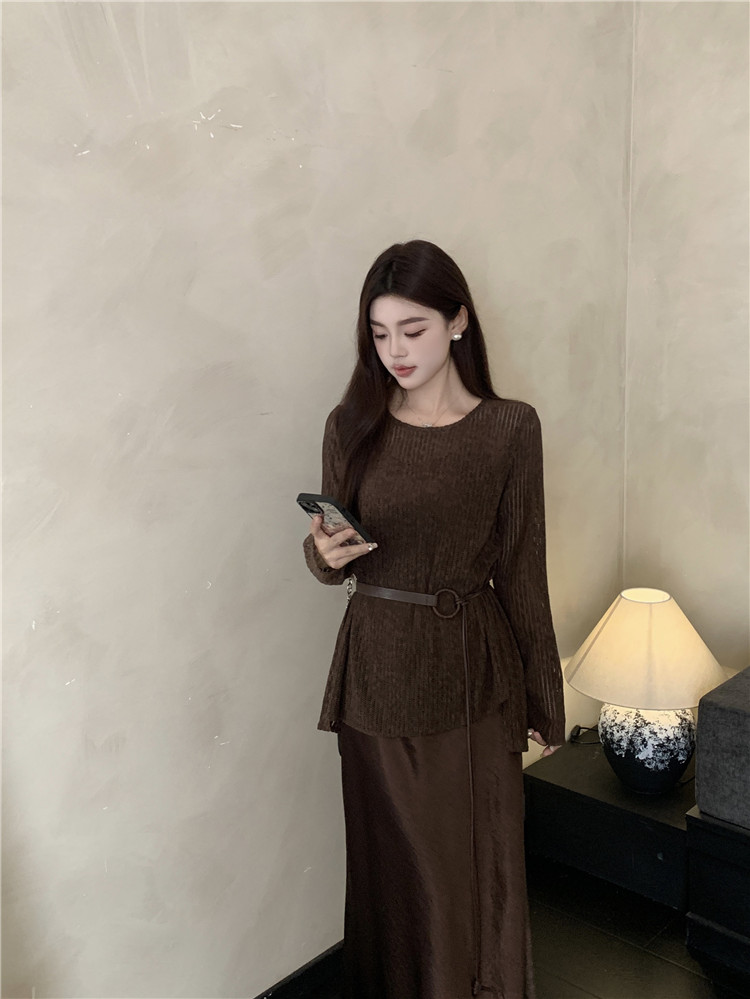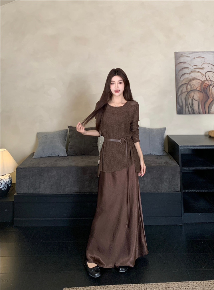 2026 봄 새로운 한 부서 느긋한 바람 고급 센스 패션 품격 슬림해 보이는 슬립 드레스 두 조각 세트 드레스 아이들