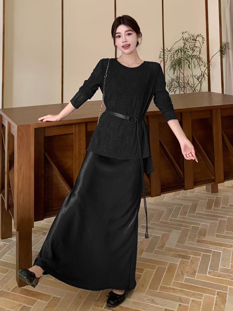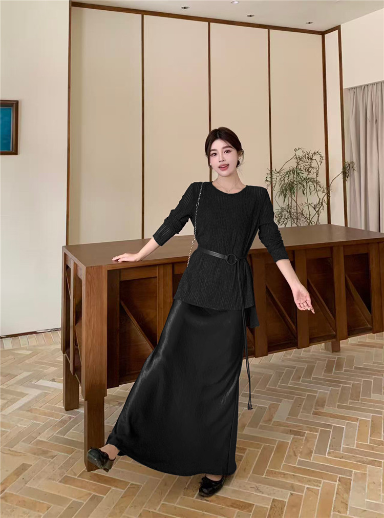 흔들다 칼라 불규칙 맨위 반신 스커트 두 조각 여성 세트 2026 여름 새로운 빅 사이즈 슬림해 보이는 도루 센스 세트 드레스