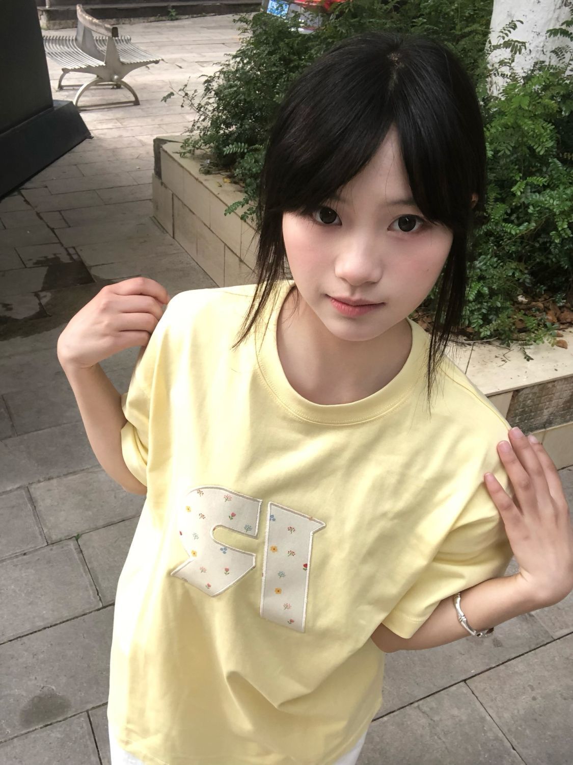 정가 작은 샤넬 스타일 자수 두 바늘 순면 220 그램 빗질하다 닫기 반팔 티셔츠 여성
