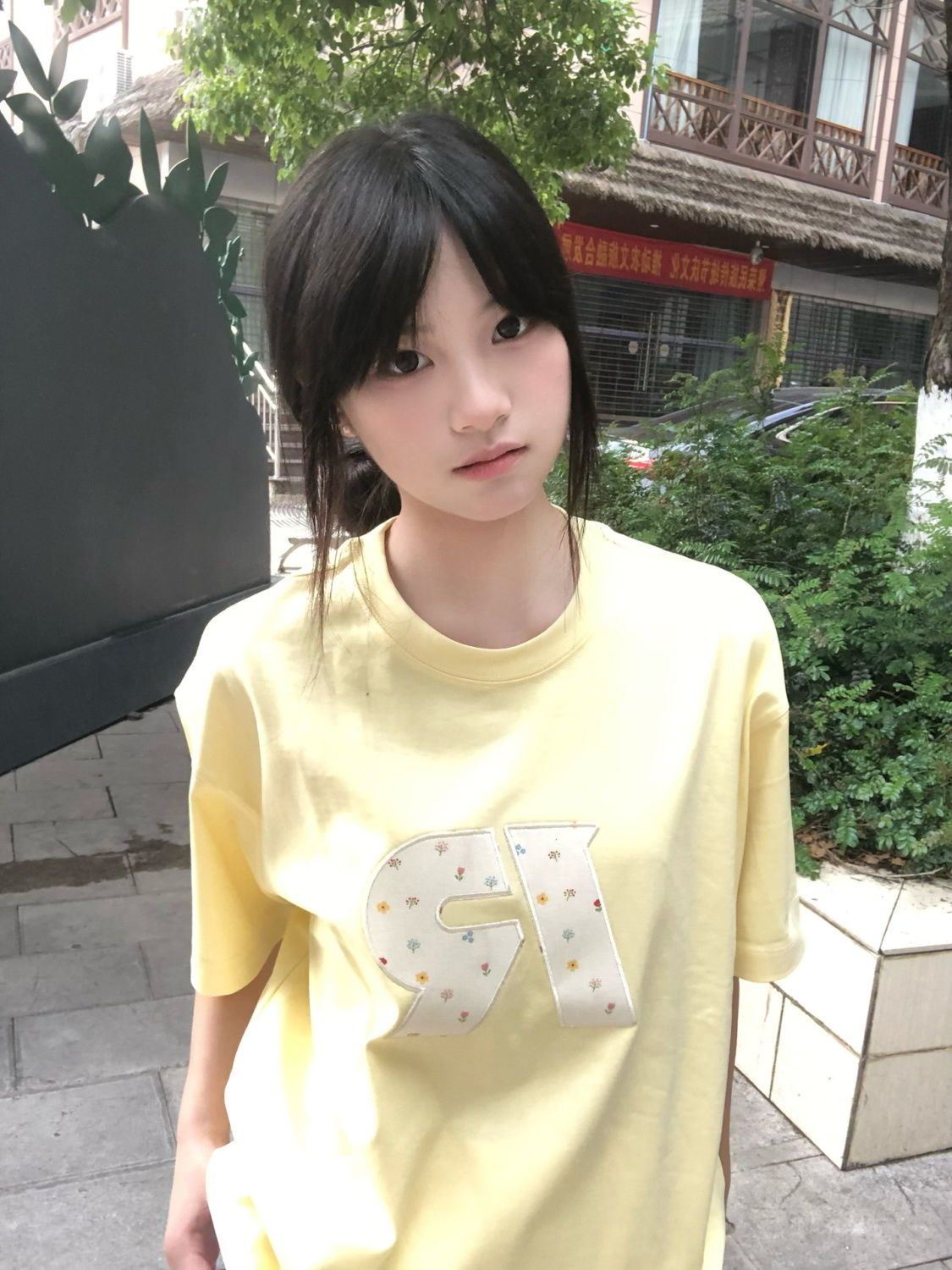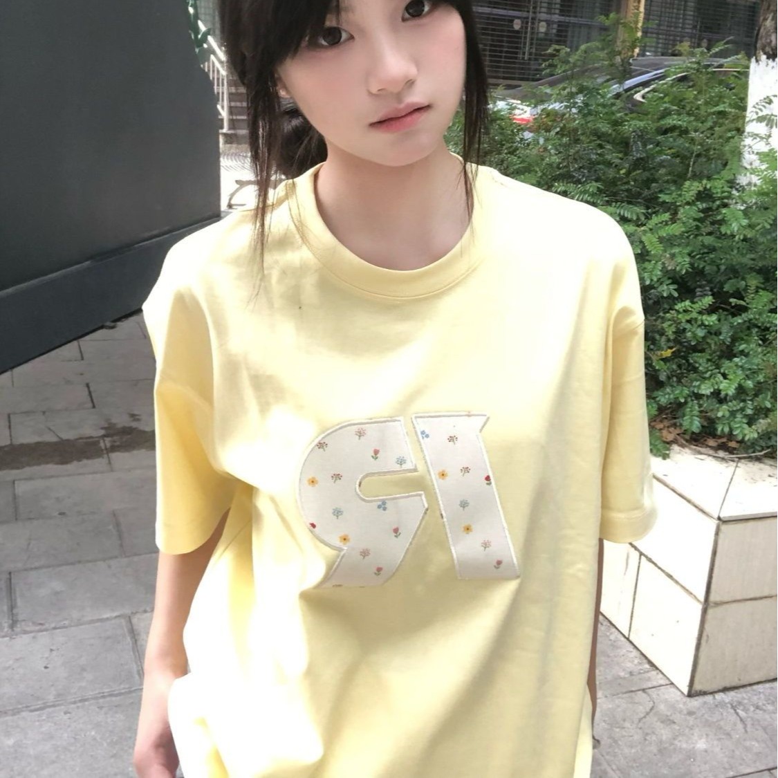 정가 자수 순면 220 그램 빗질하다 닫기 반팔 티셔츠 여성