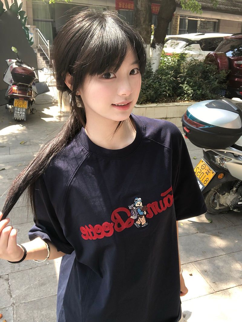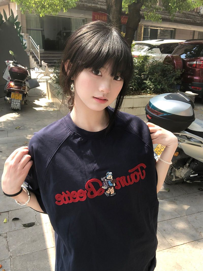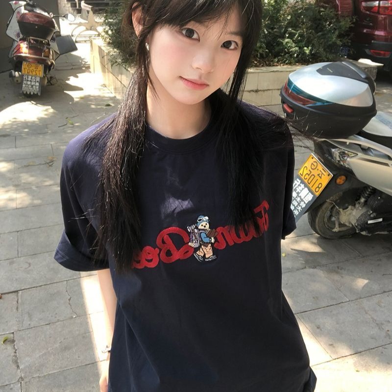 정가 자수 순면 220 그램 빗질하다 닫기 반팔 티셔츠 여성