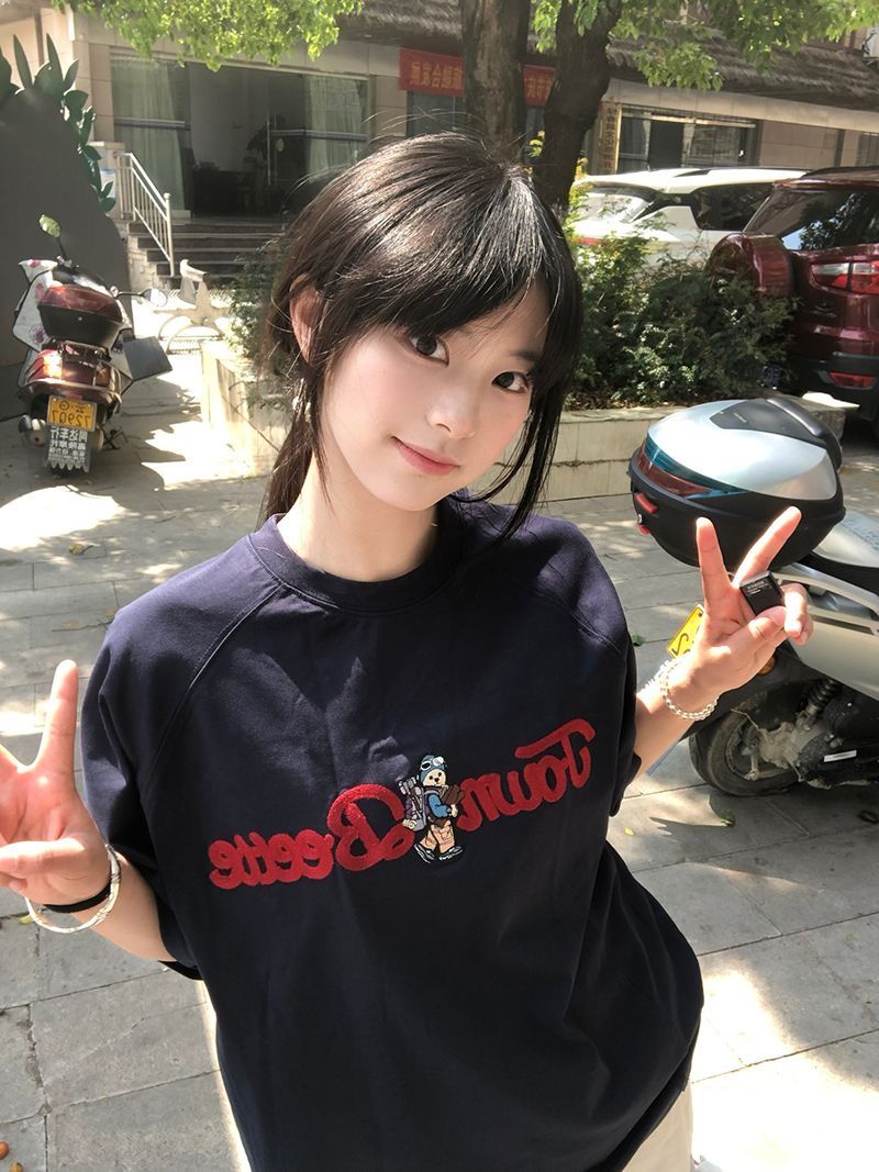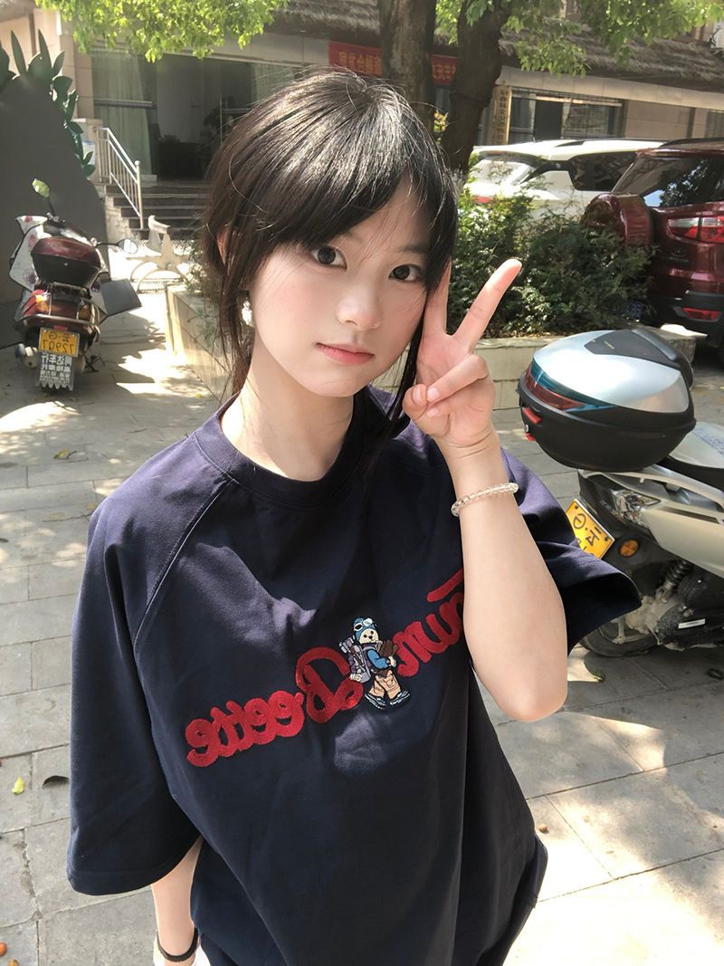 정가 자수 패치 순면 220 그램 빗질하다 닫기 반팔 티셔츠 여성