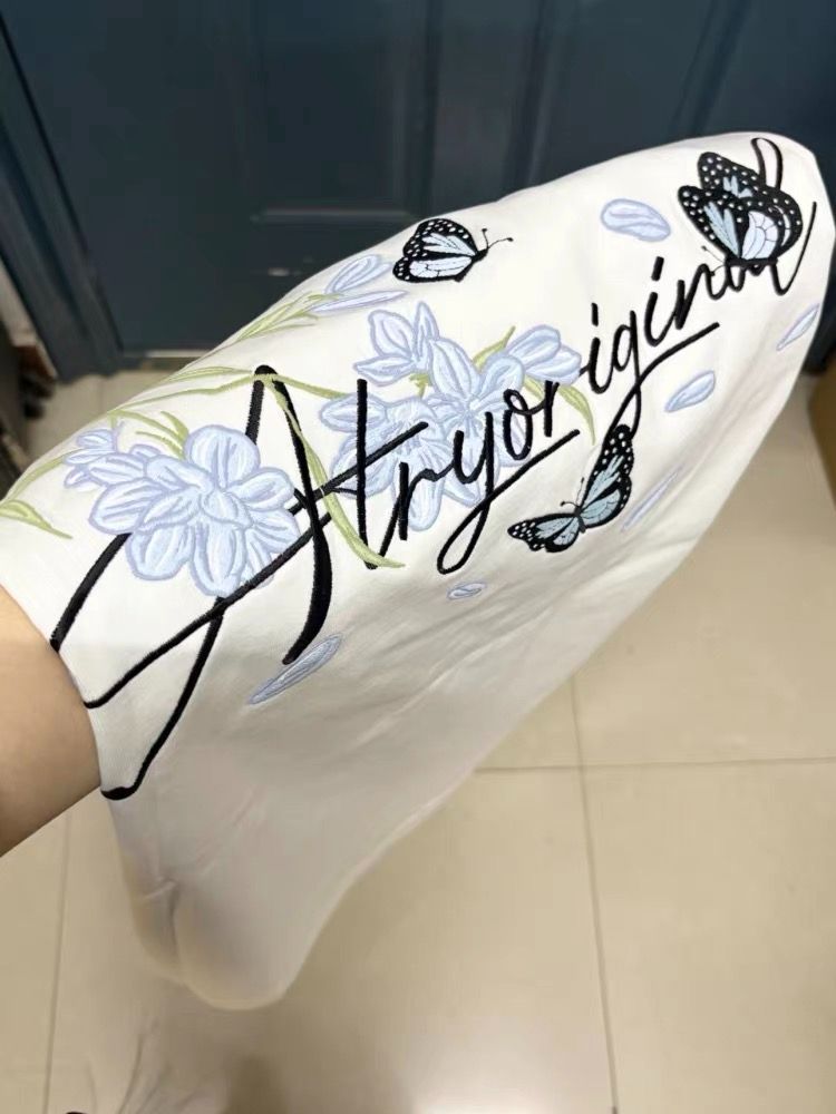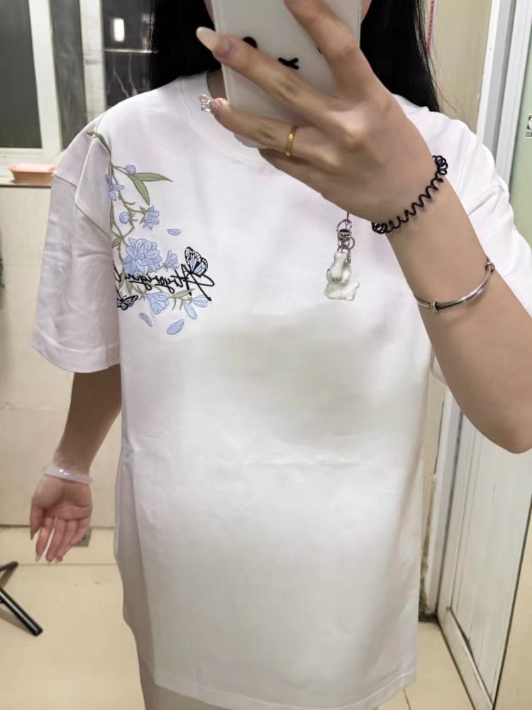 정가 전후 자수 순면 220 그램 빗질하다 닫기 반팔 티셔츠 여성
