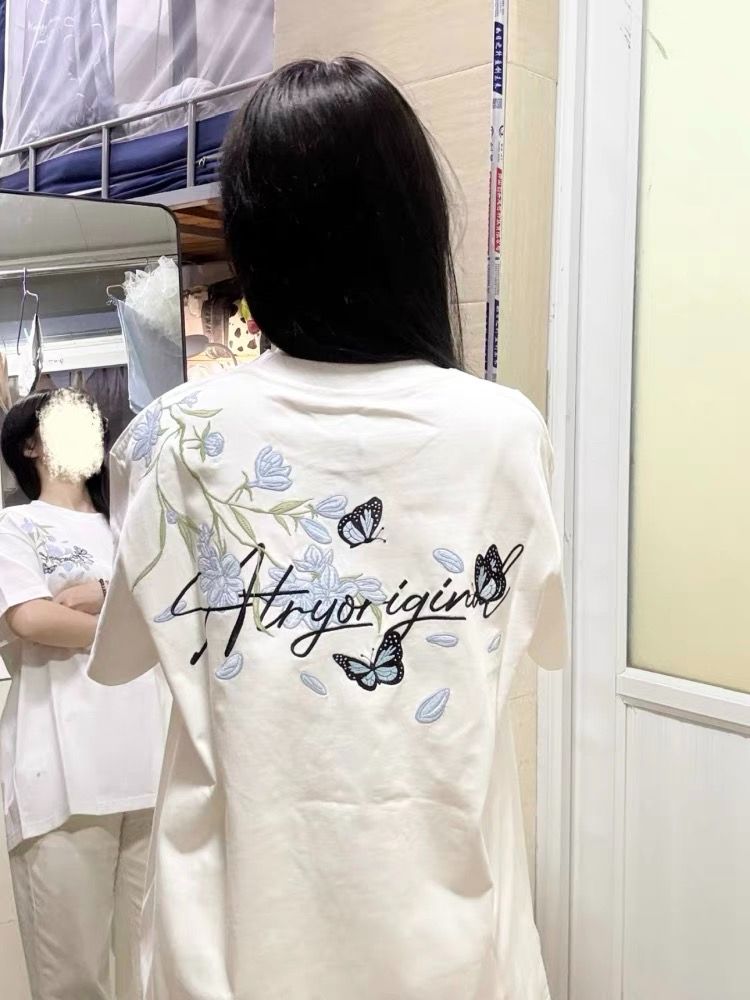 정가 수건 자수 소매 주문 표준 순면 220 그램 빗질하다 닫기 반팔 티셔츠 여성