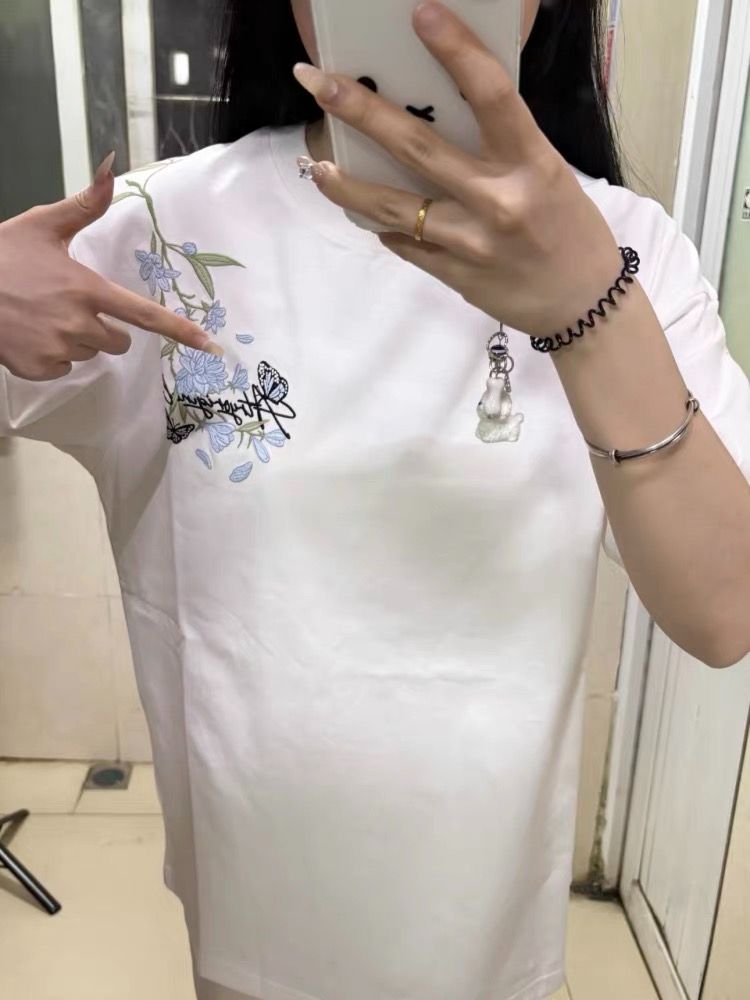 정가 구슬 조각 자수 순면 220 그램 빗질하다 닫기 반팔 티셔츠 여성