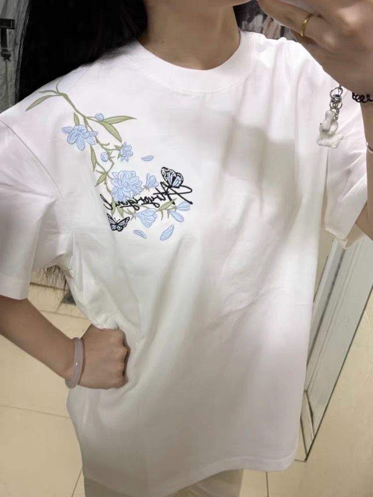 정가 자수 순면 220 그램 빗질하다 닫기 반팔 티셔츠 여성