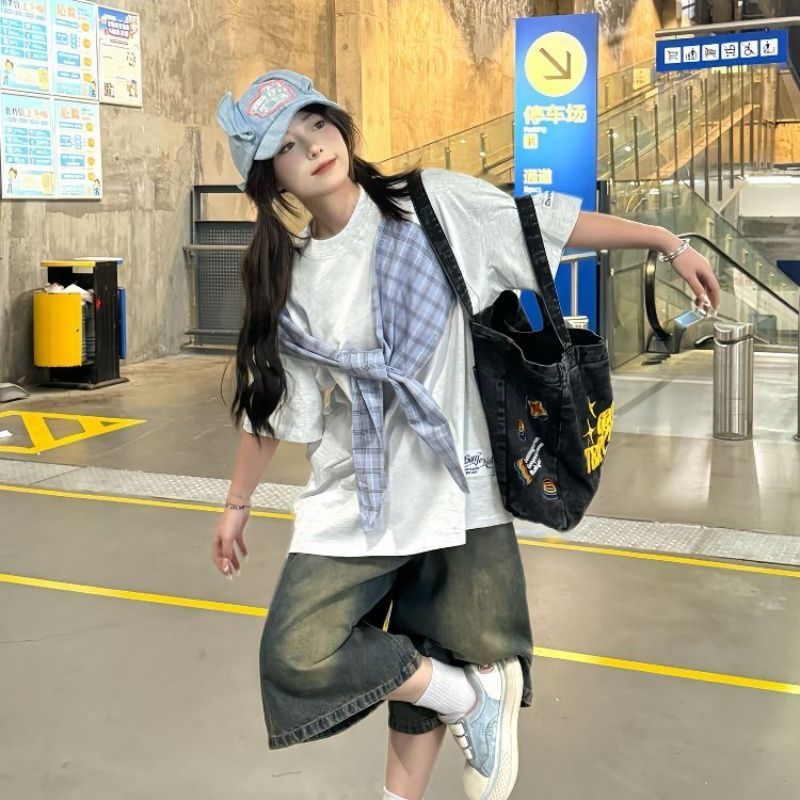 정가 자수 패치 순면 220 그램 빗질하다 닫기 반팔 티셔츠 여성