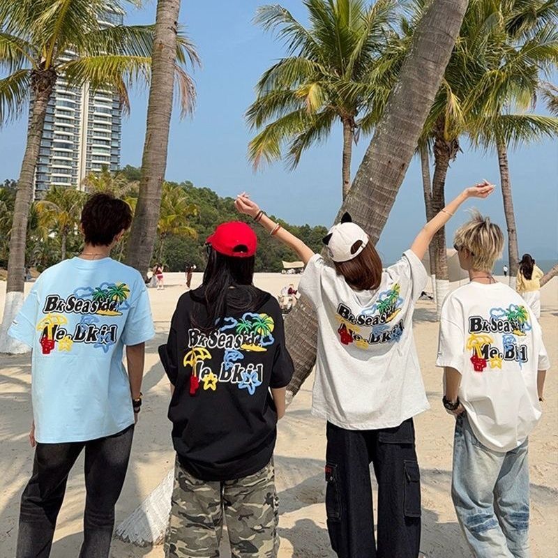 정가 자수 비즈 박기 두 바늘 순면 220 그램 빗질하다 닫기 반팔 티셔츠 여성