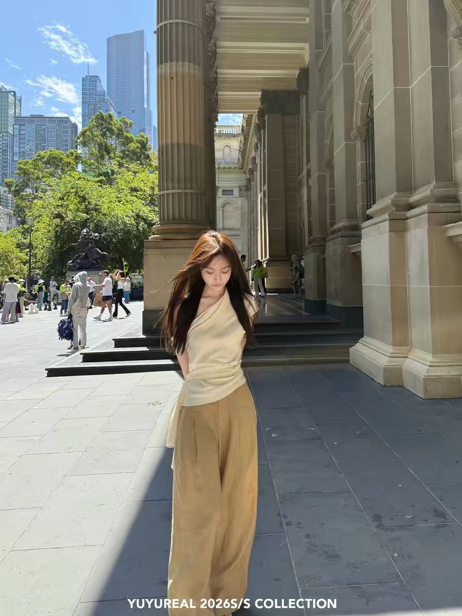 yuyureal 산소 100 전체 아마 여름 에어컨 화이트 핑크색 캐주얼 바지 도루 센스 넓은 다리 면 린넨 바지