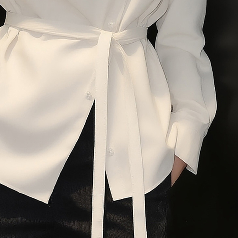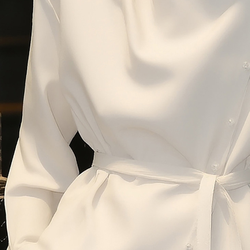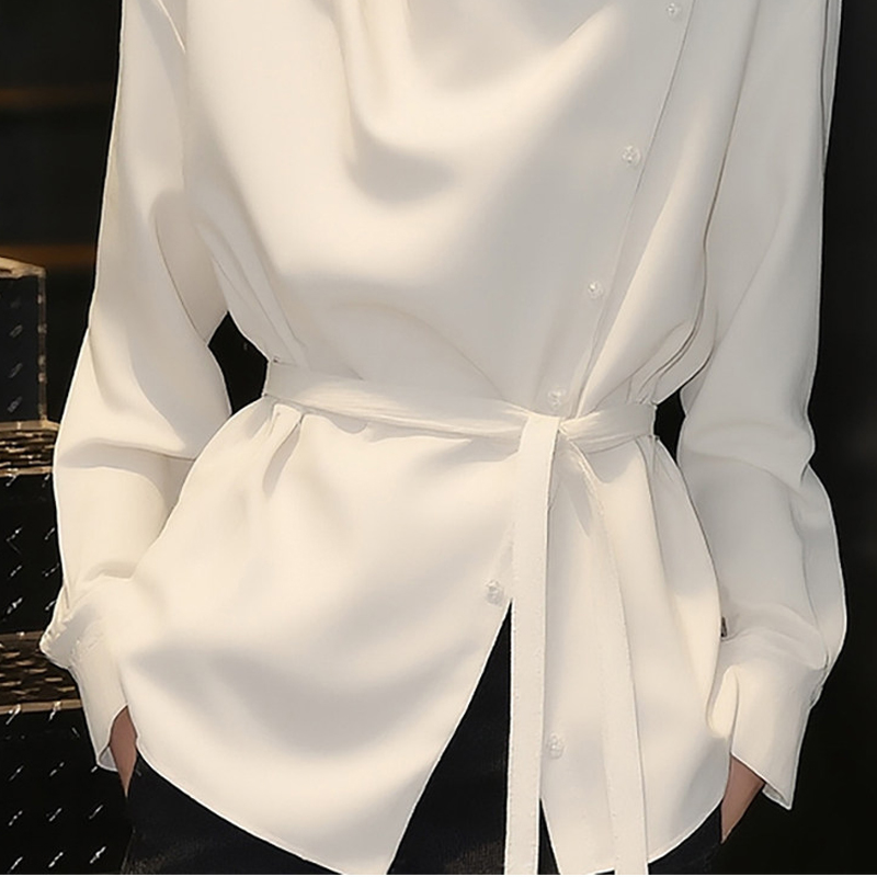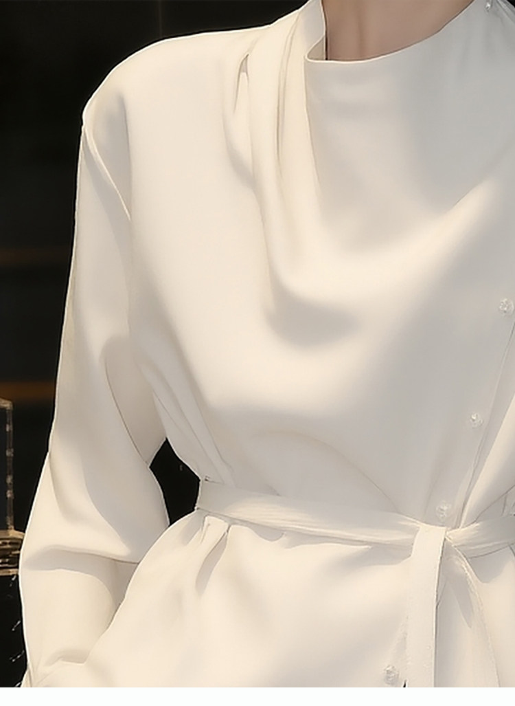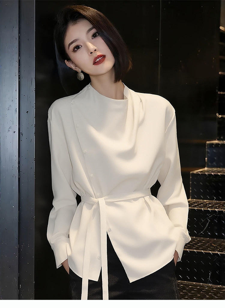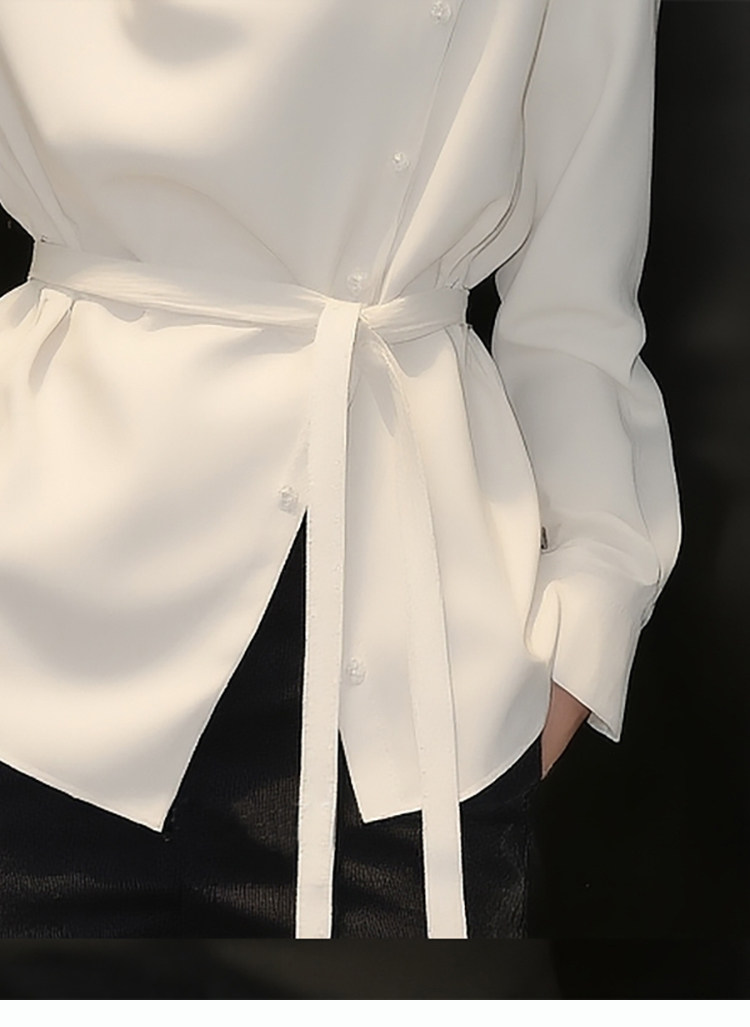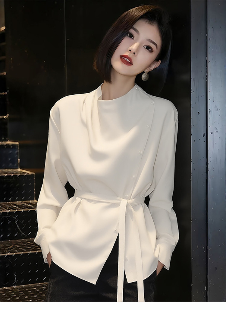 아름다운 다용도 허리 수축 베이지 색 여성 셔츠 봄 2026 년 새로운 외국 가스 연령 감소 작은 셔츠 고급 센스 셔츠