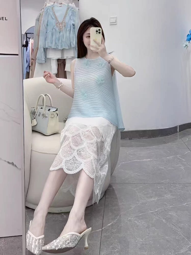 2026 년 봄 새로운 순수한 욕망 품격 레이스 조각 여성 드레스 패션 작은 대중 중 롱 스커트 여성
