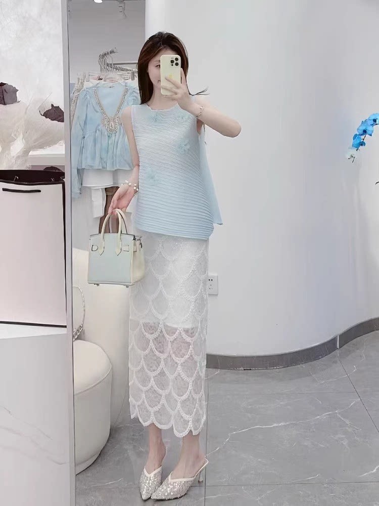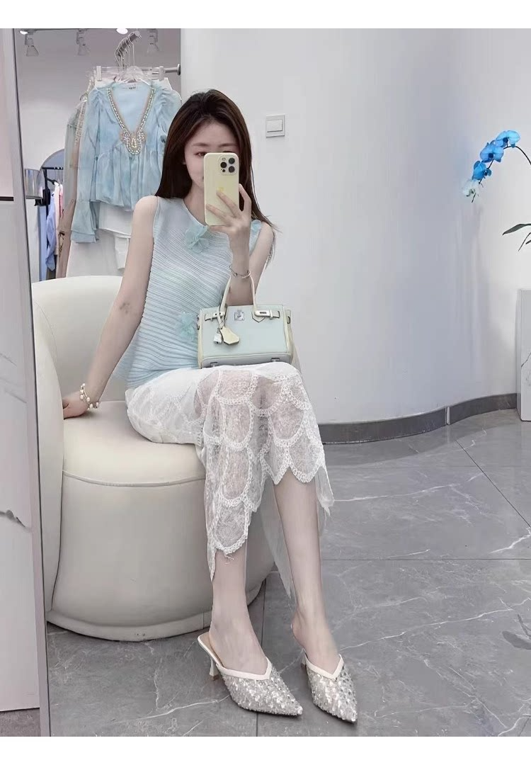 2026 봄 여름 새로운 레트로 품격 고급 센스 홀로우 아웃 자수 쇼트 스타일 민소매 니트 조끼