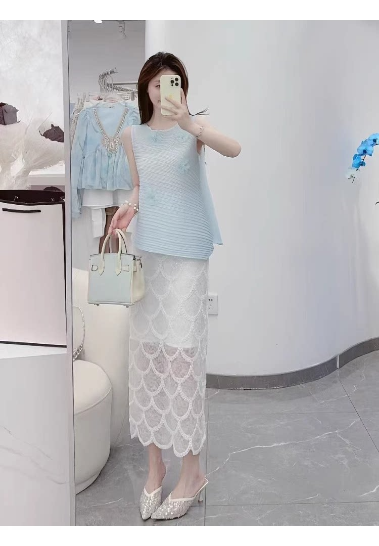 2026 봄 슈퍼 화재 올해 인기 연령 감소 배 종류 몸 표지 넓적 다리 슈퍼 잘 생긴 고유 한 화이트 레이스 반신 스커트