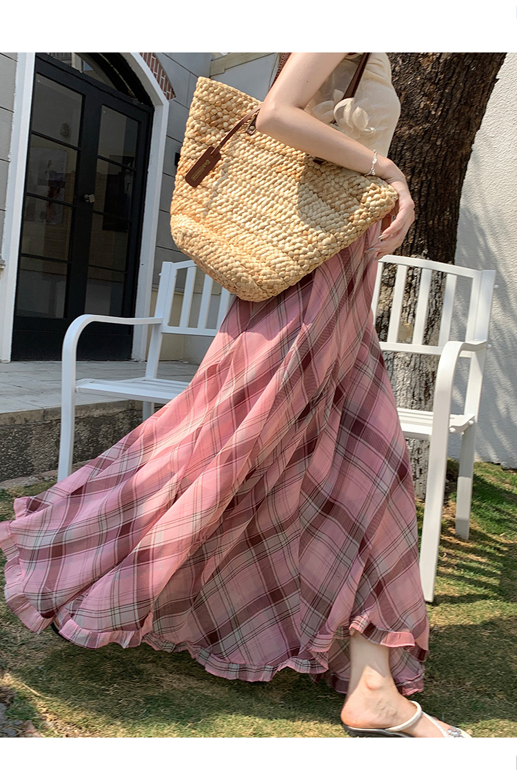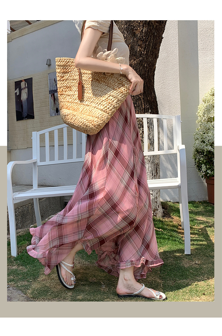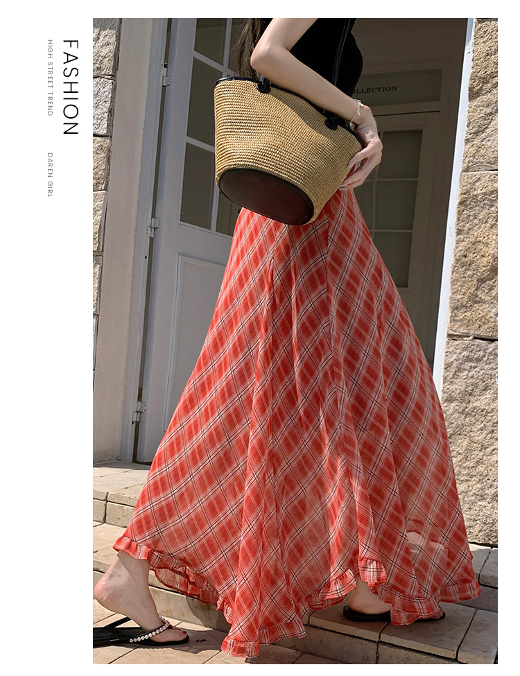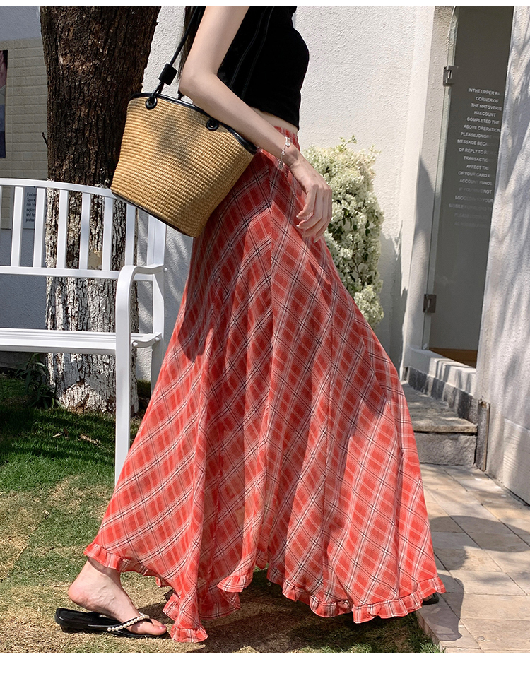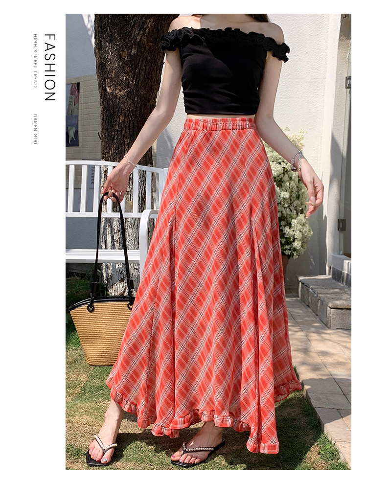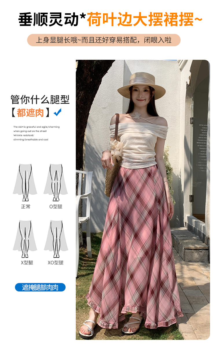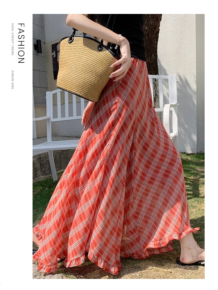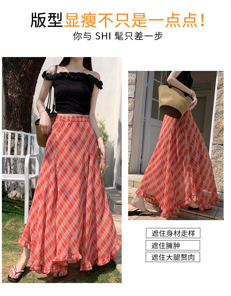 한 부서 프릴 주름 달콤함 반신 스커트 휴가 사진 찍기 롱 스커트 분위기 센스 봄 여름 부서 치마
